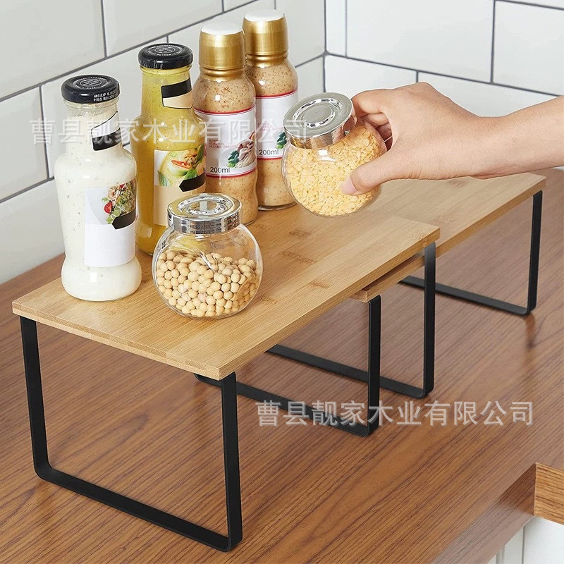 재고 주방 단철 저장 랙 조미료 그릇 및 접시 저장 랙 스택 스택 데스크탑 저장 랙 나무 저장 랙