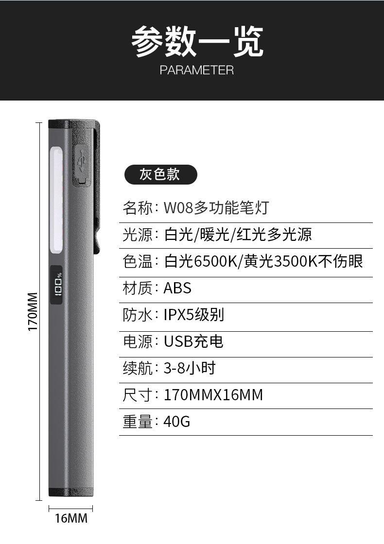 국경 간 새로운 하이라이트 COB 펜 모양의 유지 보수 led 조명 USB 충전 강한 자기 조명 다기능 유지 보수 작업 조명스토어 가기