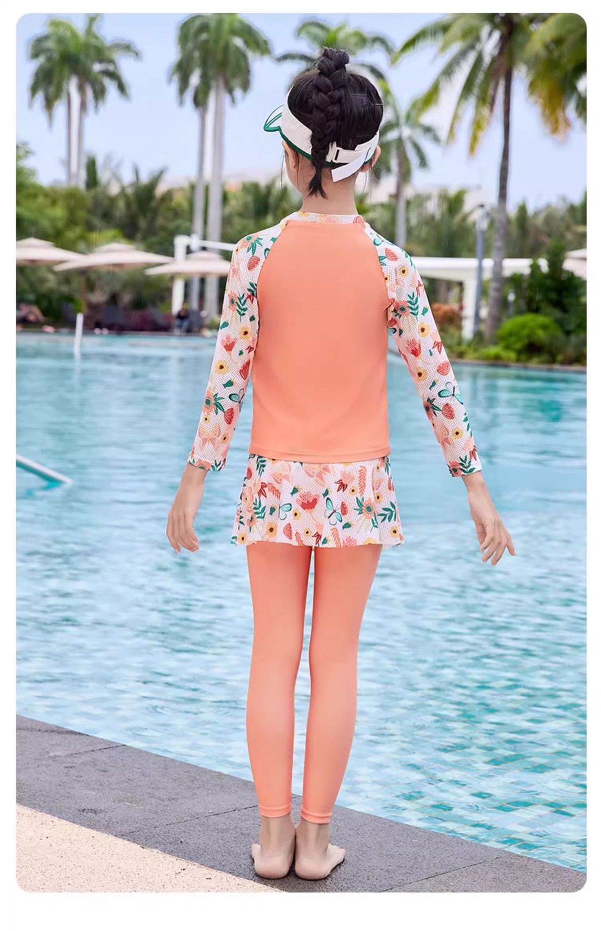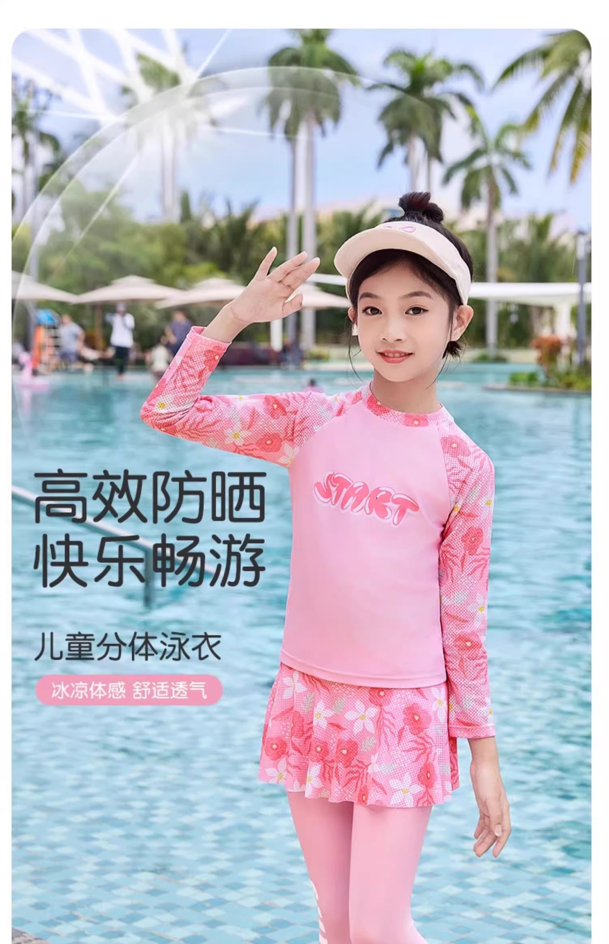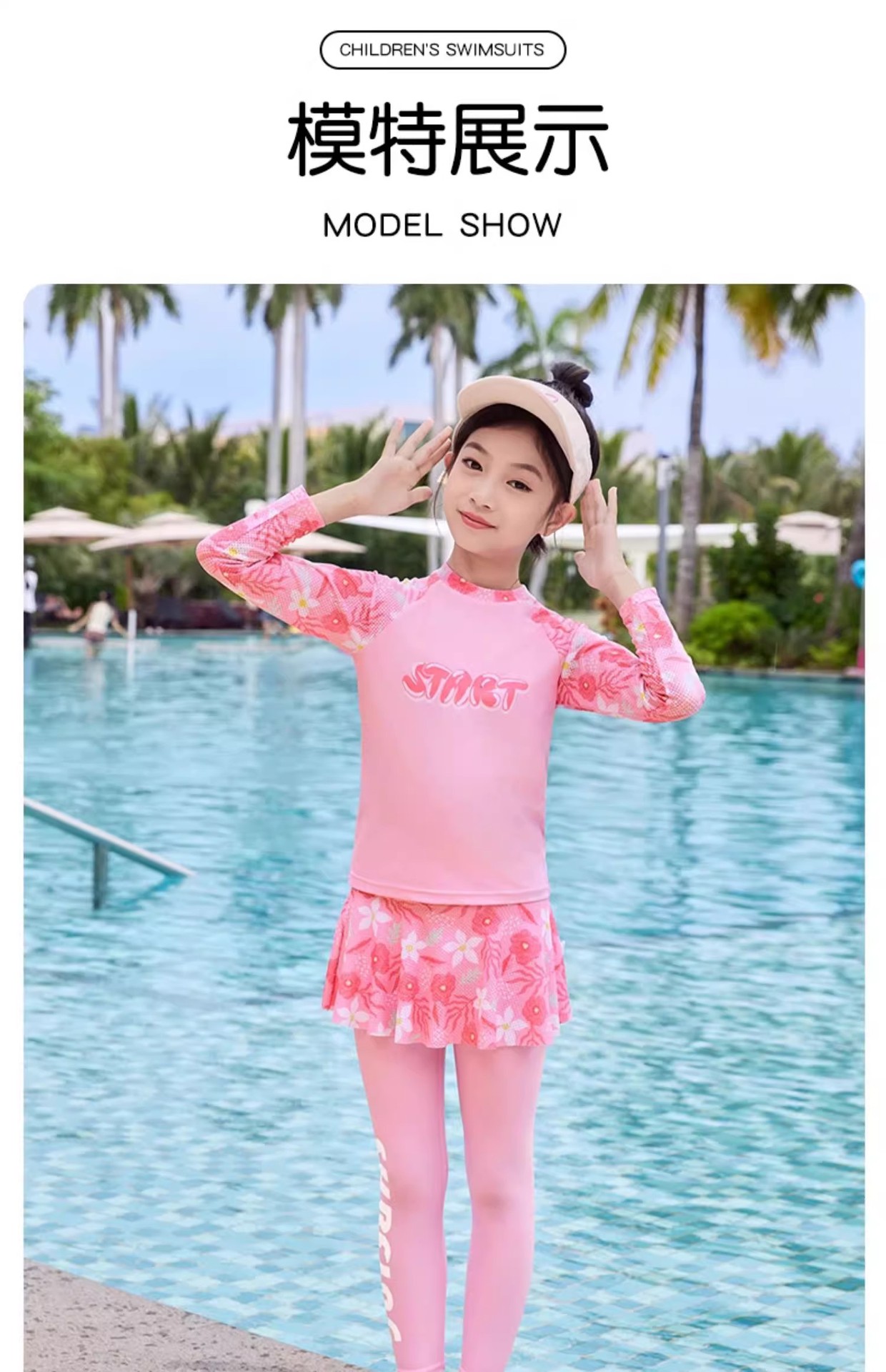 어린이 수영복 여성 분할 긴 소매 바지 전문 수영 교육 새로운 스타일 작고 큰 여자 겨울 온천 세트