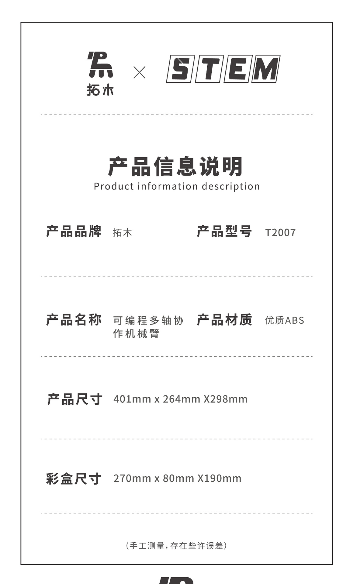 Tombwood T2007 프로그래밍 가능한 다축 협업 기계 팔 빌딩 블록 STEAM 과학 및 교육 장난감 어린이 교육 선물스토어 가기