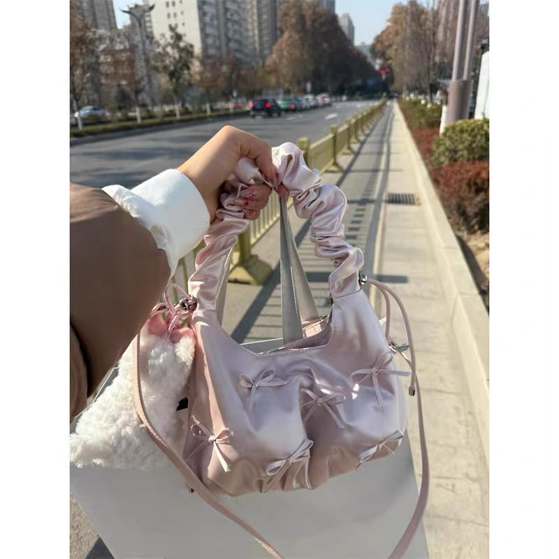 틈새 주름 활 여성 핸드 백 2025 봄 새 한국 겨드랑이 가방 주름 어깨 구름 가방스토어 가기