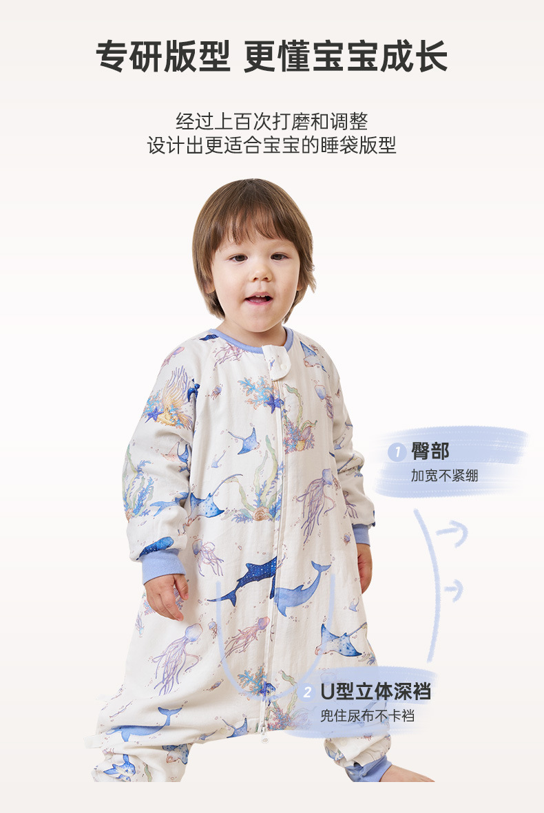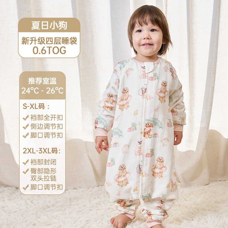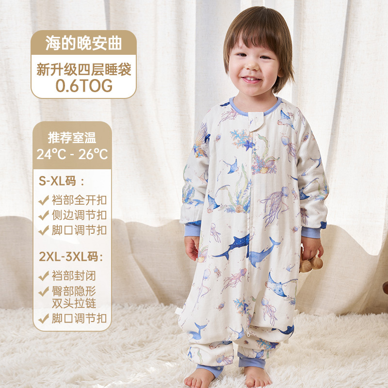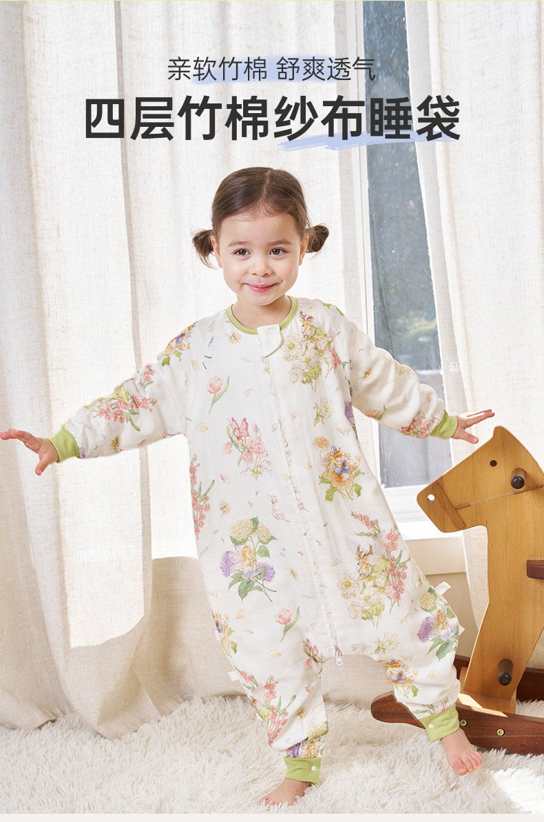 안단 침낭 4겹 봄여름 대나무 면 거즈 전체 버튼 분리형 다리 아기 침낭 어린이 사계절용 침낭스토어 가기