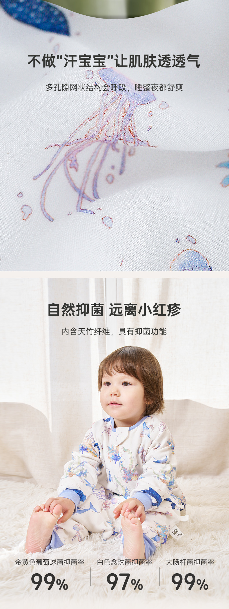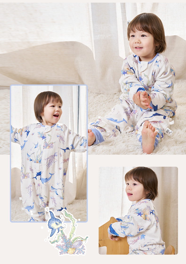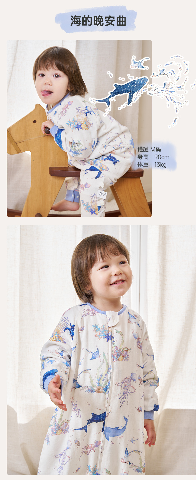 안단 침낭 4겹 봄여름 대나무 면 거즈 전체 버튼 분리형 다리 아기 침낭 어린이 사계절용 침낭스토어 가기