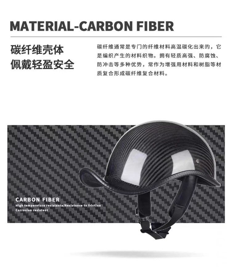 국경을 넘는 탄소 섬유 오토바이 헬멧, 레트로 스쿠프 헬멧, 남녀공용 하프 헬멧, 할리 오토바이 헬멧 라이트