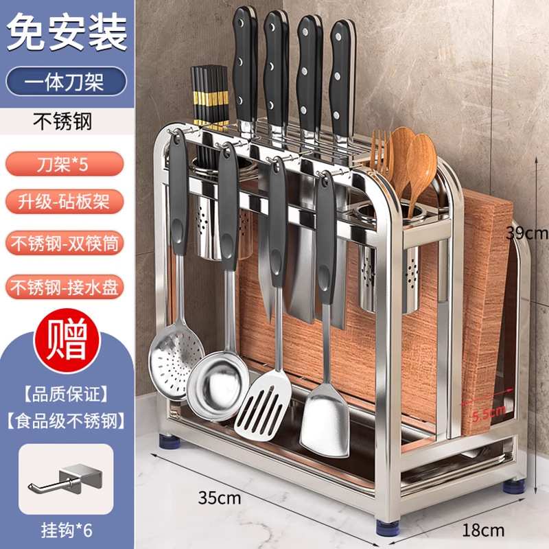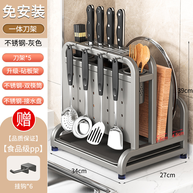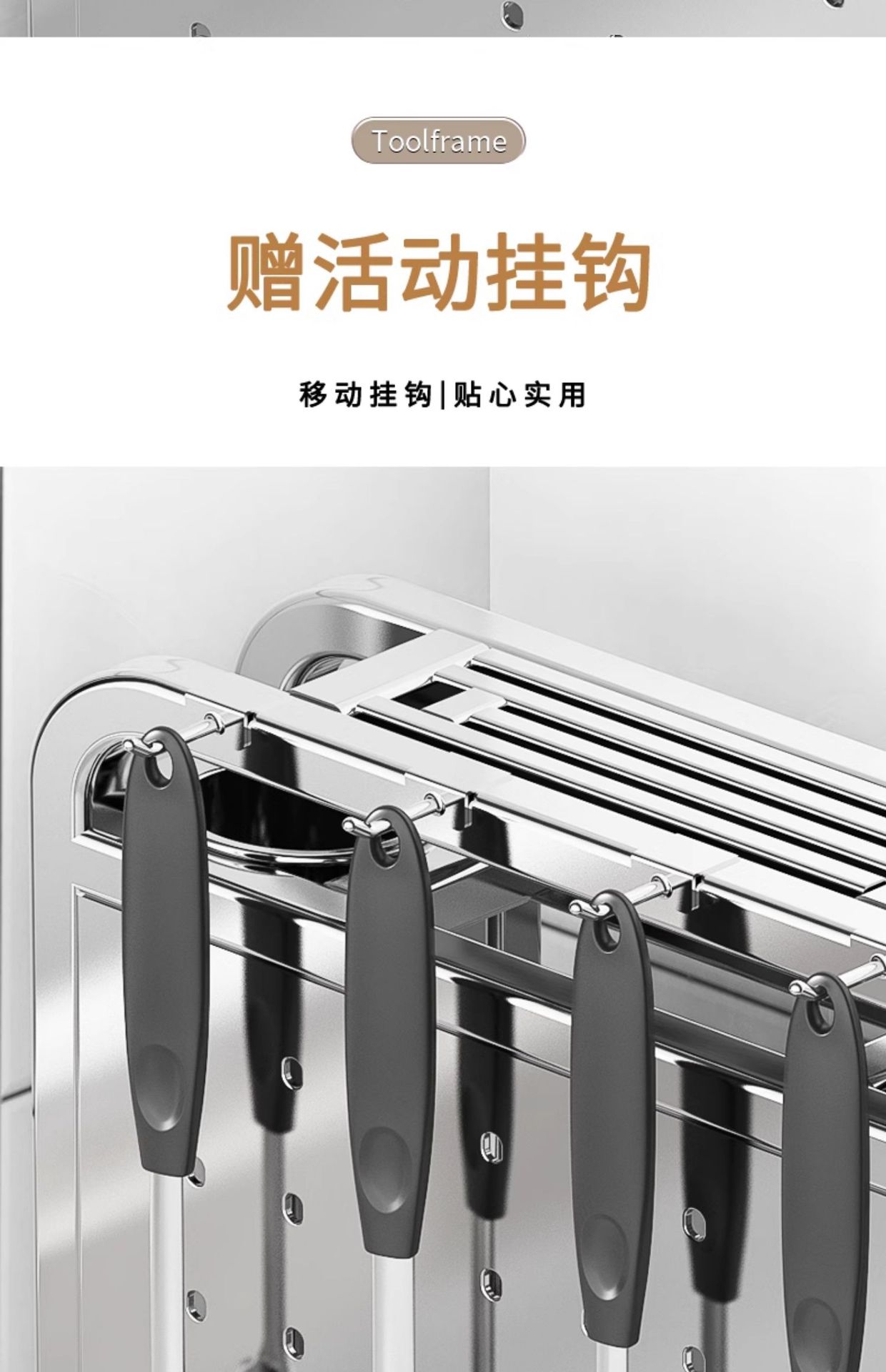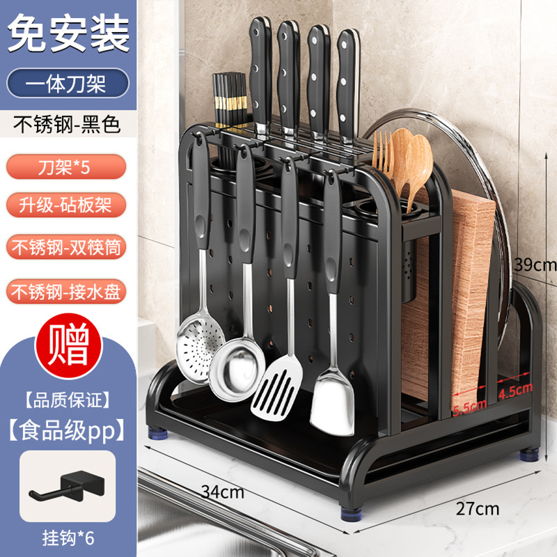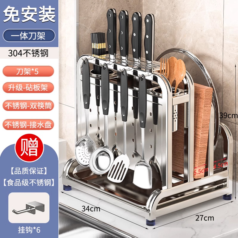 • 스테인레스 스틸, 높이 및 넓어짐 [칼 가드 + 이중 젓가락통 + 이중 도마 홀더] 후크 6개가 무료로 제공됩니다.
