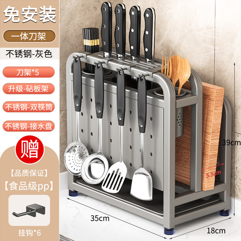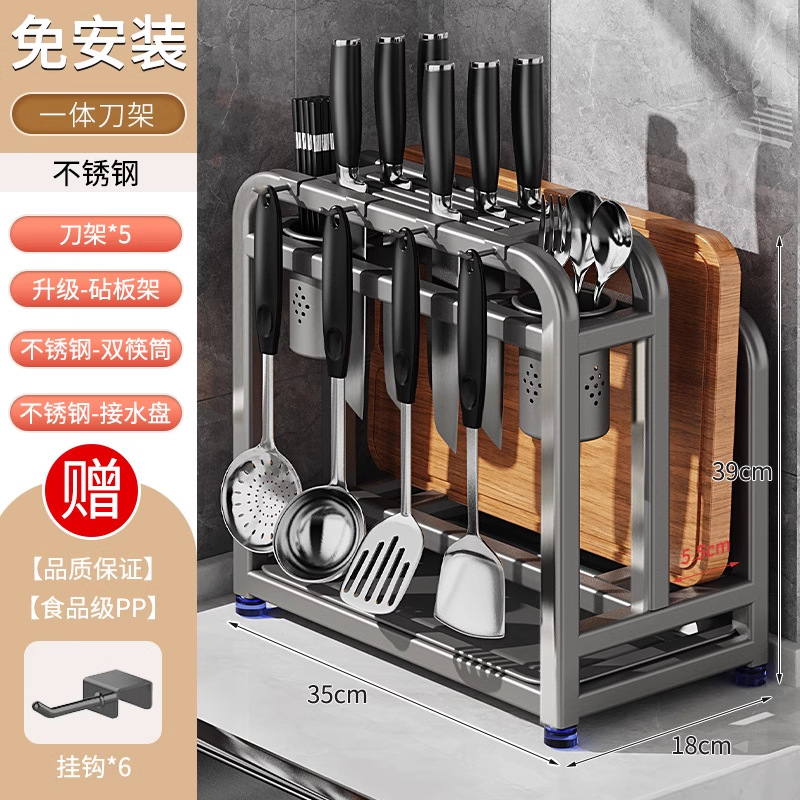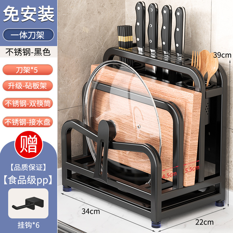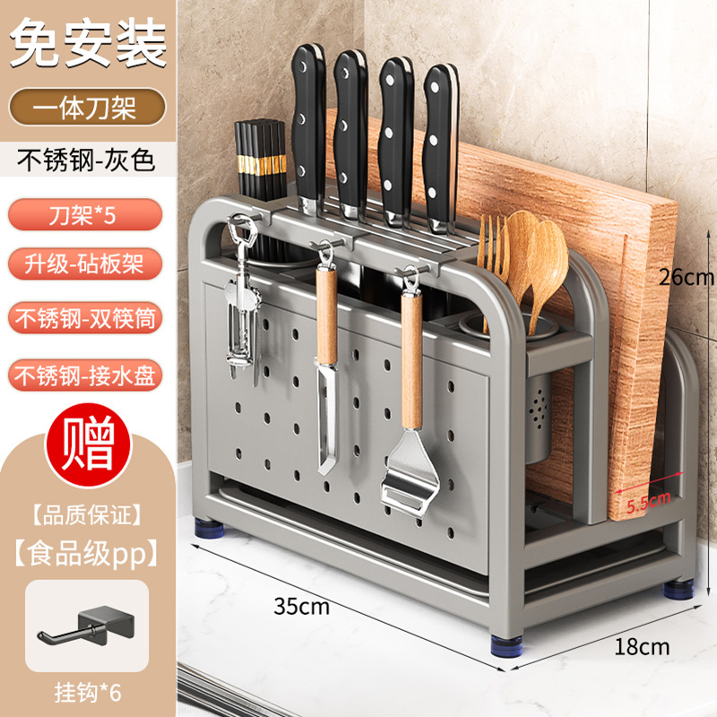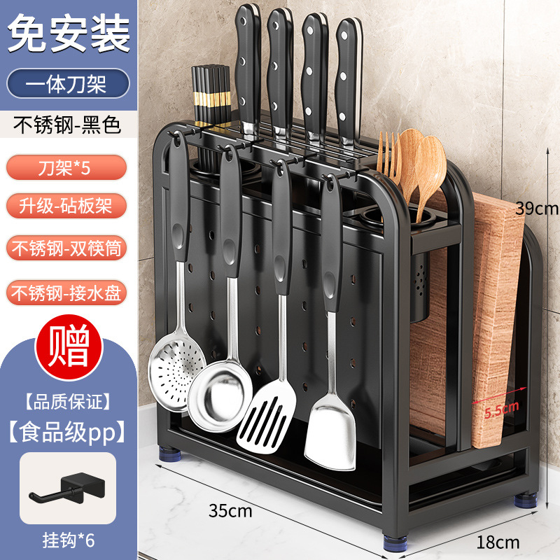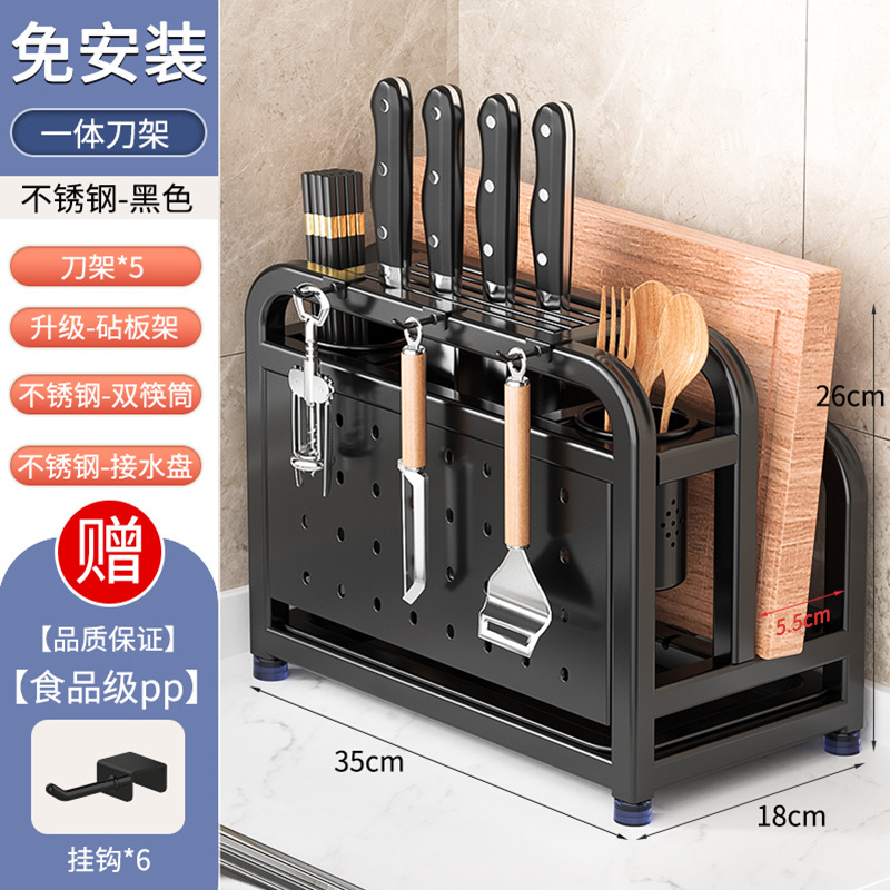 • 스테인레스 스틸, 높이 및 넓어짐 [칼 가드 + 이중 젓가락통 + 이중 도마 홀더] 후크 6개가 무료로 제공됩니다.