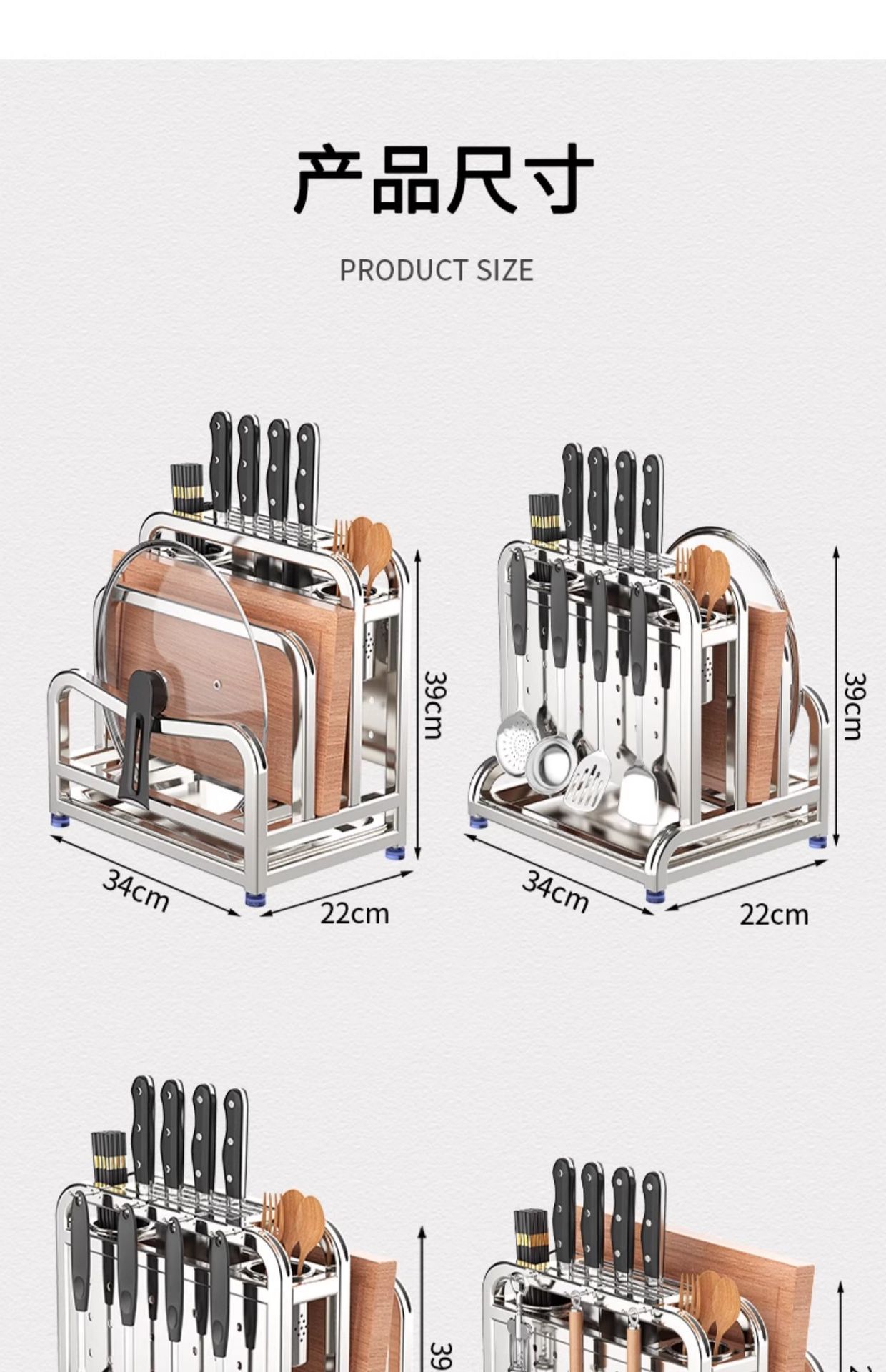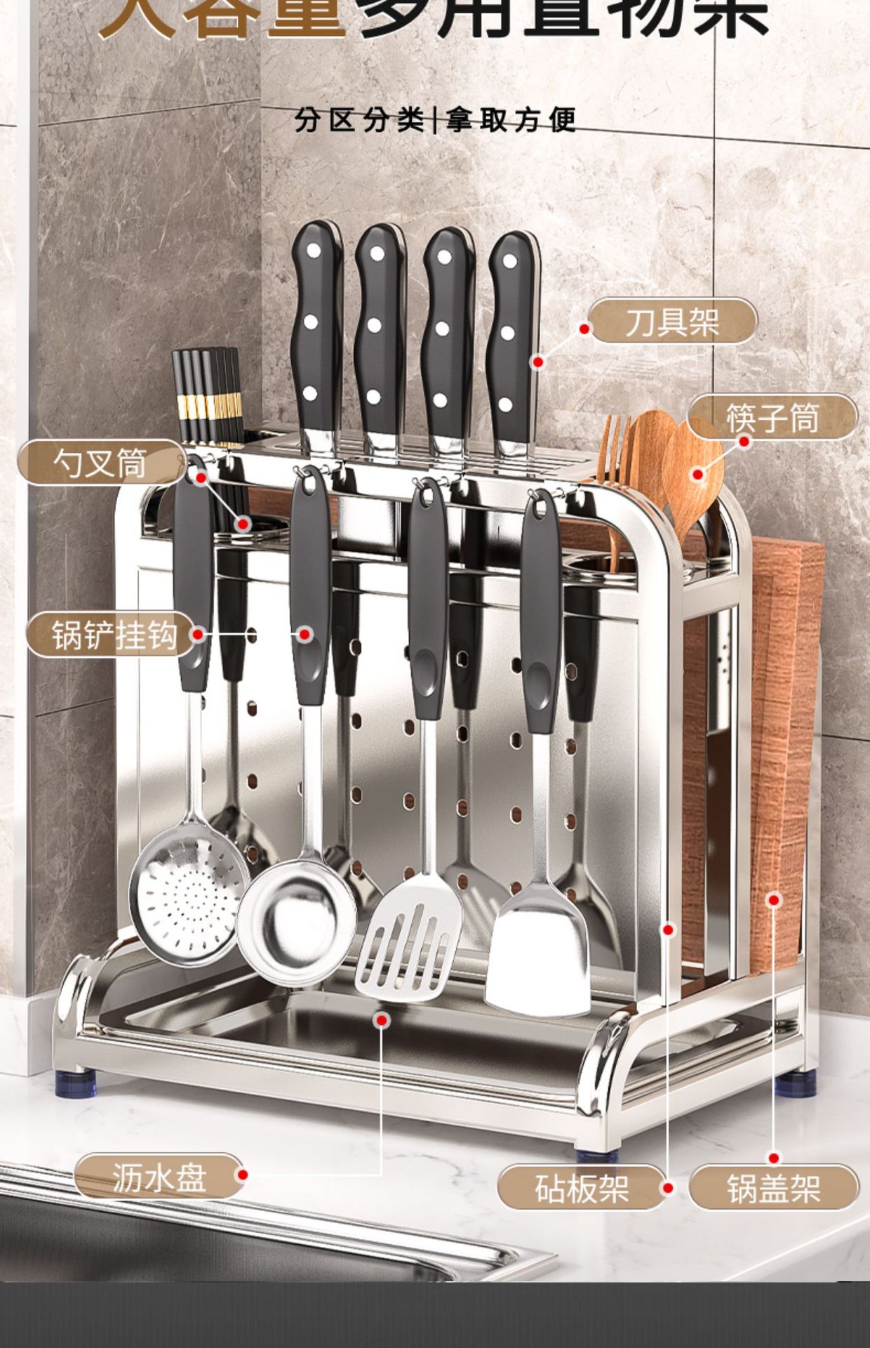 • 304 스테인리스 스틸·높이 [이중젓가락통+도마걸이+냄비뚜껑걸이] 후크 6개 포함.