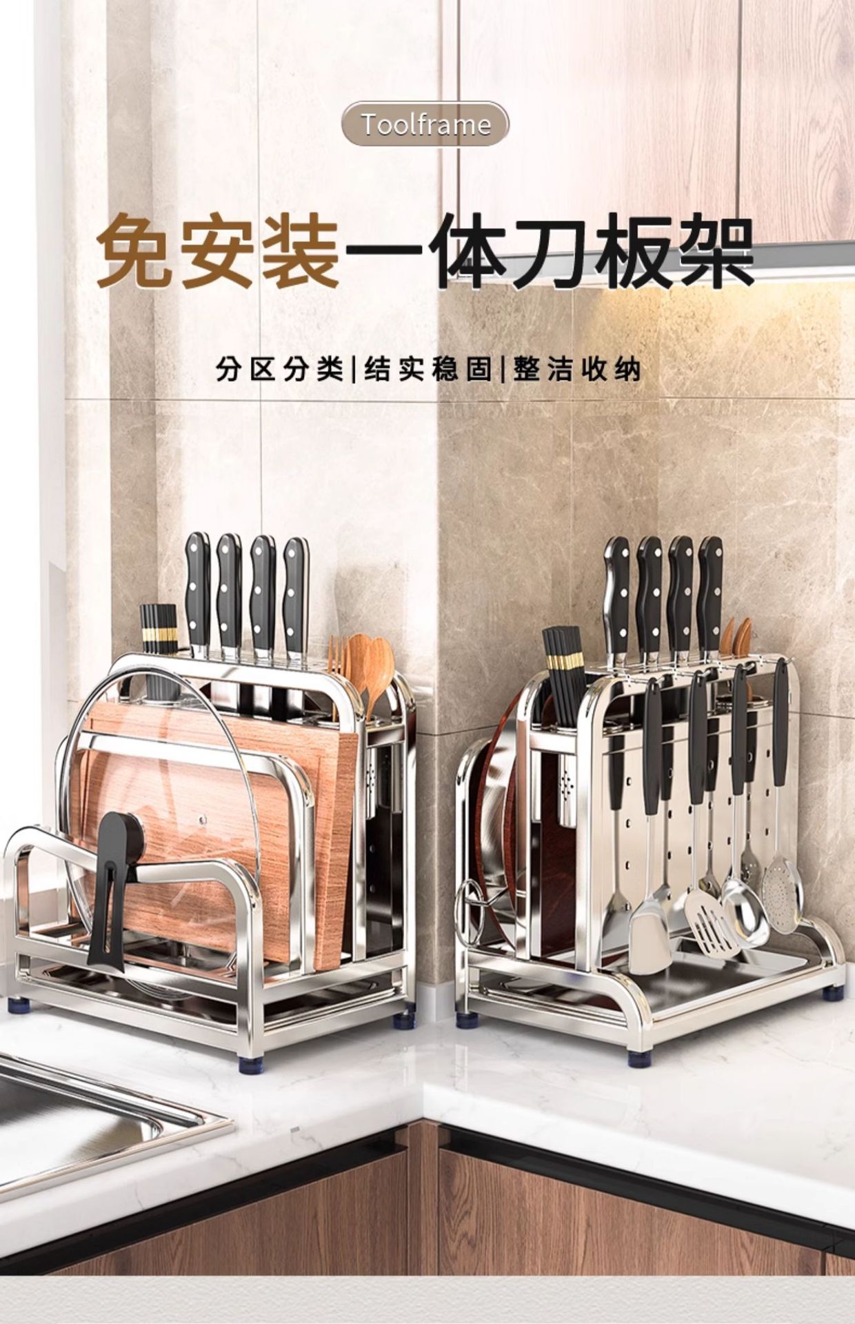 304 스테인레스 스틸 나이프 홀더 주방 랙 다기능 2025 새로운 나이프 통합 스토리지 모루 커팅 보드 배치스토어 가기