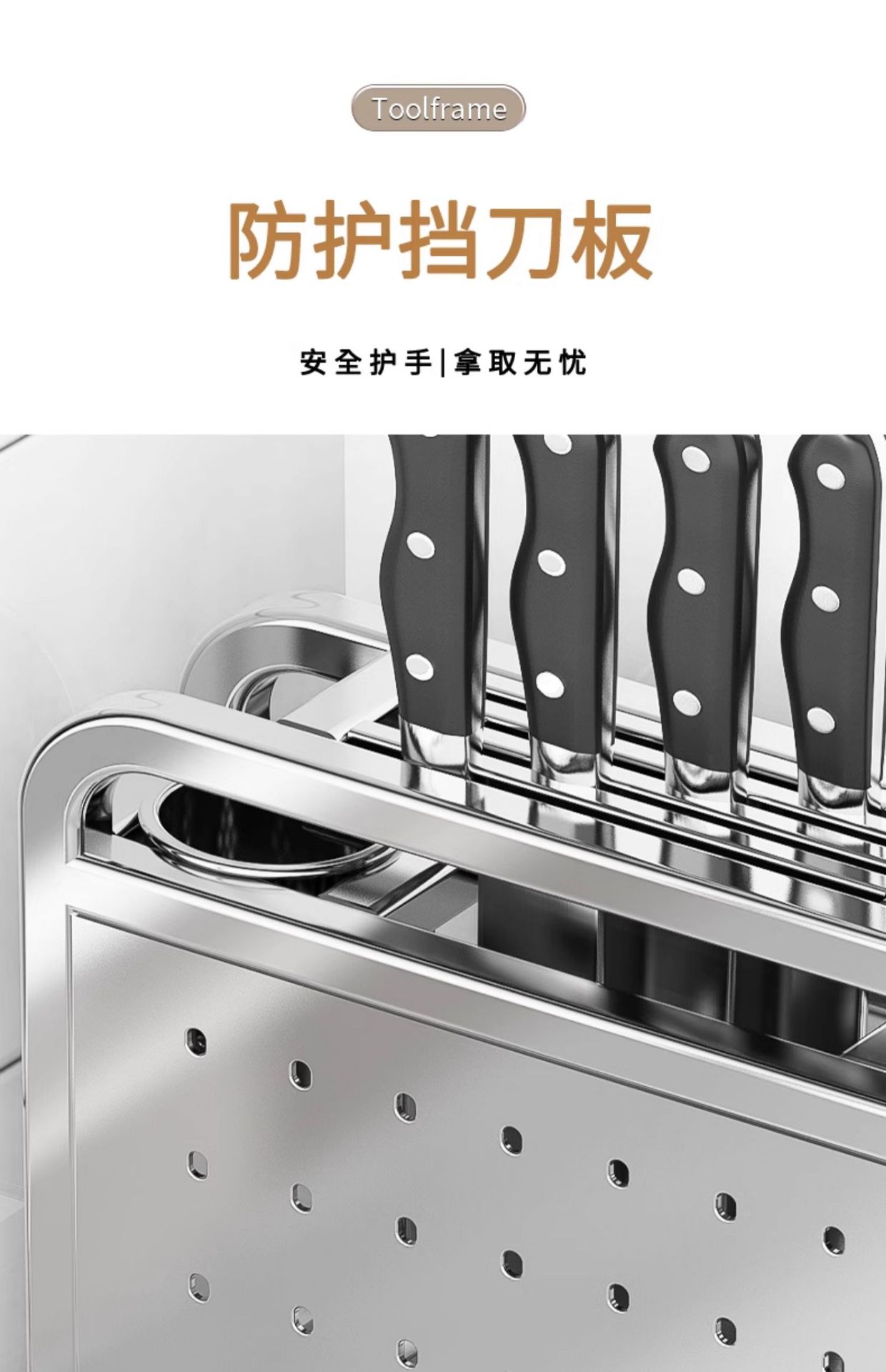 • 304 스테인리스 스틸, 높이 및 폭 증가 [칼 가드 + 이중 젓가락통 + 도마 홀더] 후크 6개 포함.