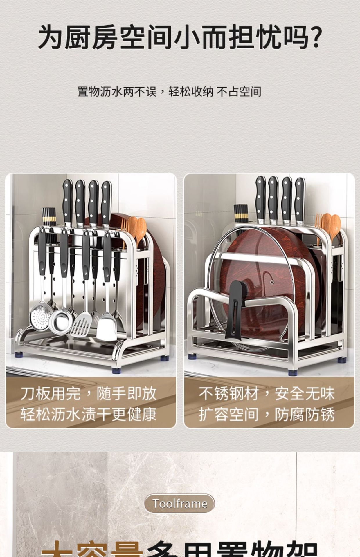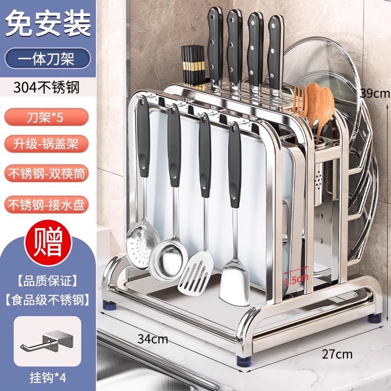 • 304 스테인리스 스틸 · 높이 및 넓어짐 [칼 가드 + 이중 젓가락통 + 도마 홀더 + 냄비 뚜껑 홀더] 후크 6개 무료