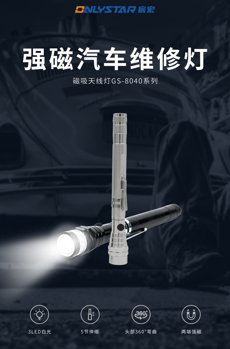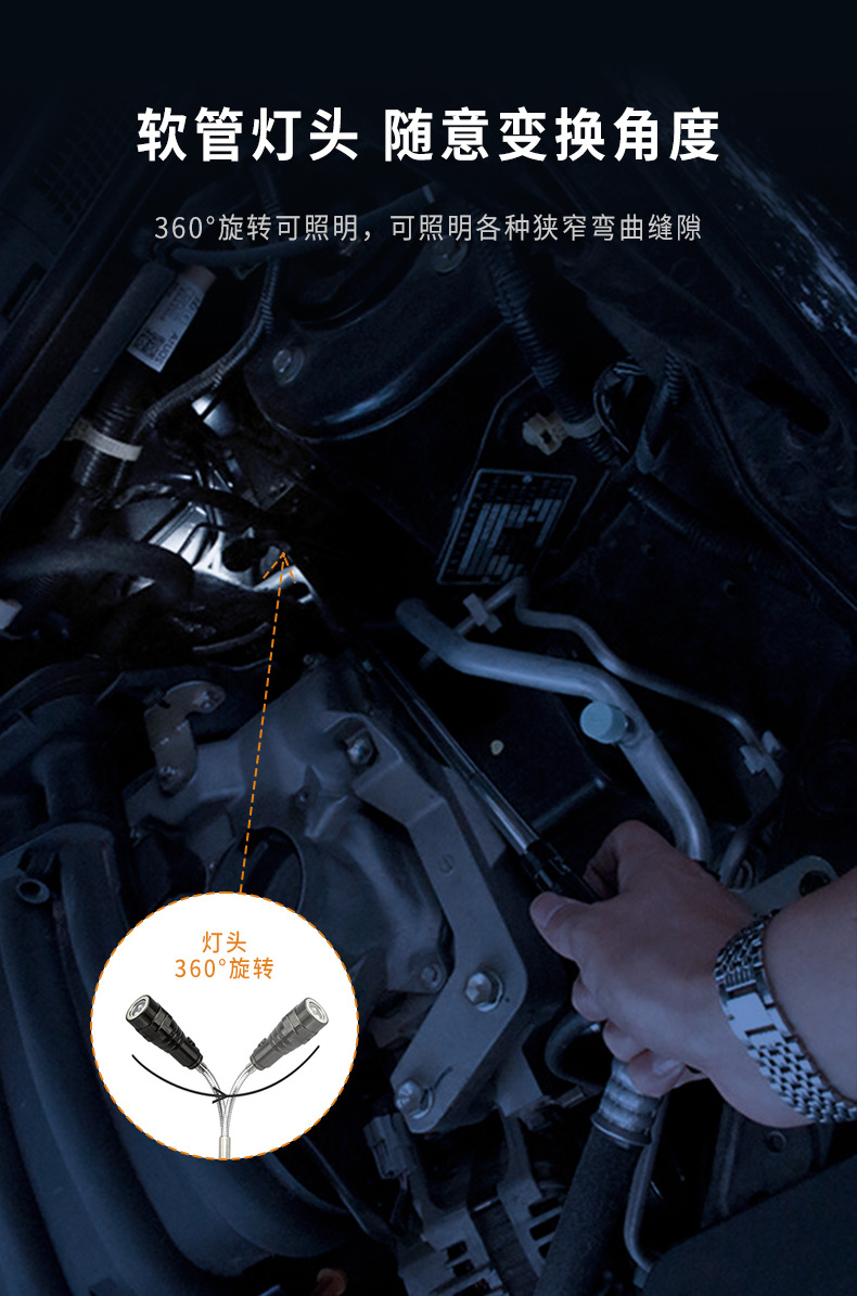 자석 안테나 조명 작업 손전등으로 알루미늄 합금 소재 3led 조명 픽업 야외 자동차 회전 유지 보수