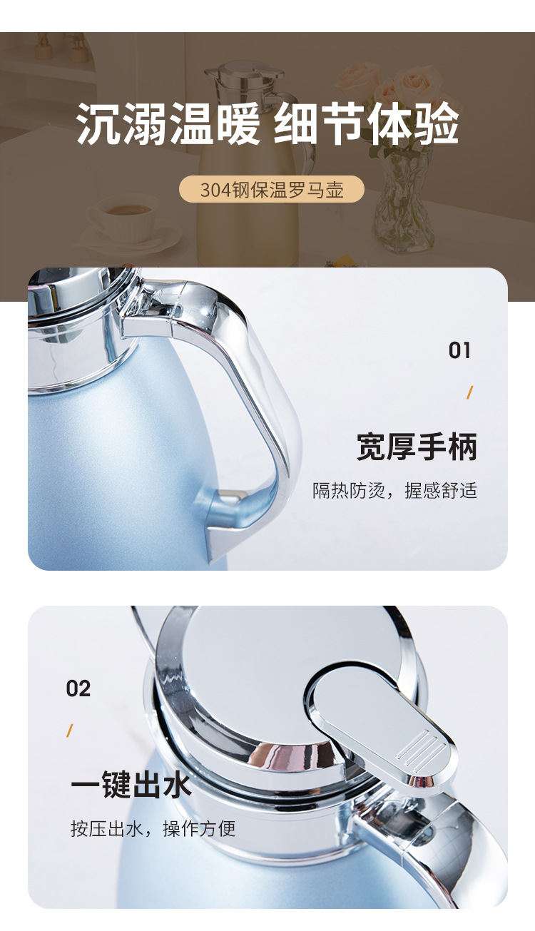 304 스테인레스 스틸 절연 주전자 대용량 가정용 주전자 온수 주전자 보온병 로마 진공 보온병