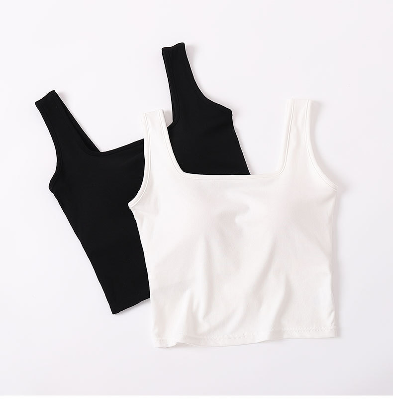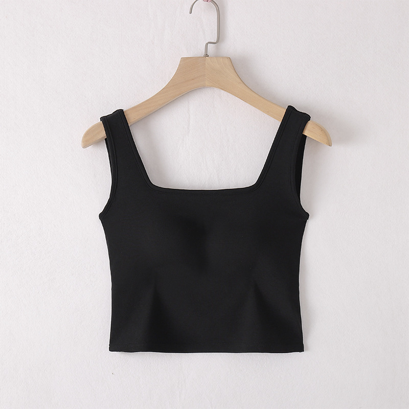 봄과 여름 새로운 도착 카미 솔 조끼 가슴 패드 여성 유행 올 매치 아우터 입고 스퀘어 칼라 크로스 코튼 베이스 솔리드 컬러 탑스토어 가기