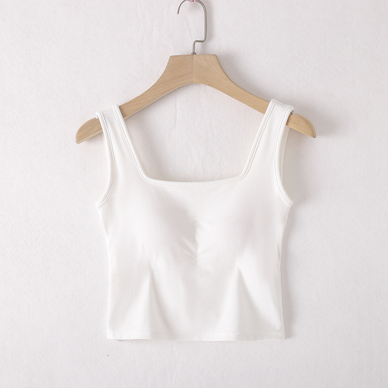 봄과 여름 새로운 도착 카미 솔 조끼 가슴 패드 여성 유행 올 매치 아우터 입고 스퀘어 칼라 크로스 코튼 베이스 솔리드 컬러 탑