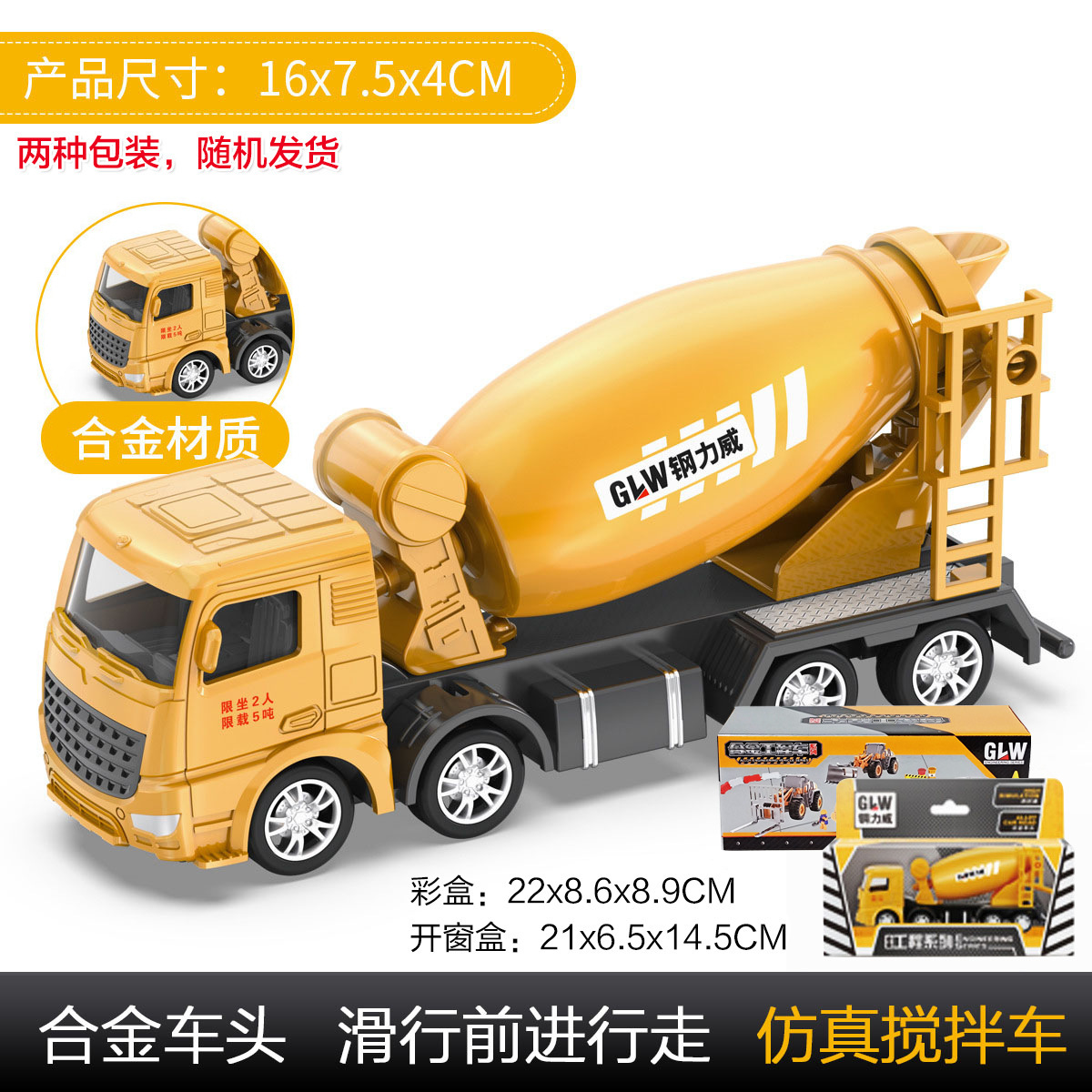 • 노란색 업그레이드 믹서 트럭(소리 및 빛 반환)(박스형)