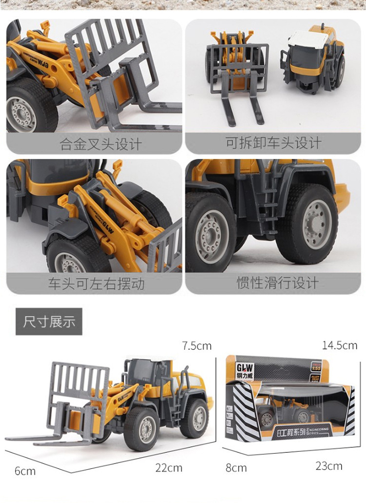 • 노란색 엔지니어링 차량 대형 팔레트 트럭(미니카 2대 포함)(박스형)