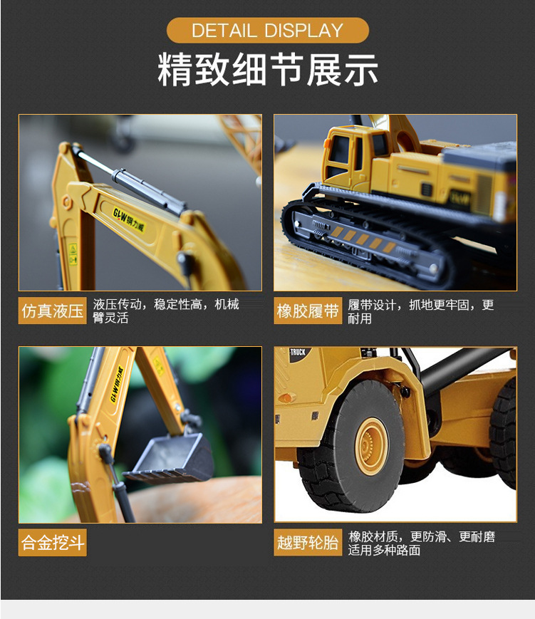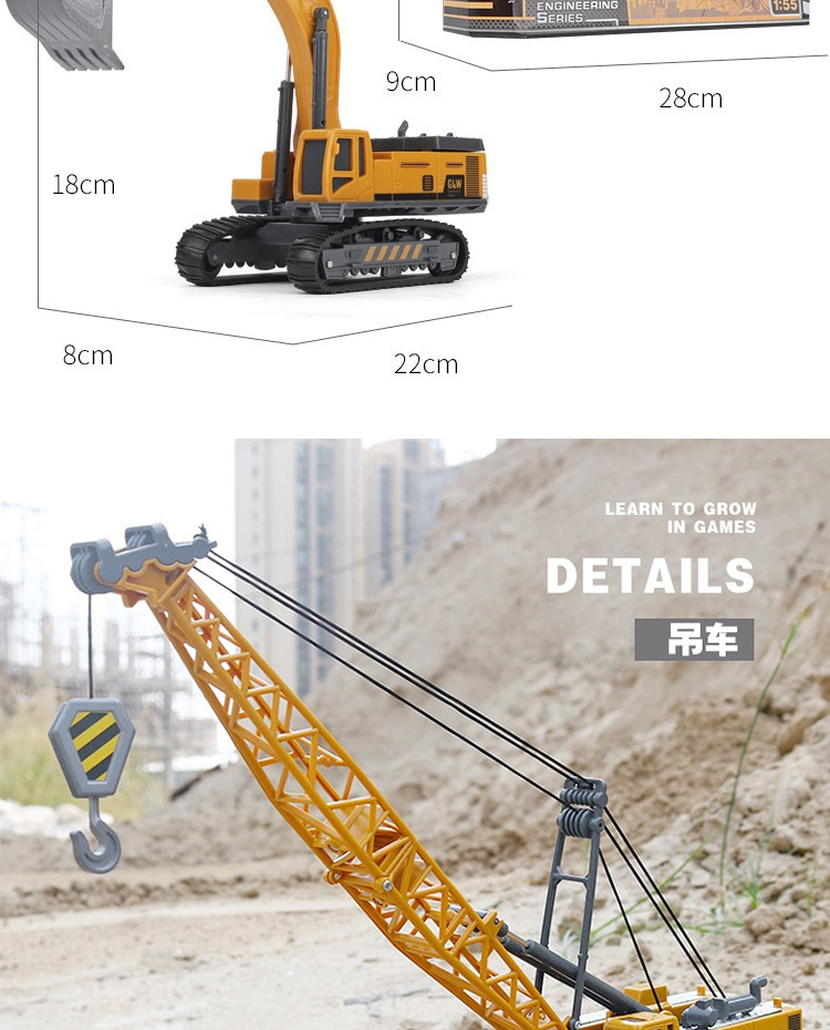 무료 배송 어린이 장난감 1 합금 엔지니어링 차량 굴삭기 장난감 자동차 세트 소년 크레인 도매 계단스토어 가기