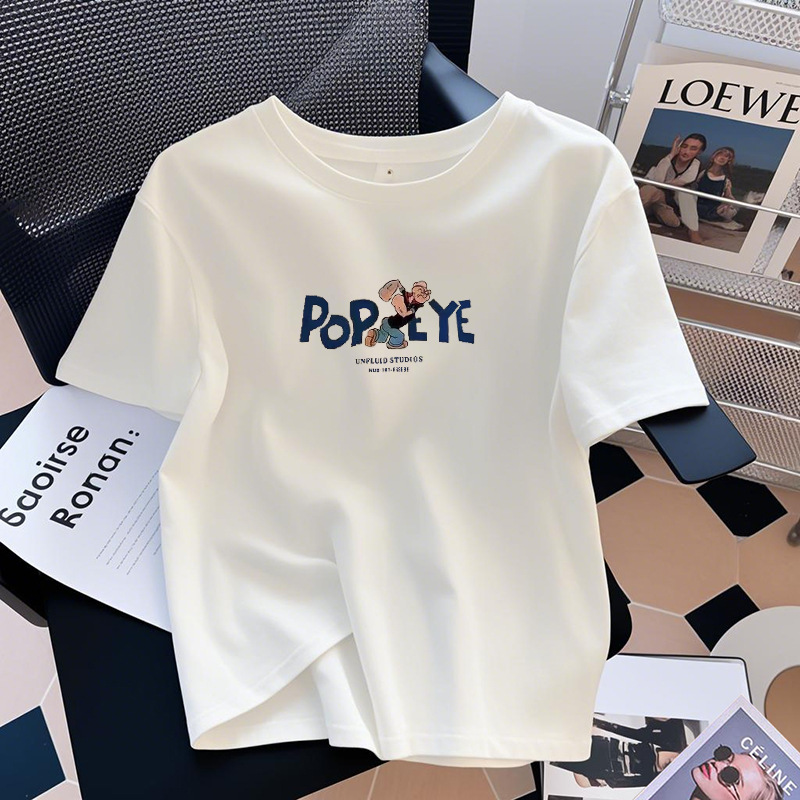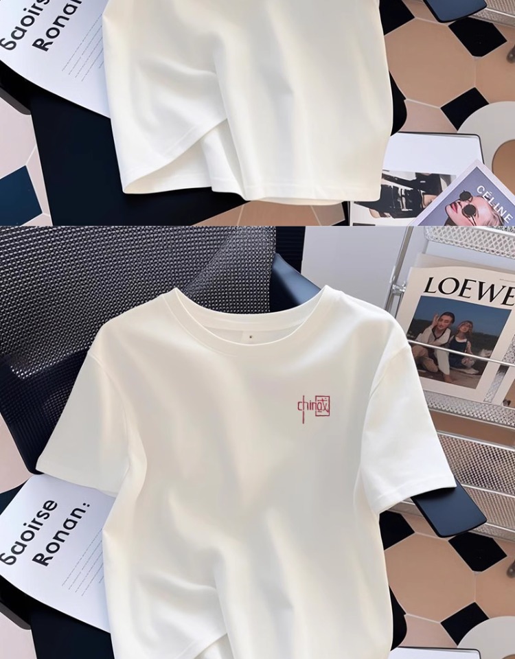 유럽면 화이트 반팔 여성용 티셔츠 여름 2025 새로운 라운드 넥 어깨 내베이스 셔츠 탑 Ins 스타일스토어 가기