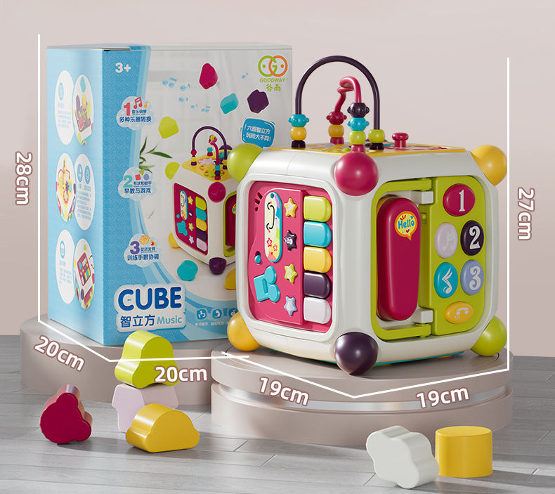 곡물 비 육면체 아기 장난감 6 개월 3 아기 0-1 년 2 어린이 교육 조기 교육 인과성 6 면 상자스토어 가기