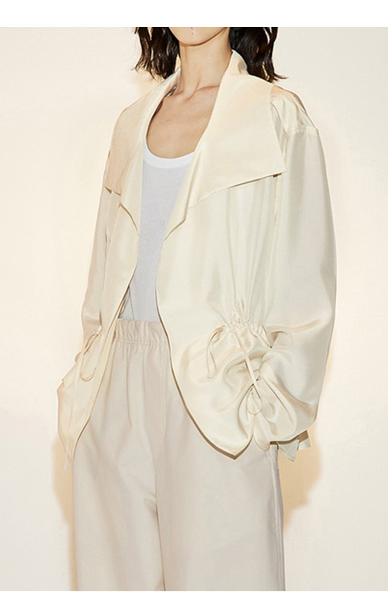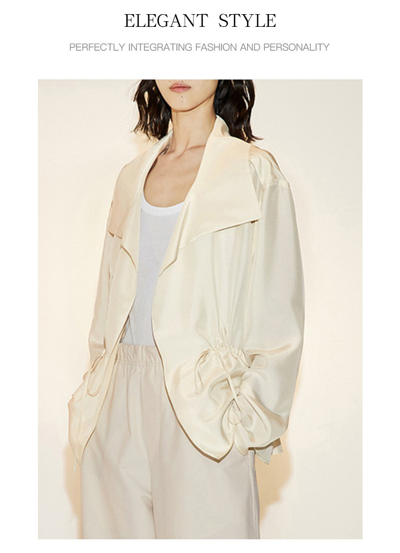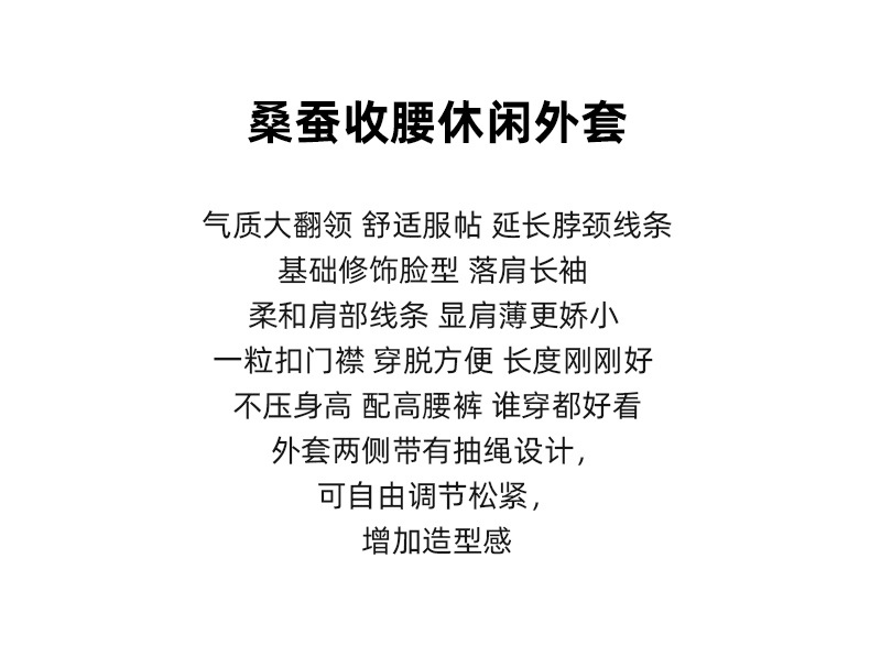 [LS오더] 봄새 2025 년 누에 실크재킷 여성 드루스트링 허리 캐주얼 자켓 슬림탑