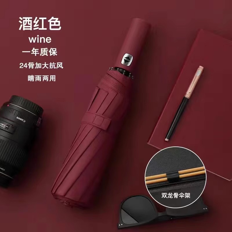 • [자동] 10가닥 이중 가닥 버건디 링 버클 우산