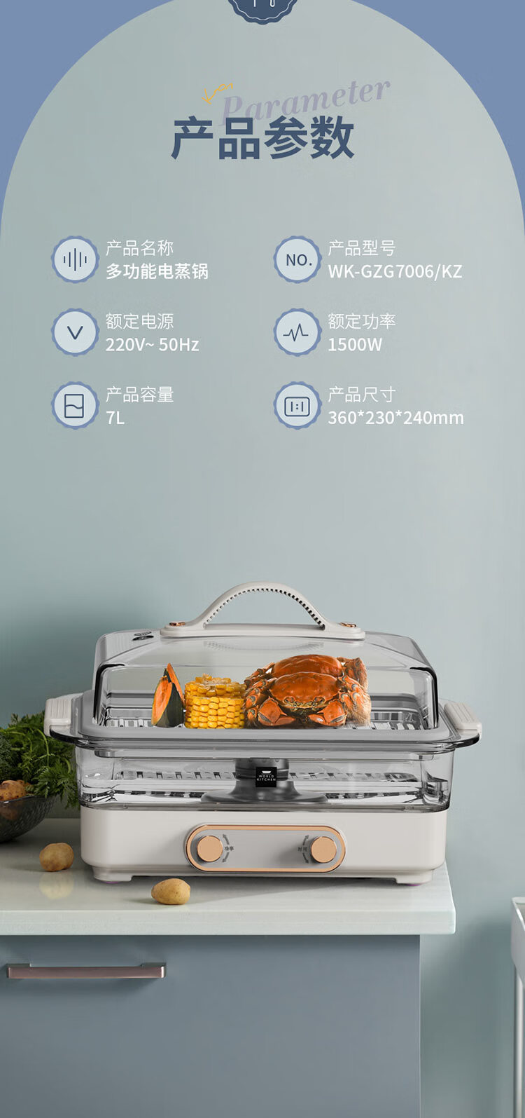 코닝 세계 주방 다기능 트렌드 다기능 냄비 전기 기선 WK-GZG7006/KZ