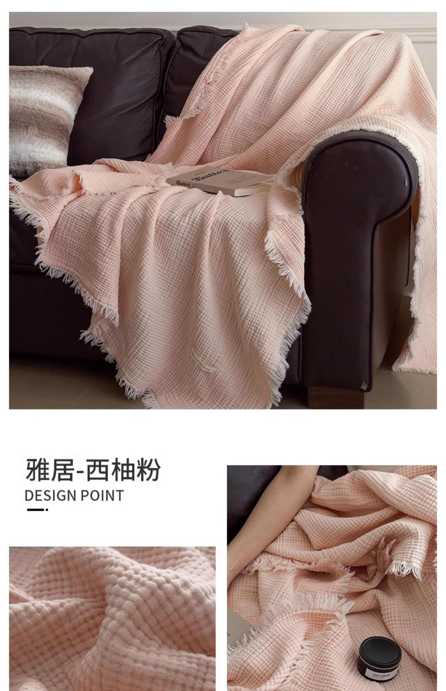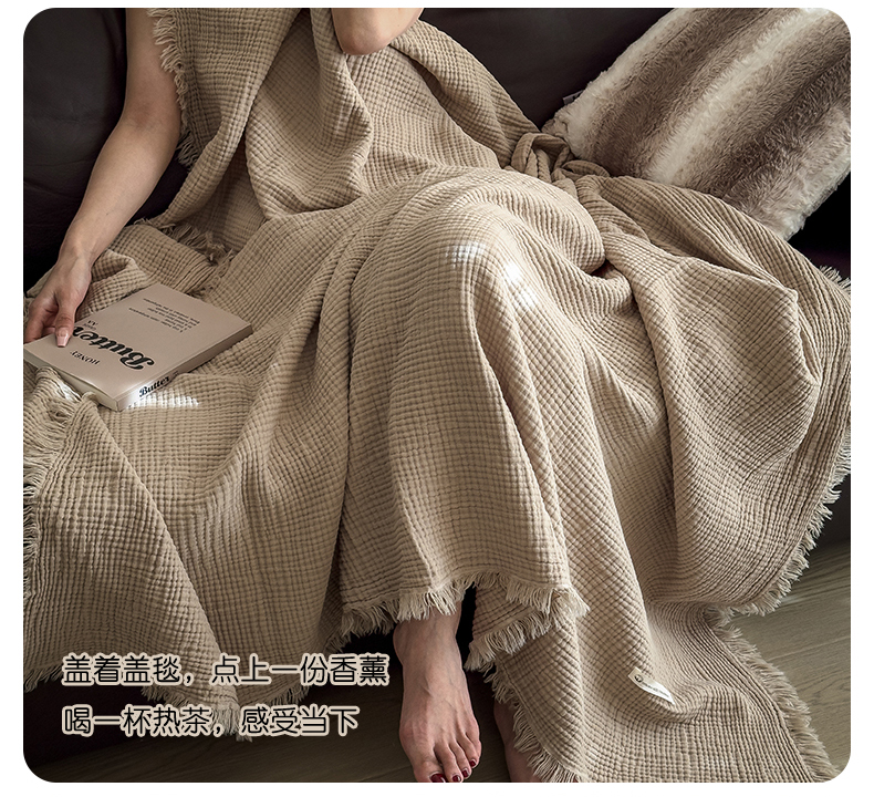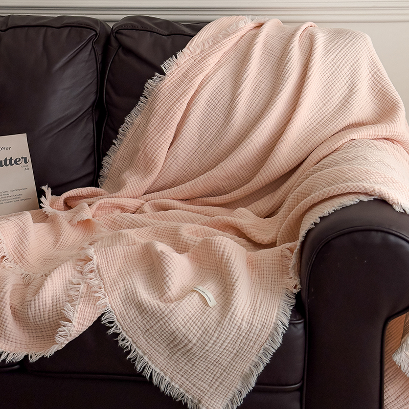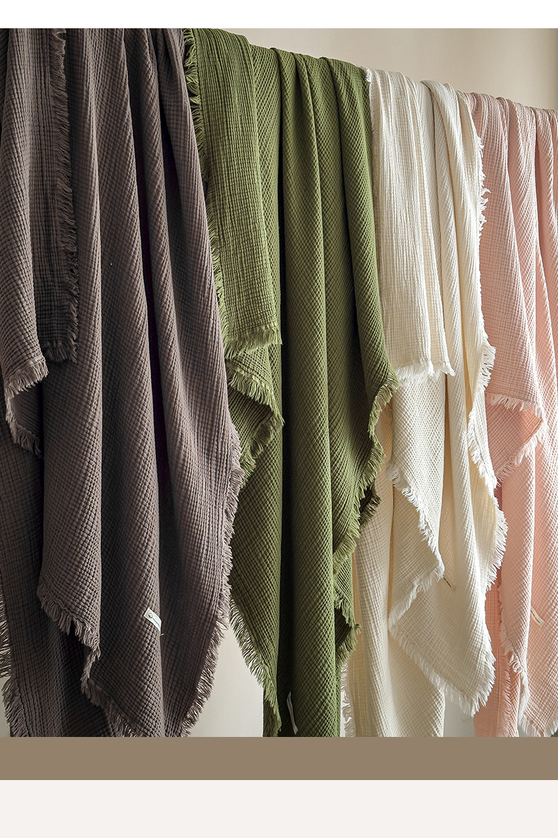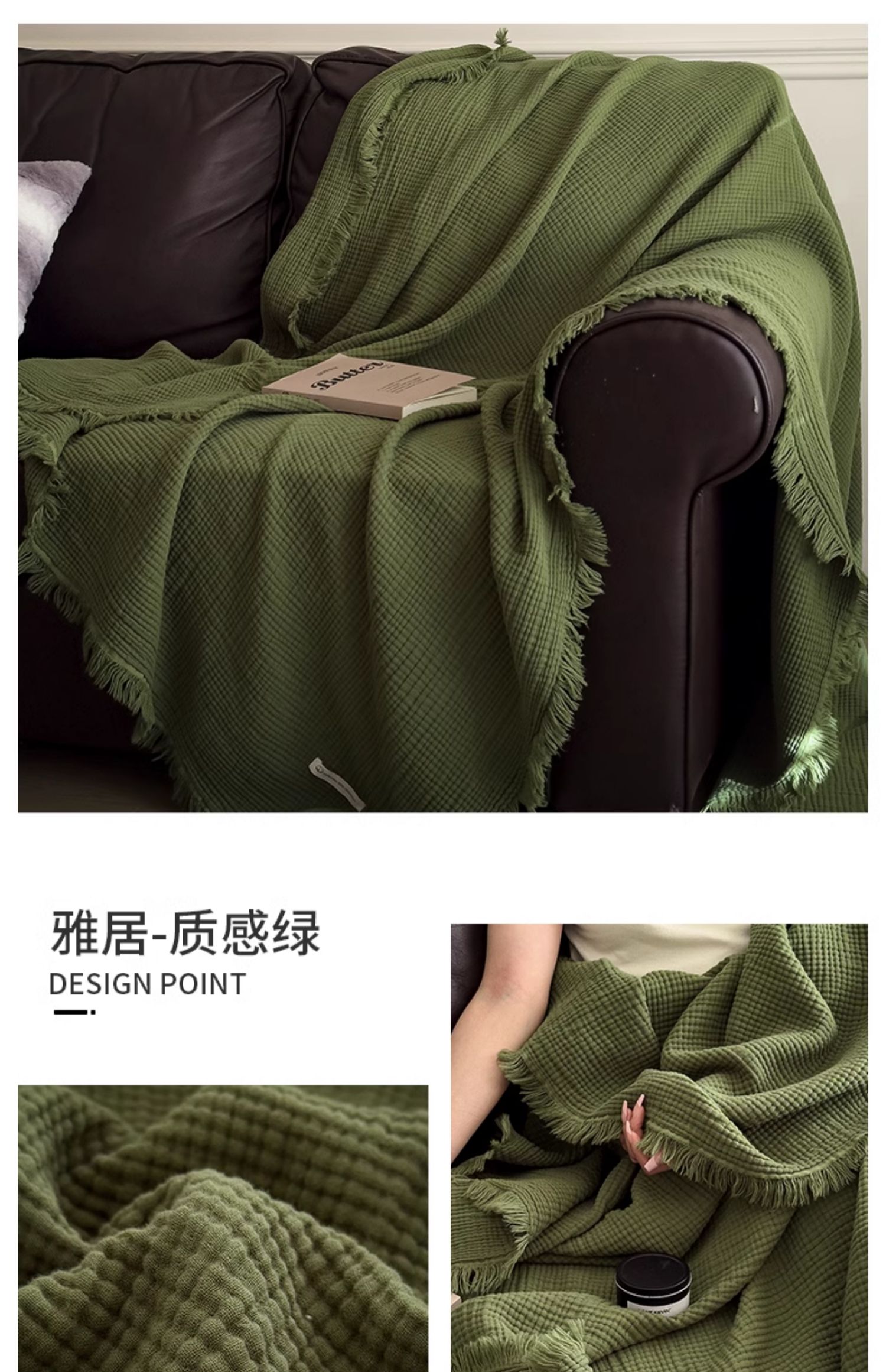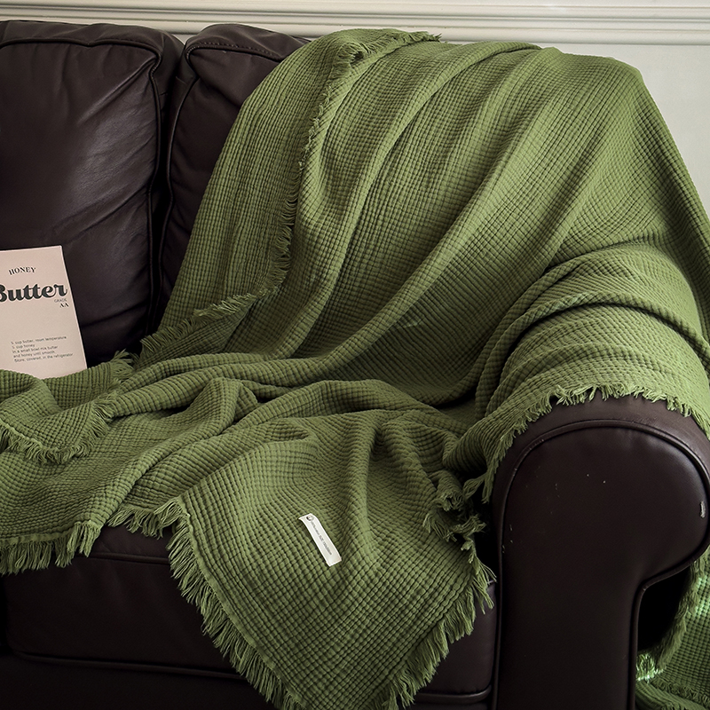 • 야주텍스쳐 그린 [면 100% 6겹 거즈 태슬 담요]