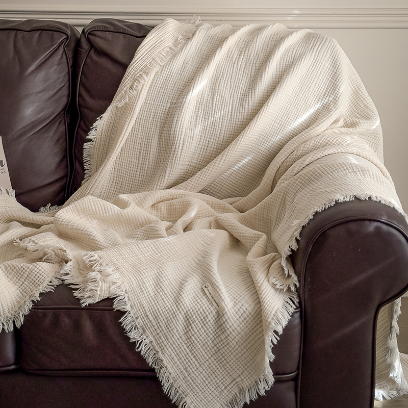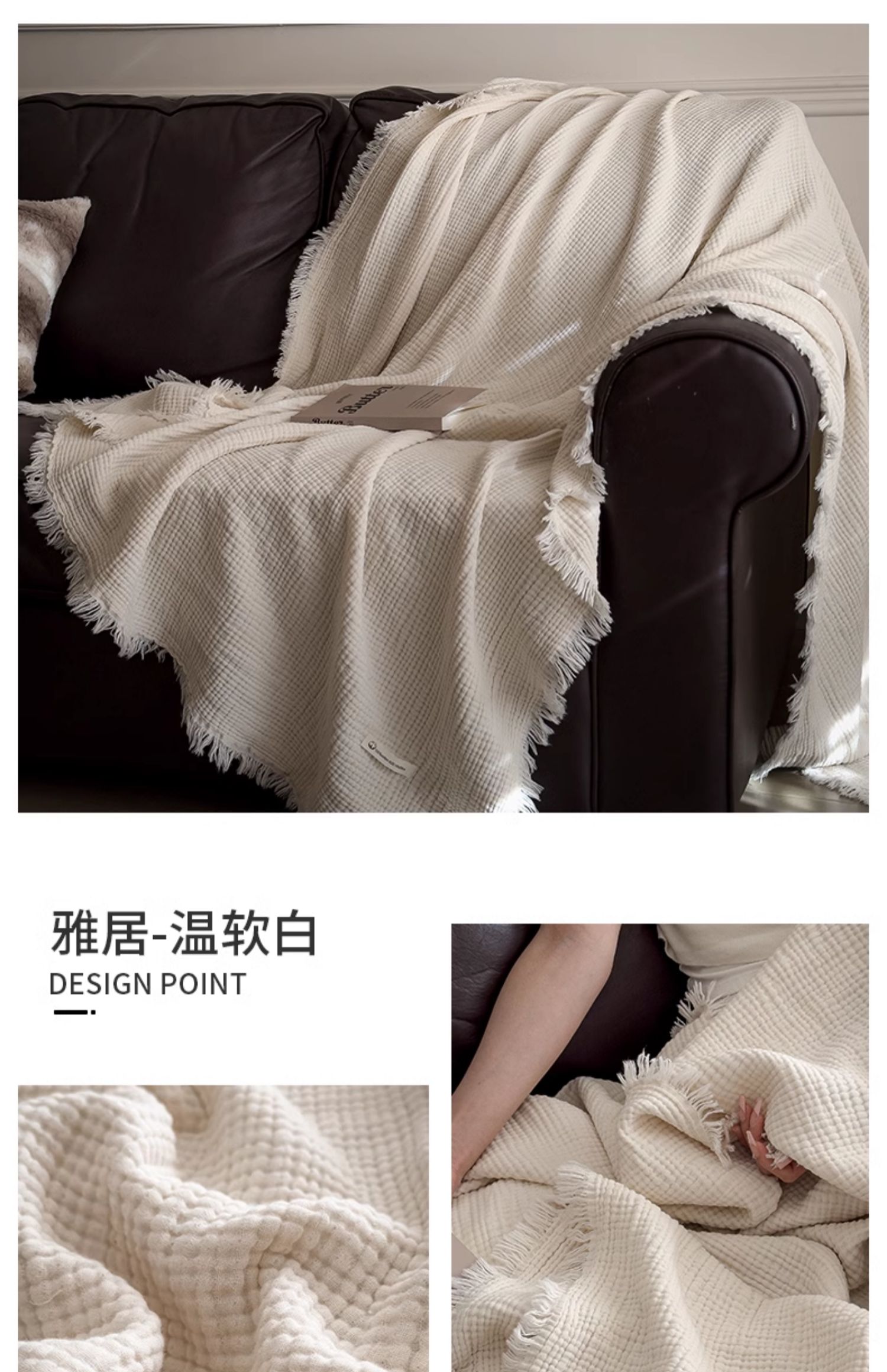 • 야주-웬러안 화이트 [면 100% 6겹 거즈 태슬 담요]
