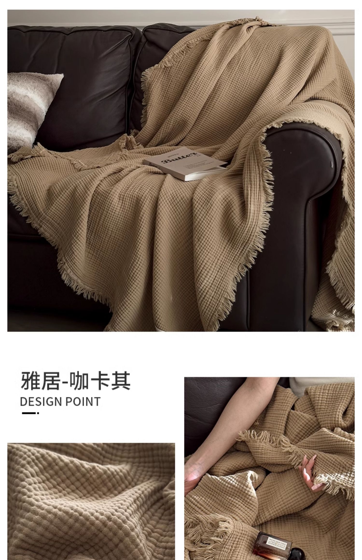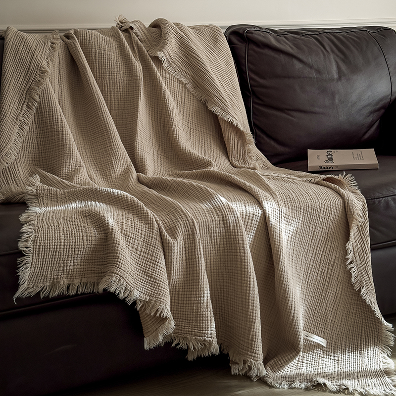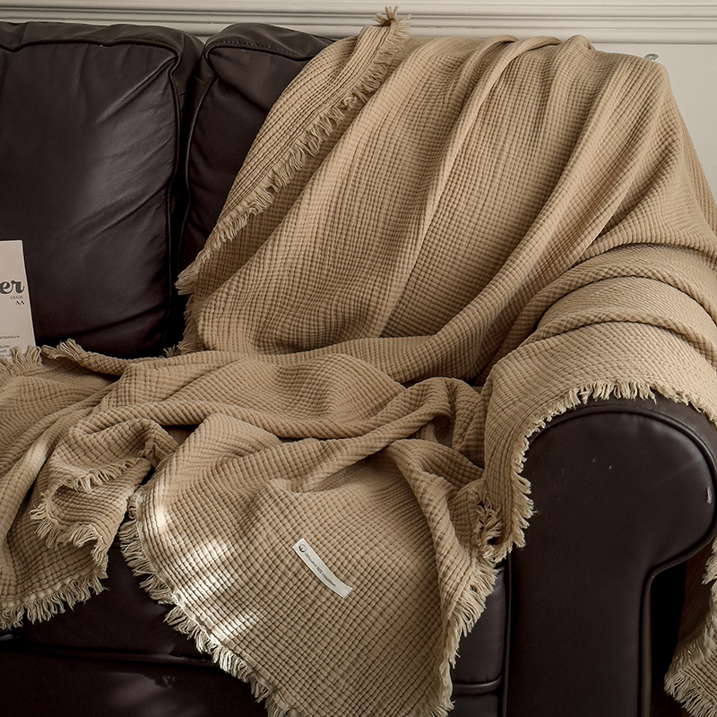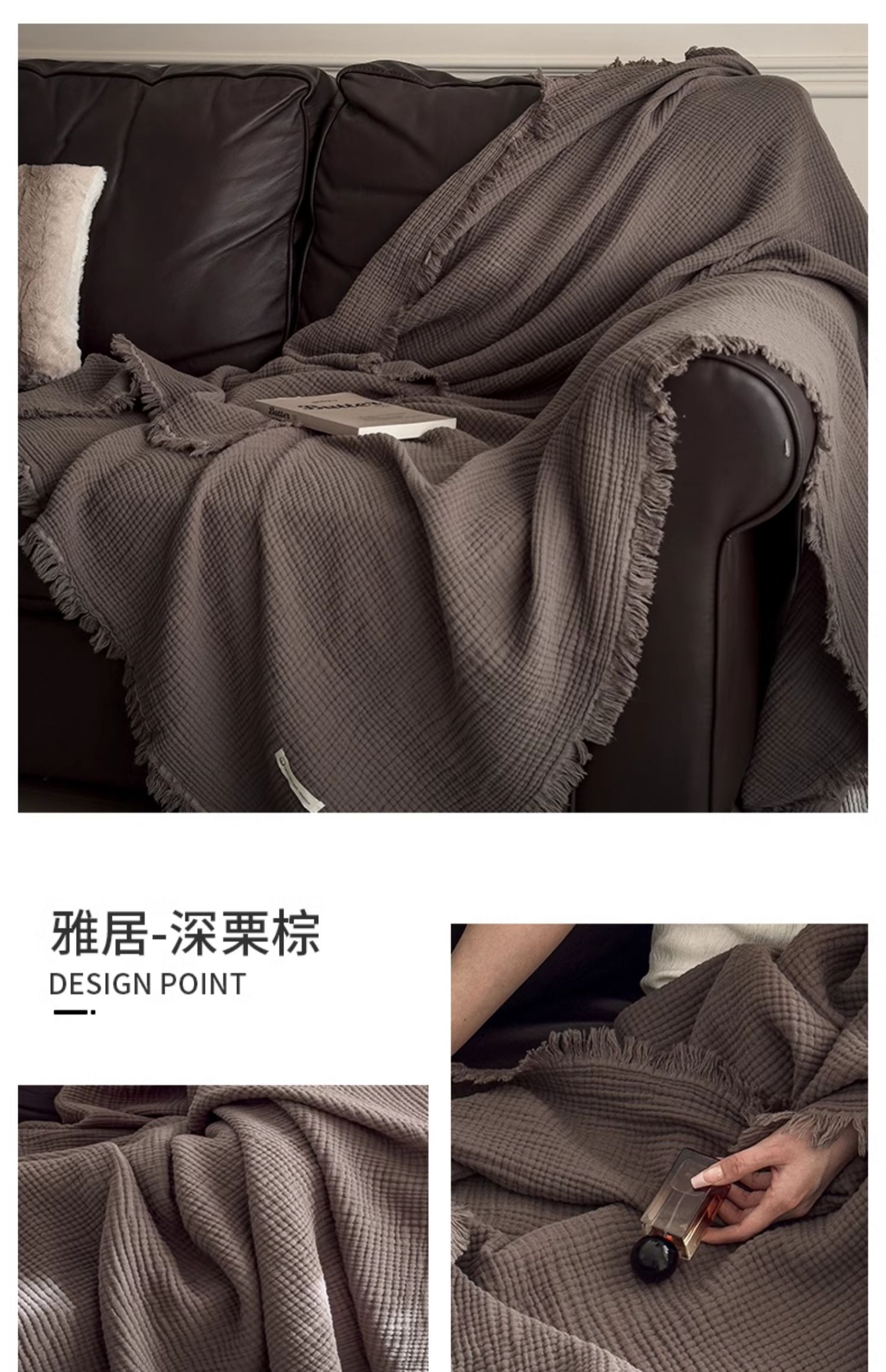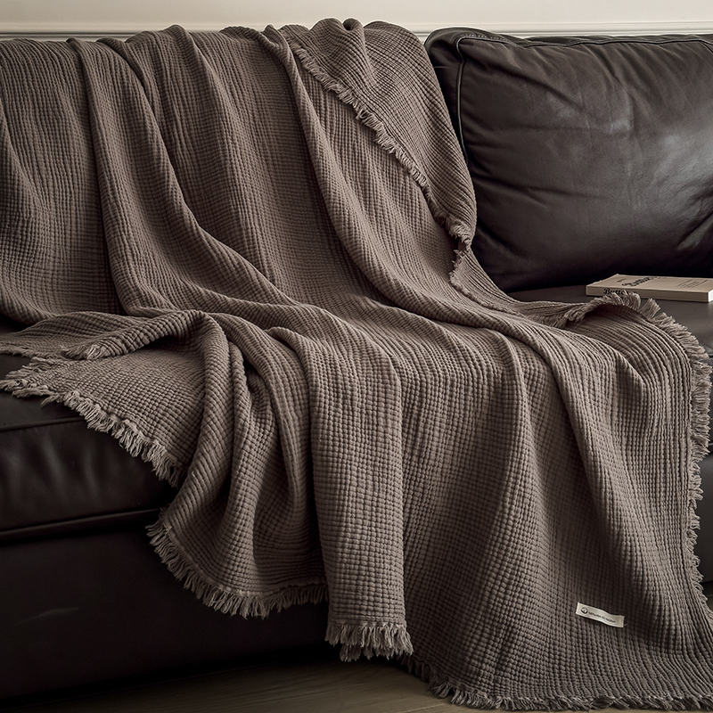 • 야주-다크 체스트넛 브라운 [면 100% 6겹 거즈 태슬 담요]