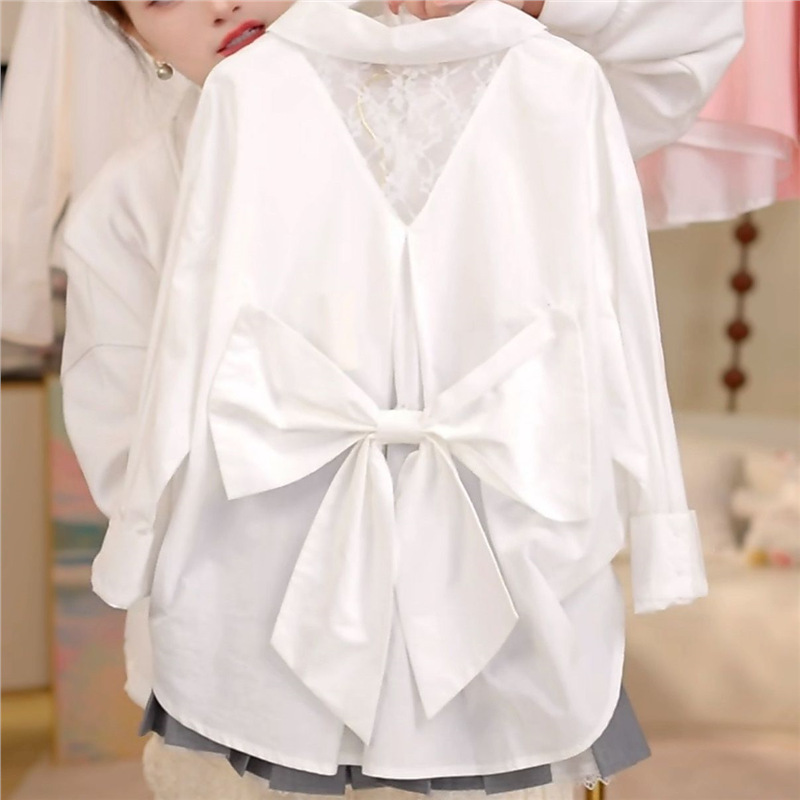 • 리본 화이트 셔츠 + 그레이 로리타 스커트