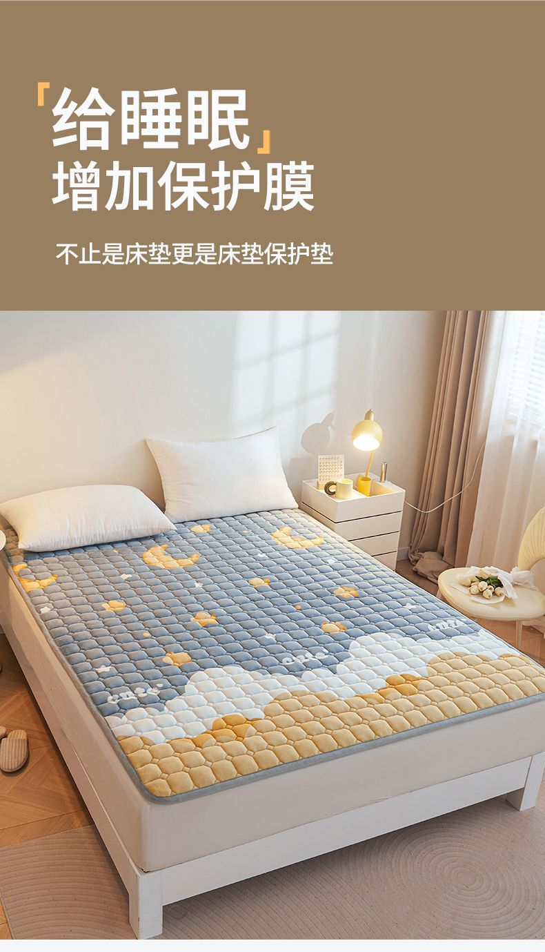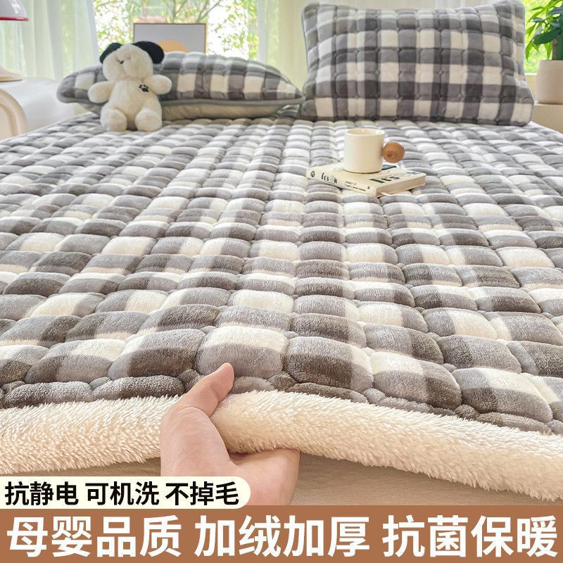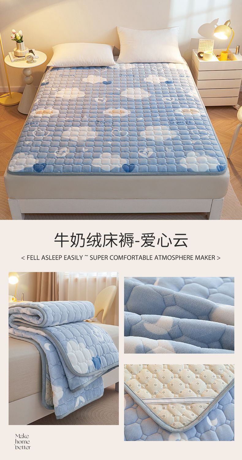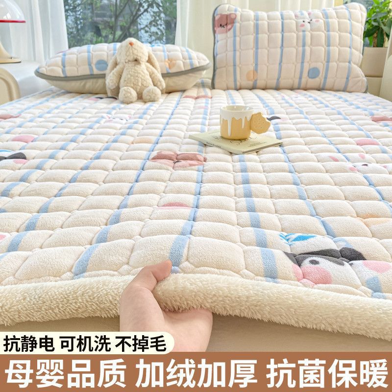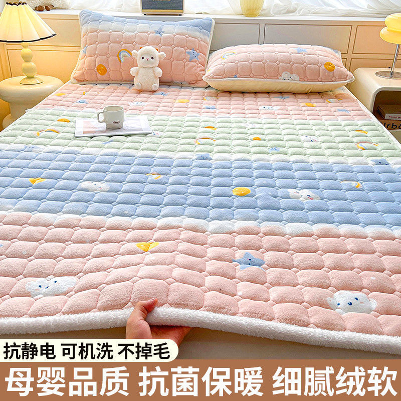 매트리스 침구 기본 미끄럼 방지 우유 벨벳 쿠션 1.8m 침대 매트리스 표면 산호 플란넬 쿠션 단일 사람 따뜻한스토어 가기