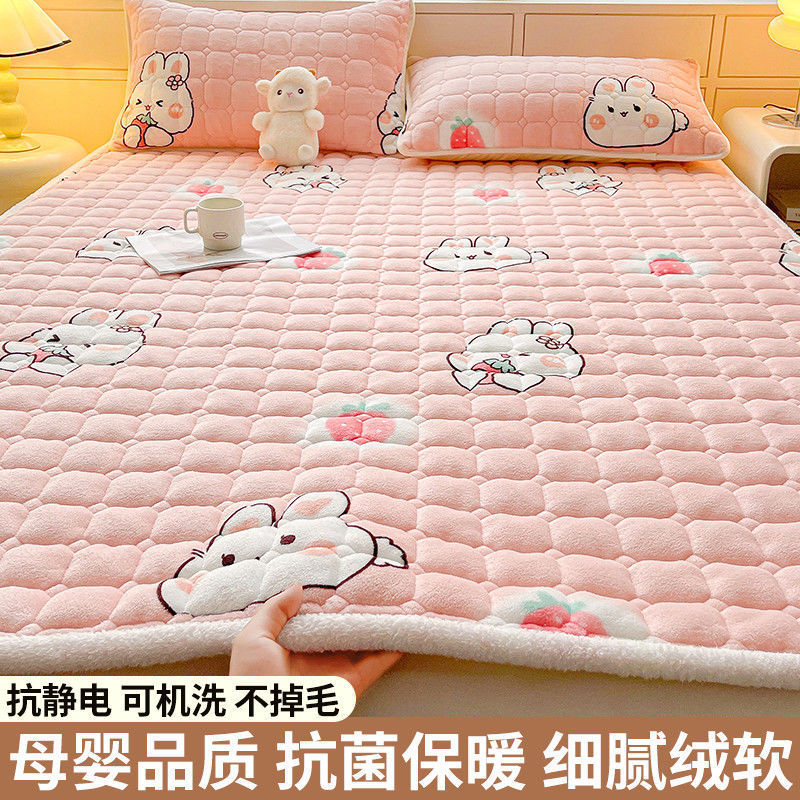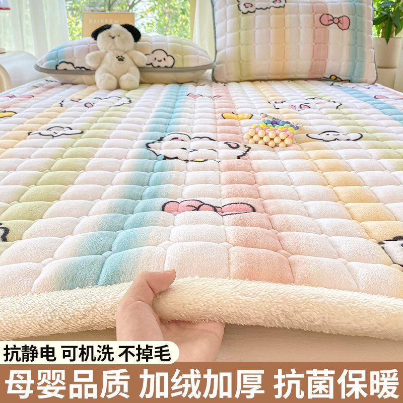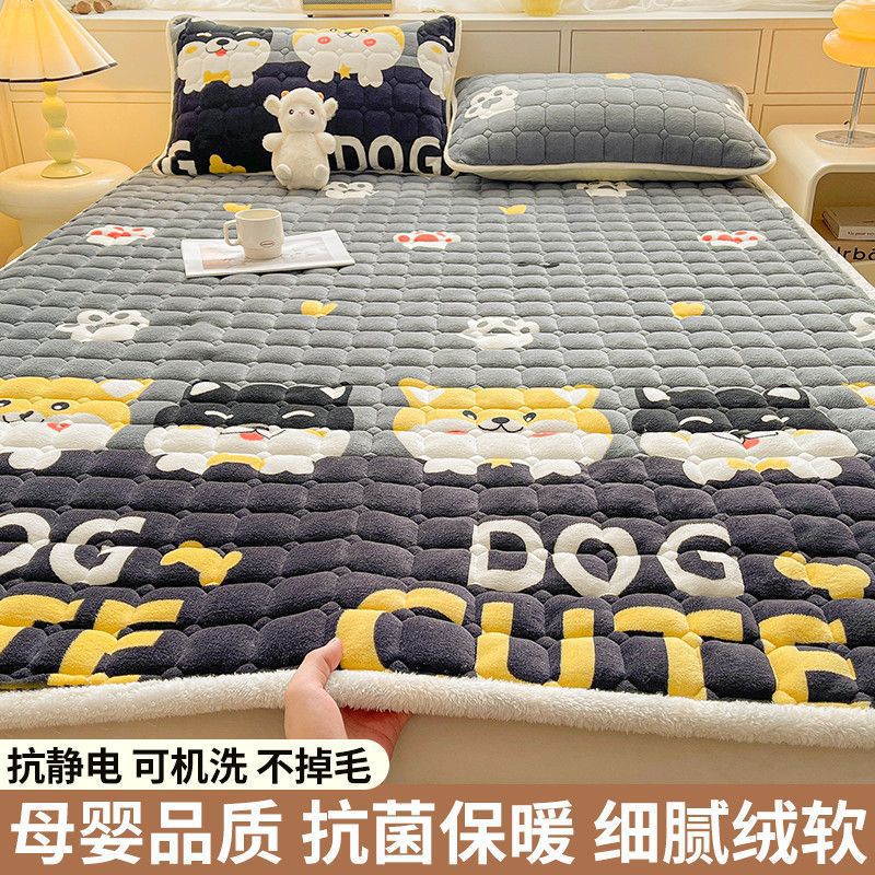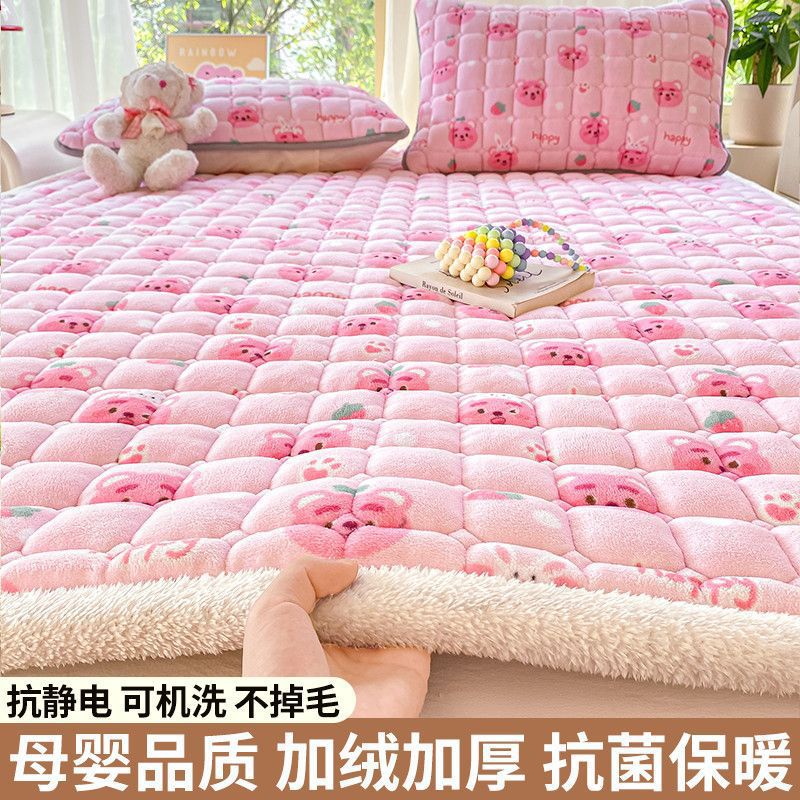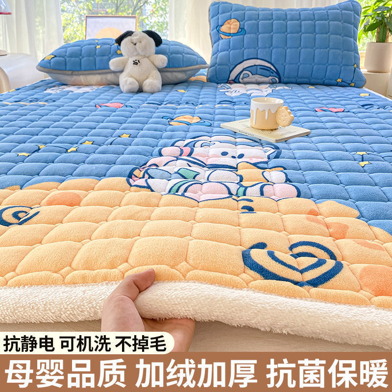 매트리스 침구 기본 미끄럼 방지 우유 벨벳 쿠션 1.8m 침대 매트리스 표면 산호 플란넬 쿠션 단일 사람 따뜻한스토어 가기