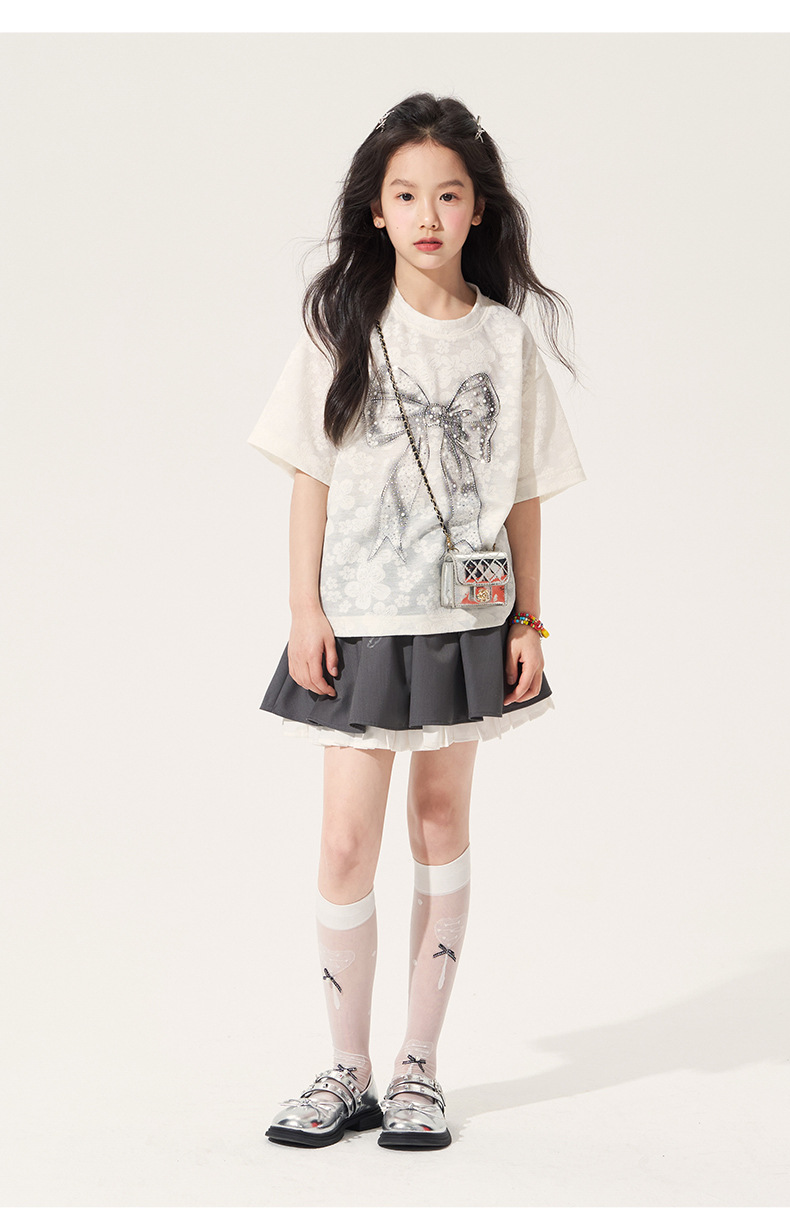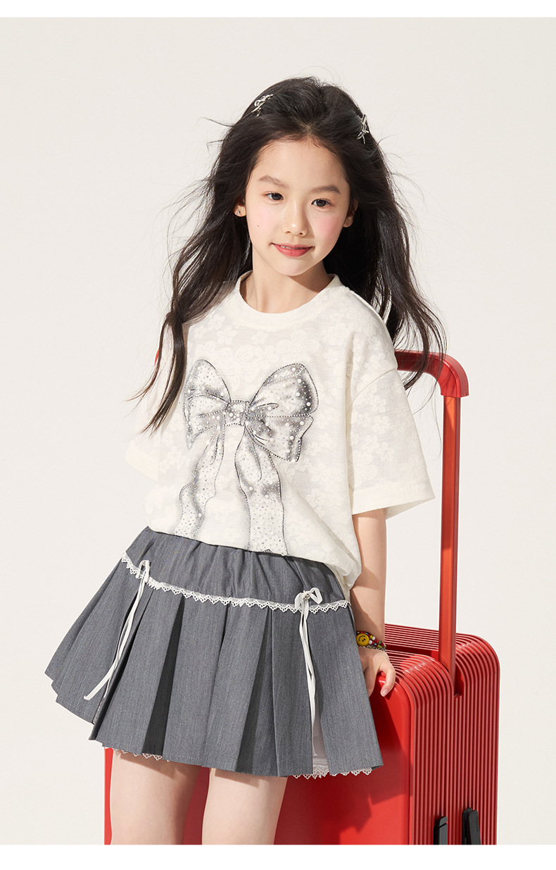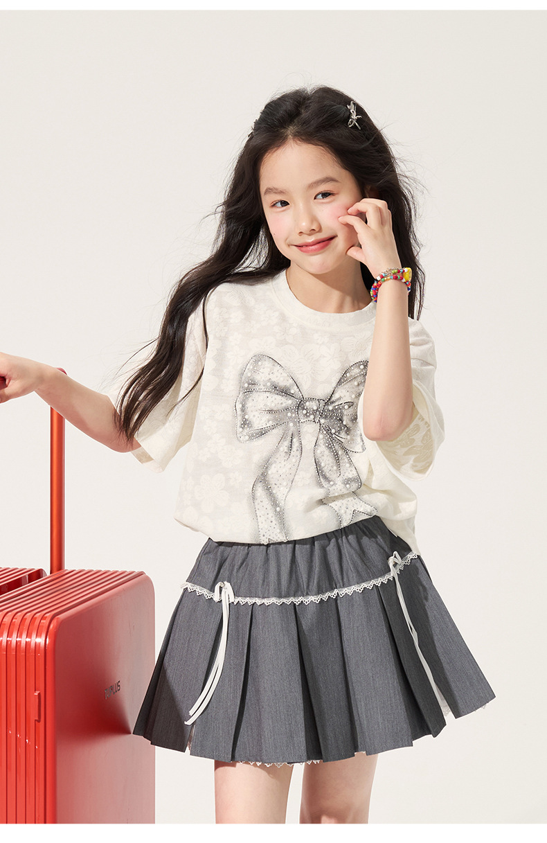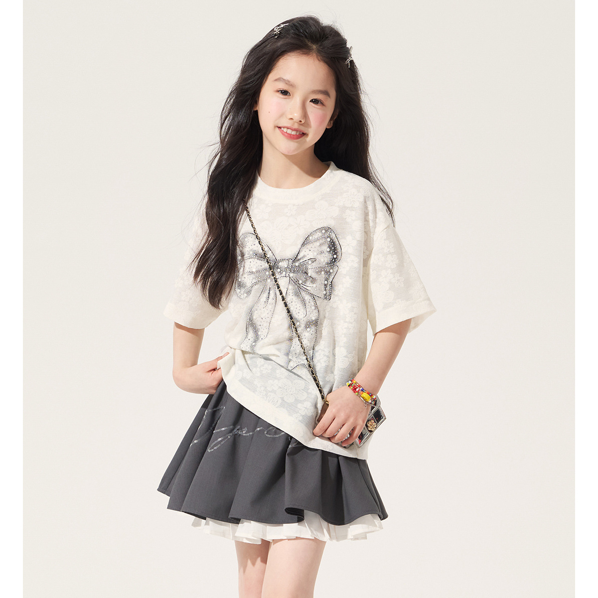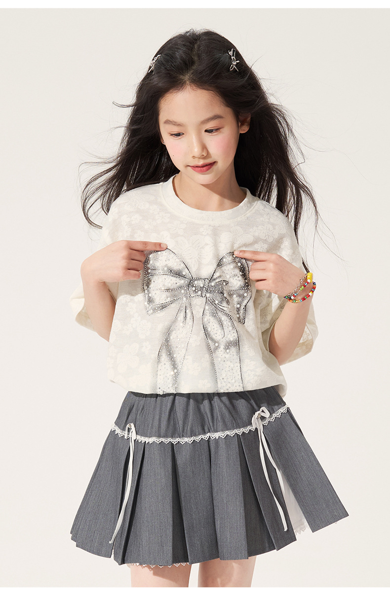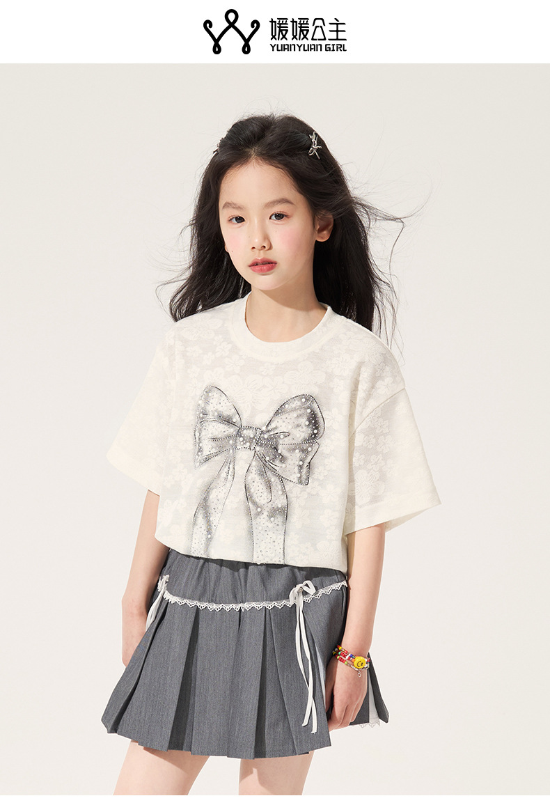여아 티셔츠 2026 여름 신상품 아동용 중대형 어린이용 리본 반팔 상의 짧은 스타일 아동복 티셔츠 도매스토어 가기