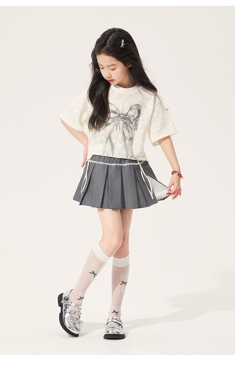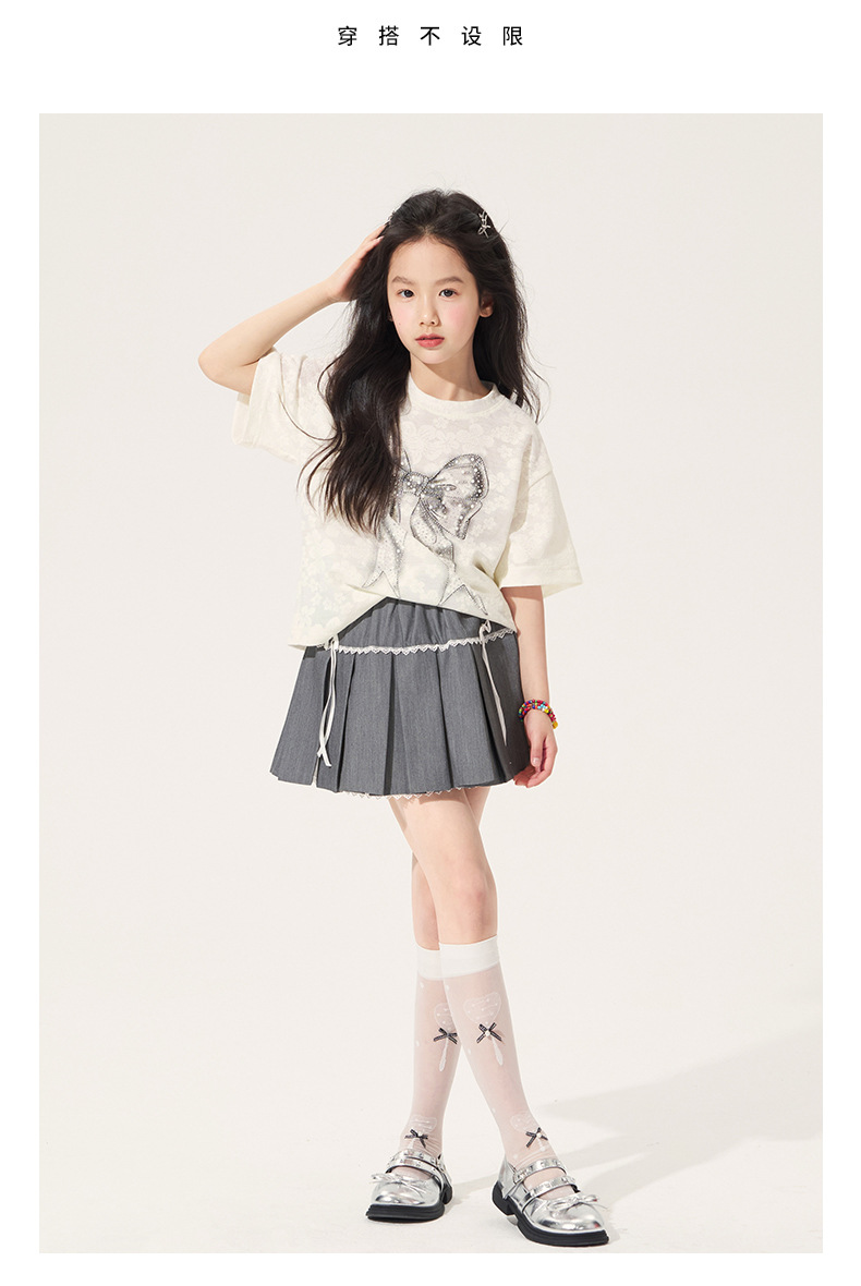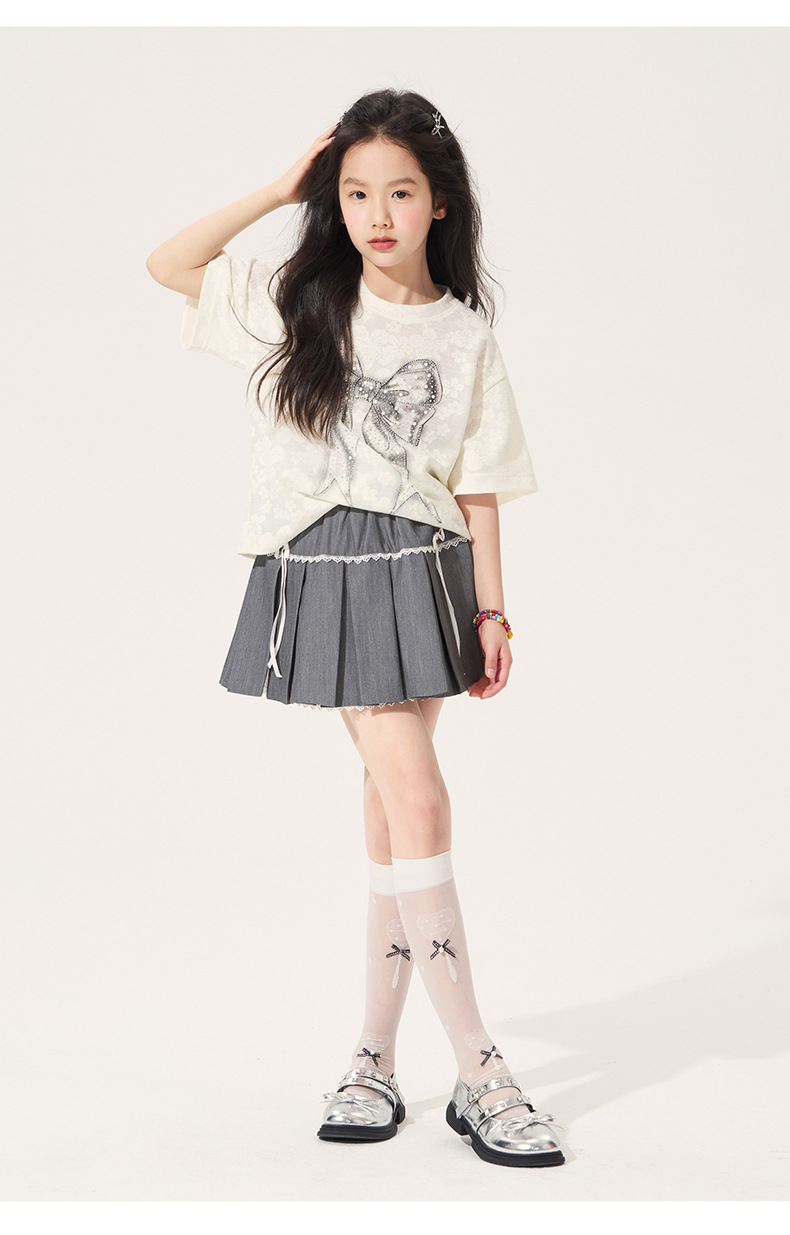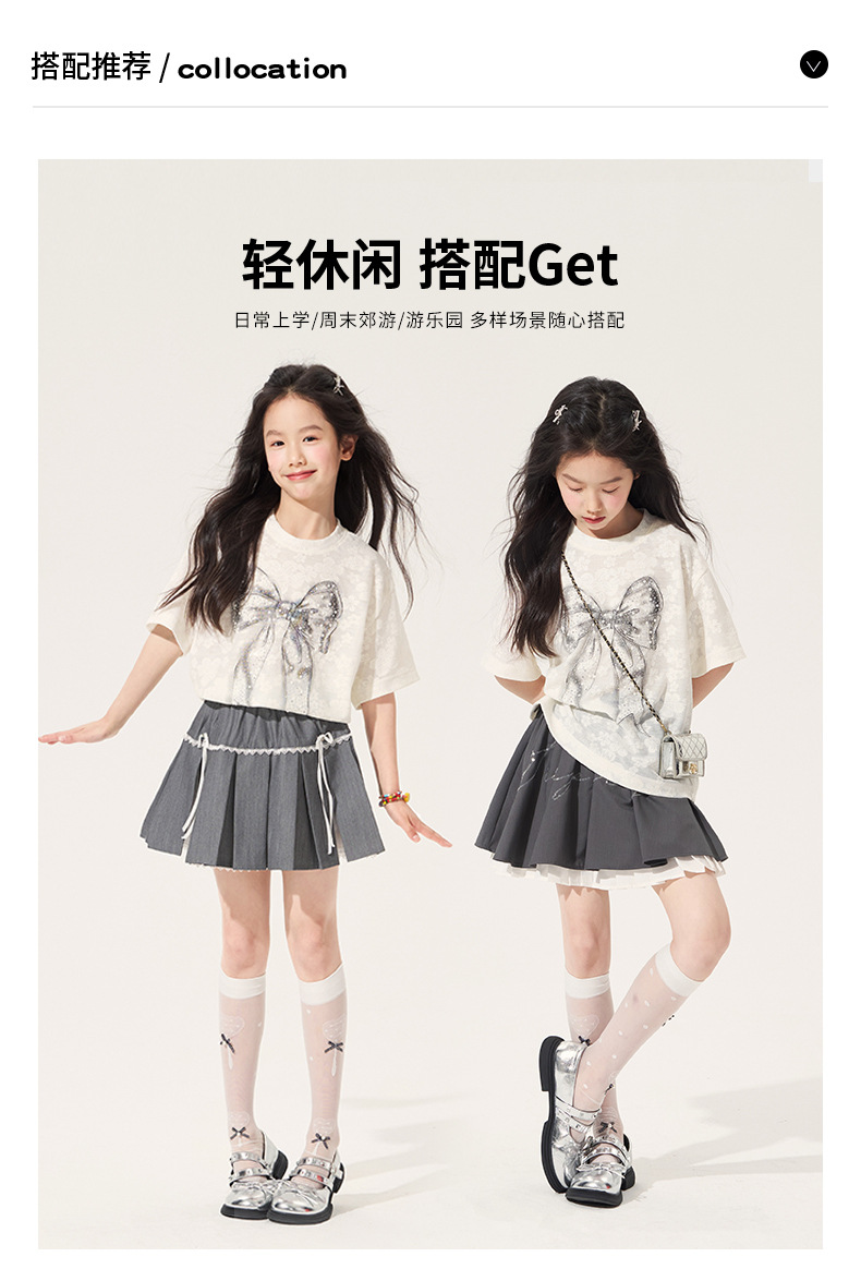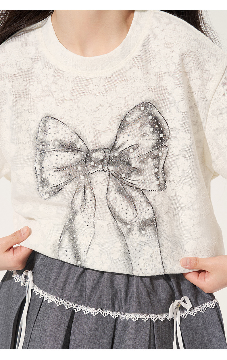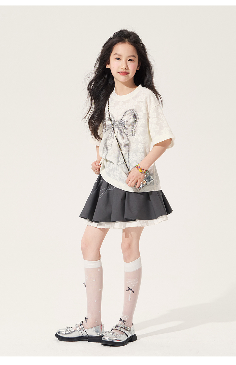 여아 티셔츠 2026 여름 신상품 아동용 중대형 어린이용 리본 반팔 상의 짧은 스타일 아동복 티셔츠 도매스토어 가기