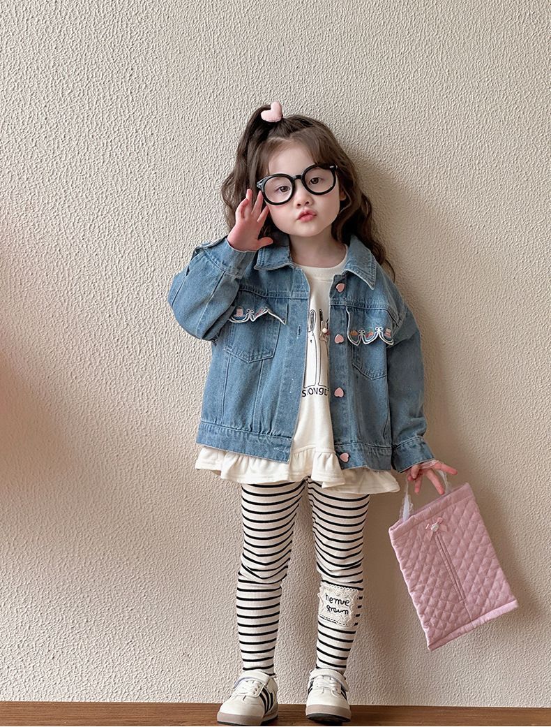 소녀 데님 코트 2025 어린이 봄 옷 아동복 봄 탑 아기 소녀의 봄 옷 새로운스토어 가기