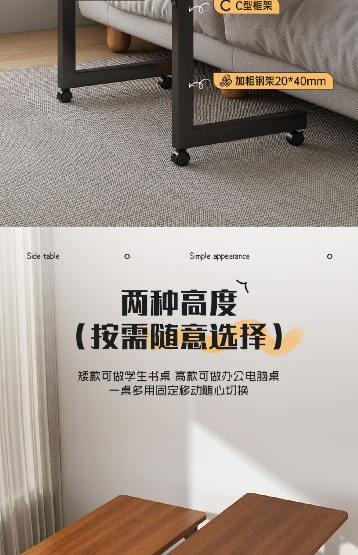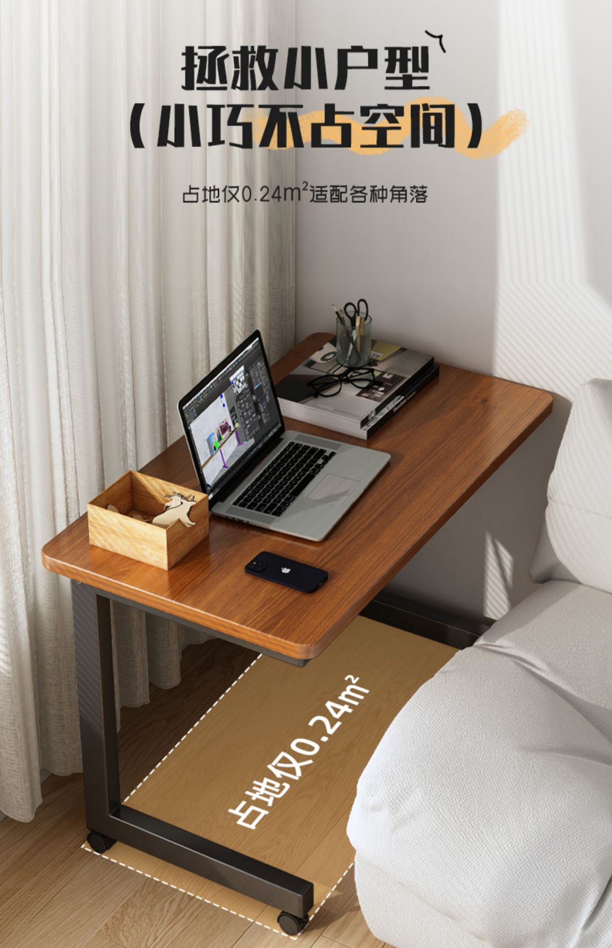 이동식 컴퓨터 책상 침실 침실 테이블 작은 아파트 노트북 작업대 홈 데스크 학습 글쓰기 테이블
