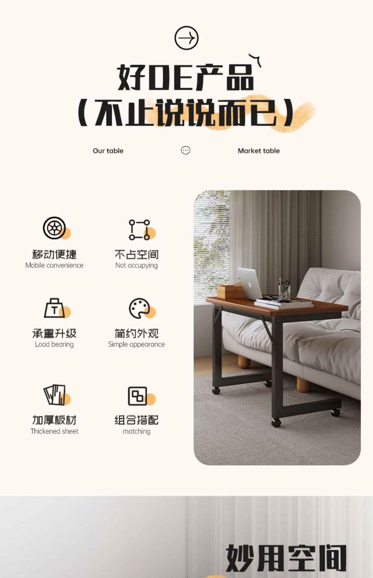 이동식 컴퓨터 책상 침실 침실 테이블 작은 아파트 노트북 작업대 홈 데스크 학습 글쓰기 테이블스토어 가기