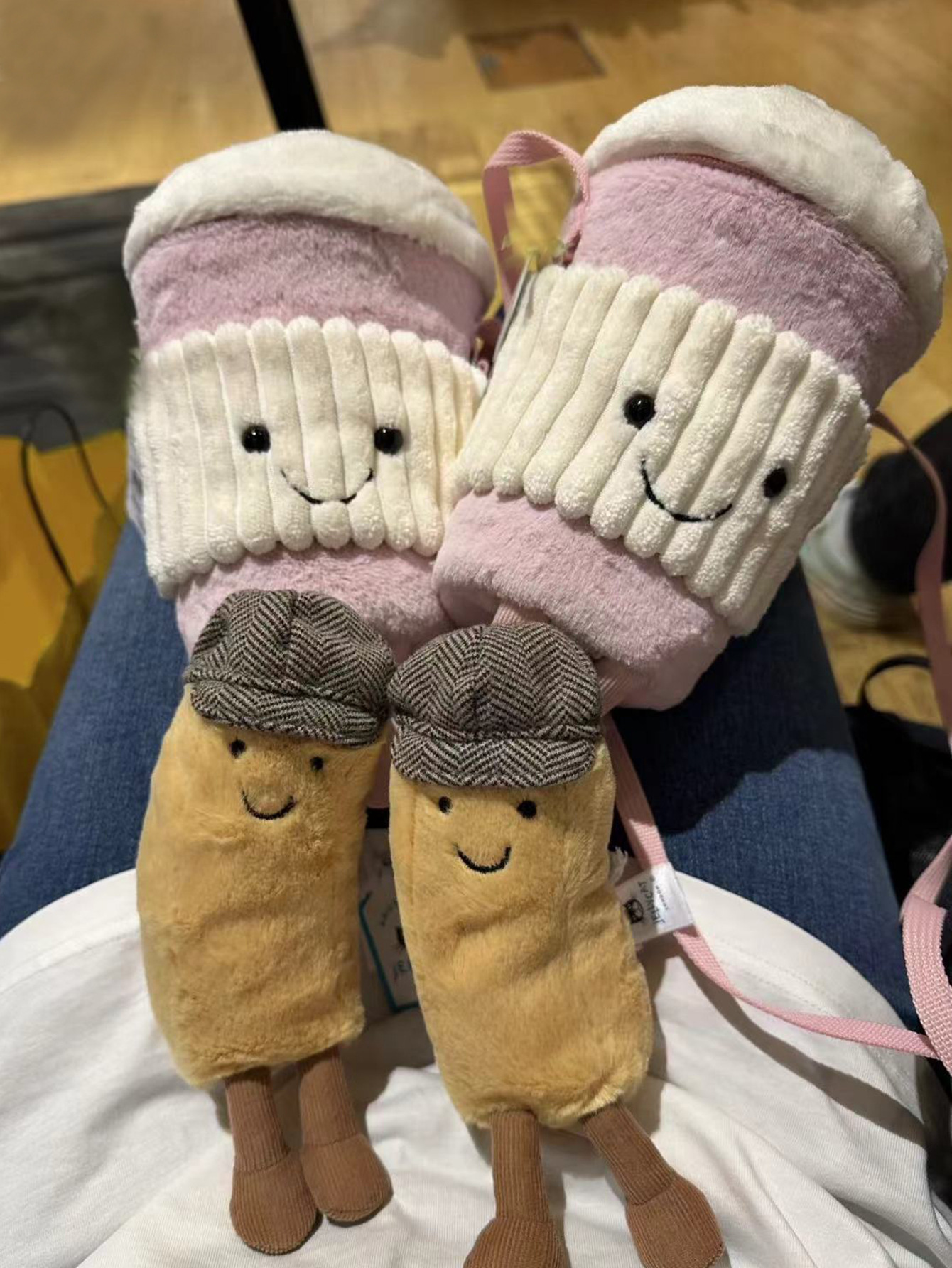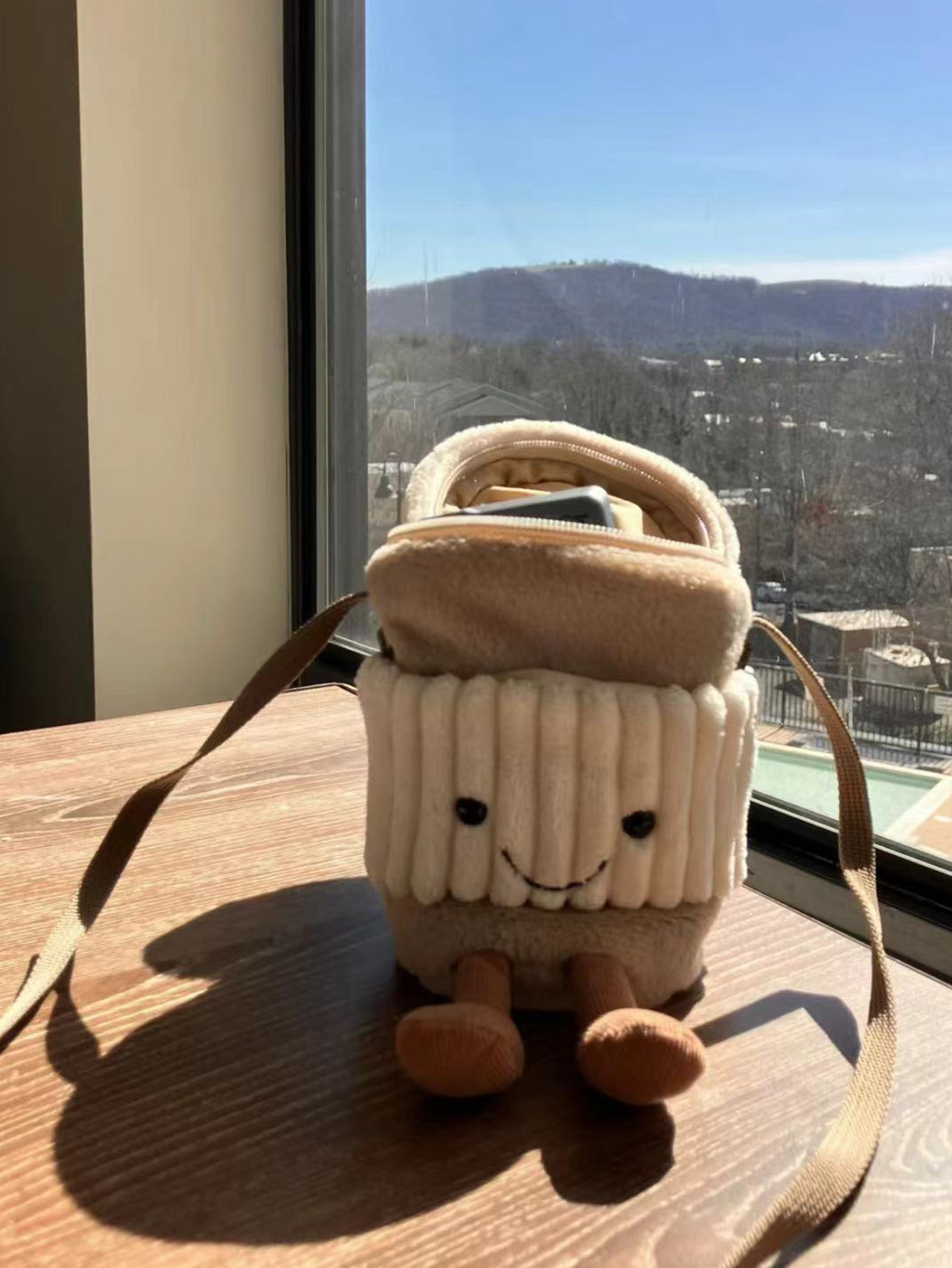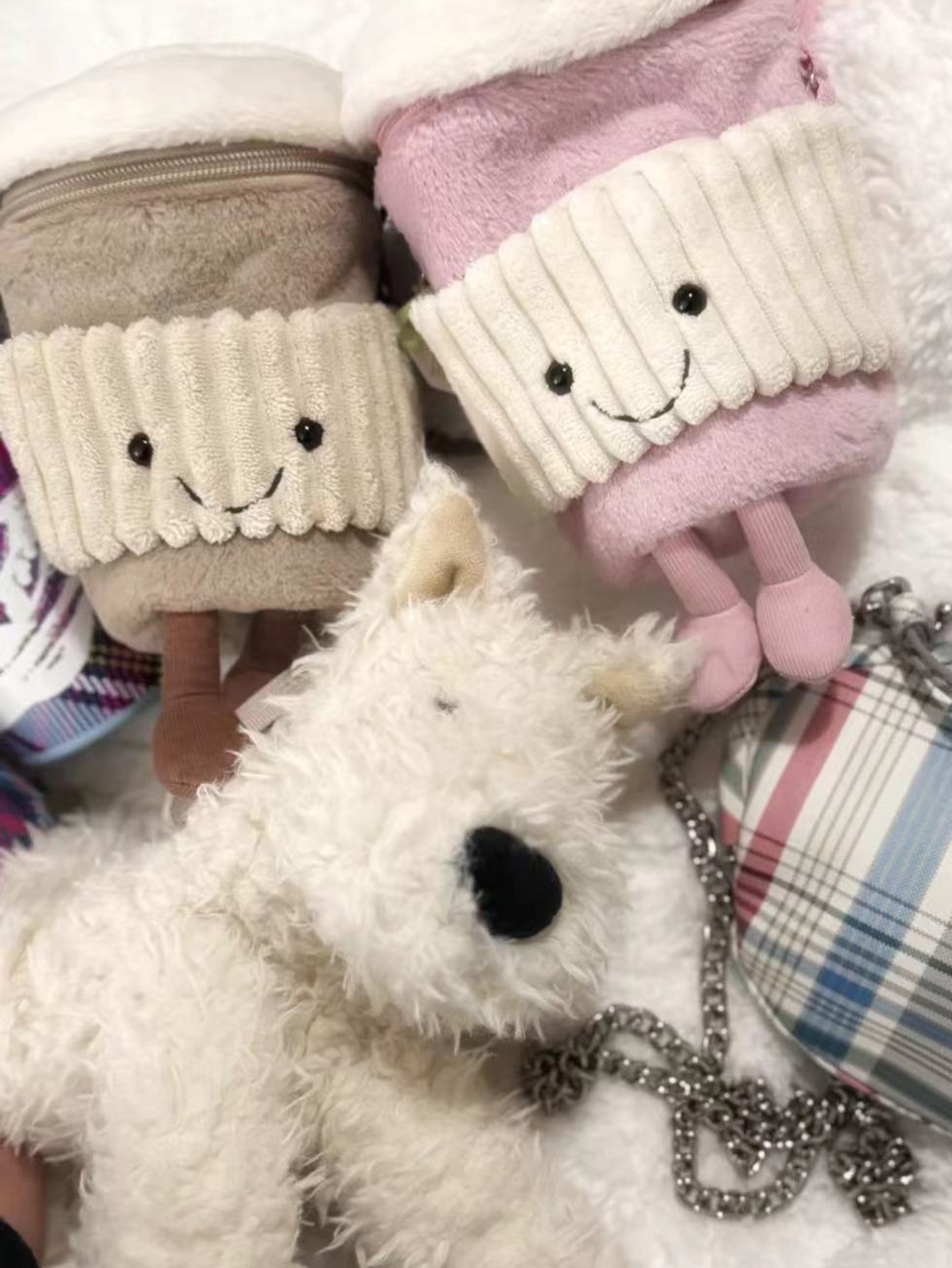 영국 만화 컵 세트 커피 가방 슬렁 여성 가방 선물 봉제 가방 동반 장난감 컵 가방 만화 우유 티백