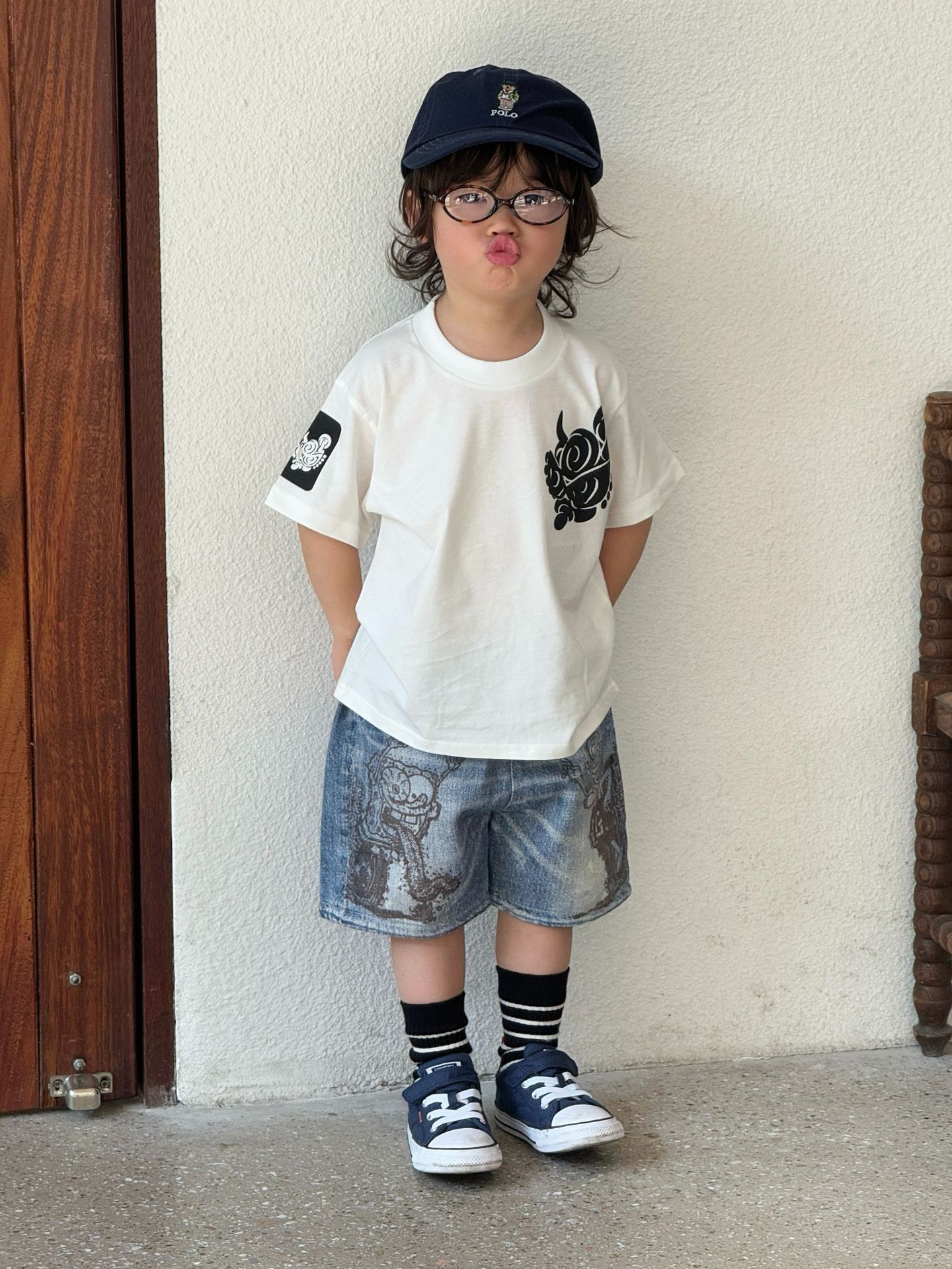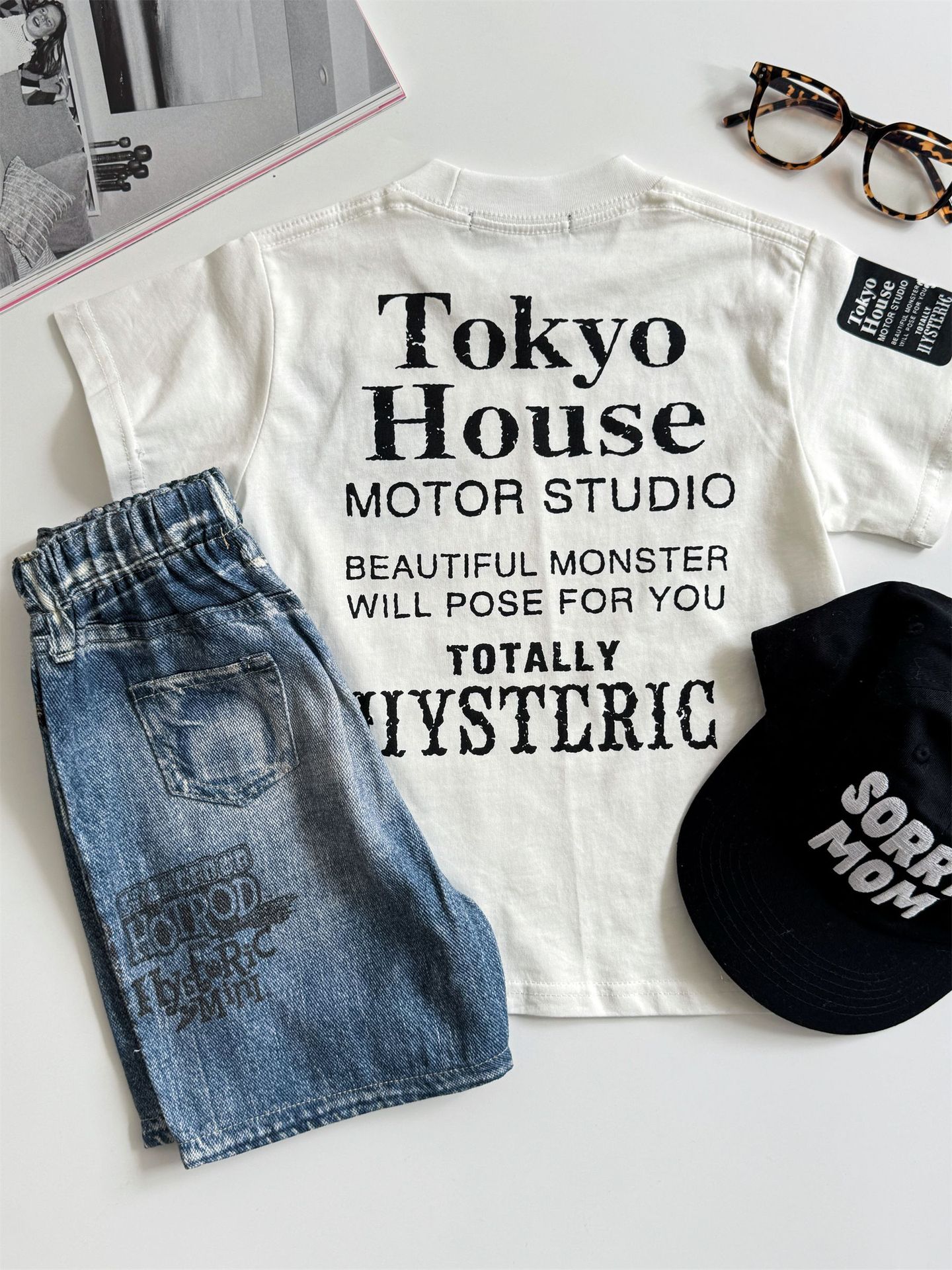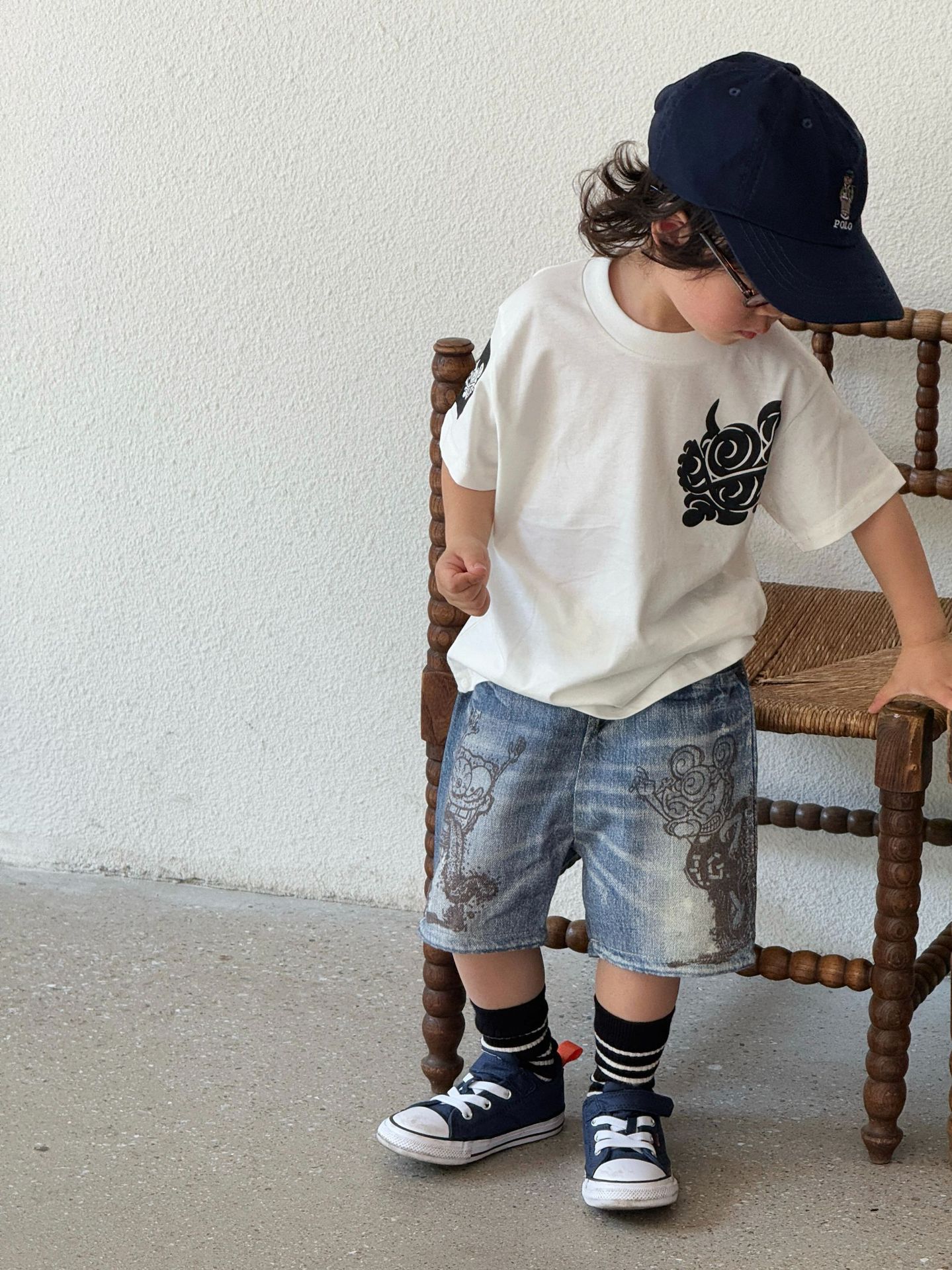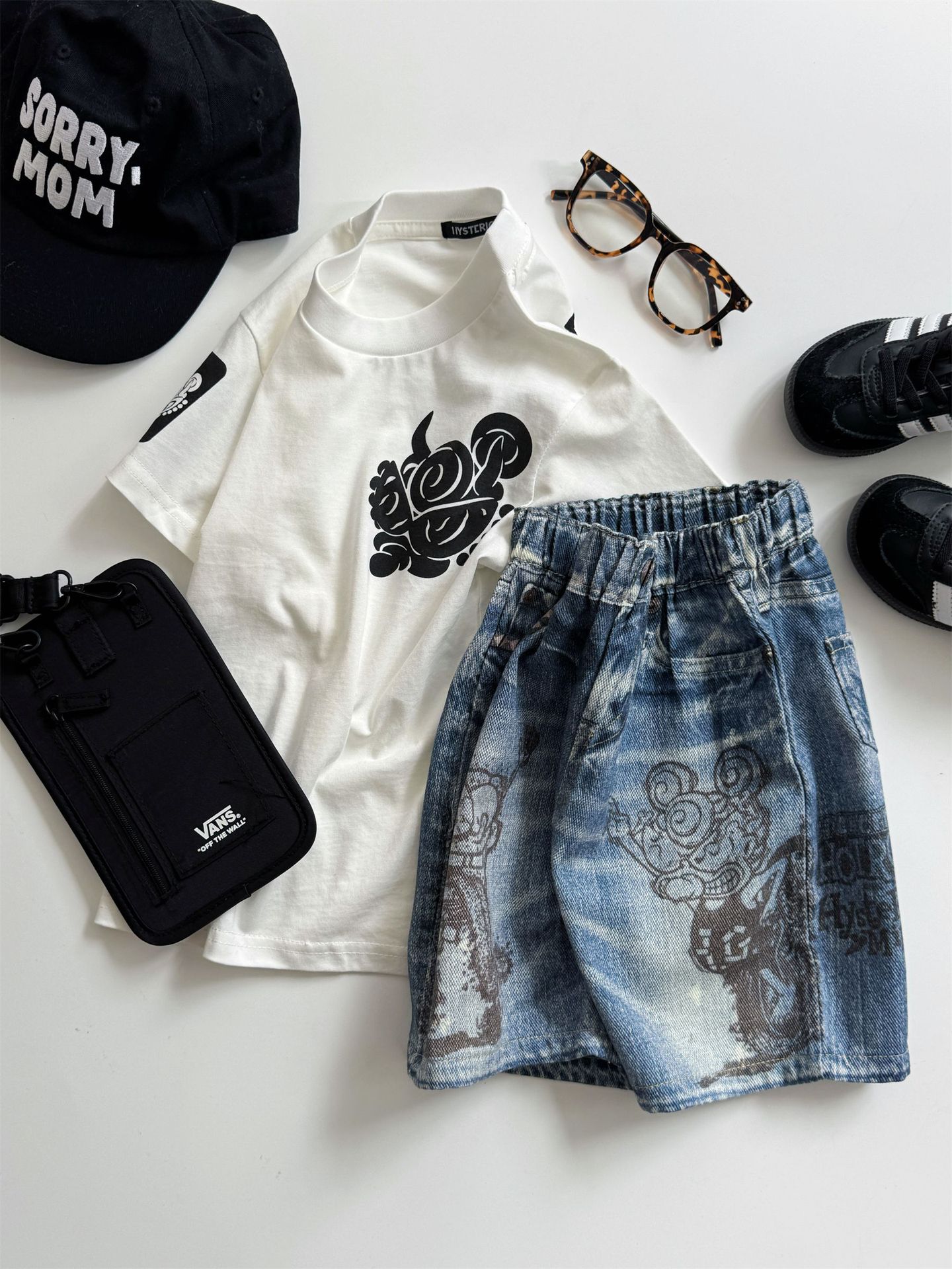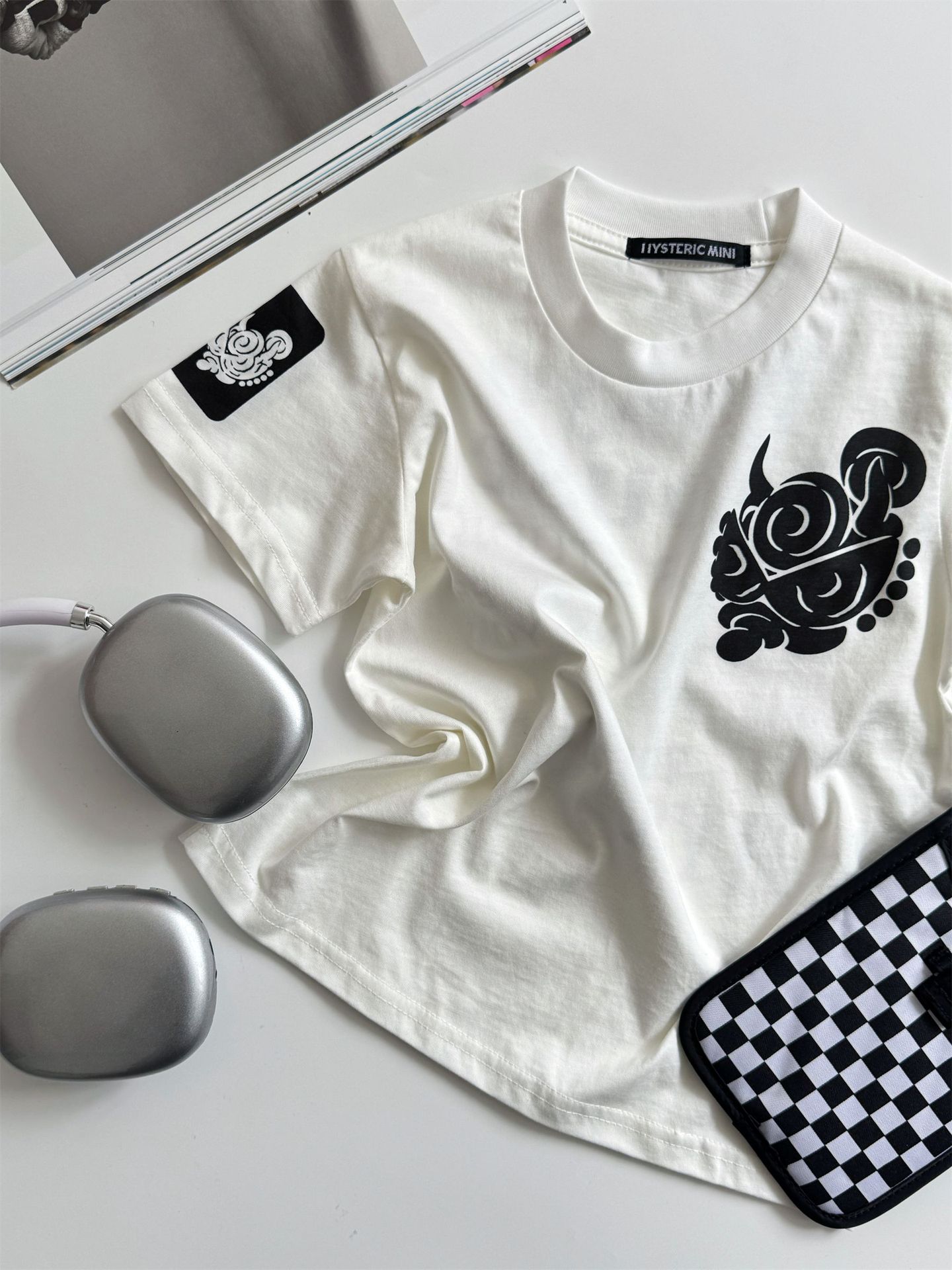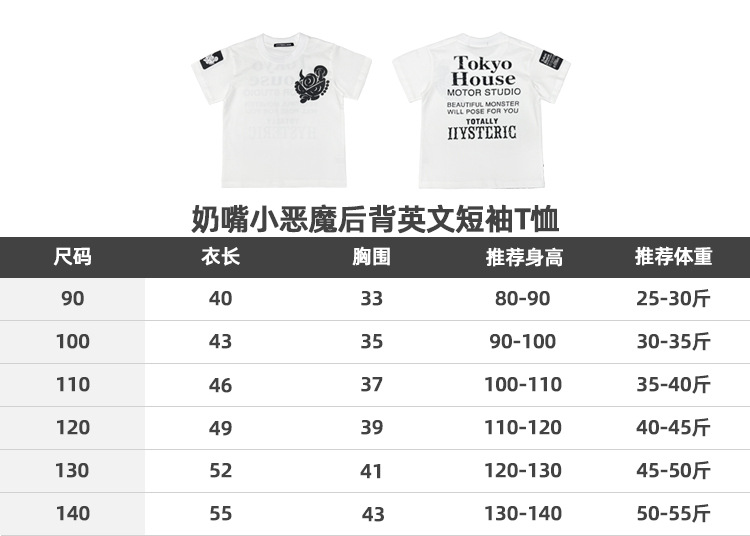 2025 새로운 블랙 슈퍼 조수 브랜드 젖꼭지 악마 다시 영어 반팔 티셔츠 젖꼭지 어린이 재킷 재고스토어 가기