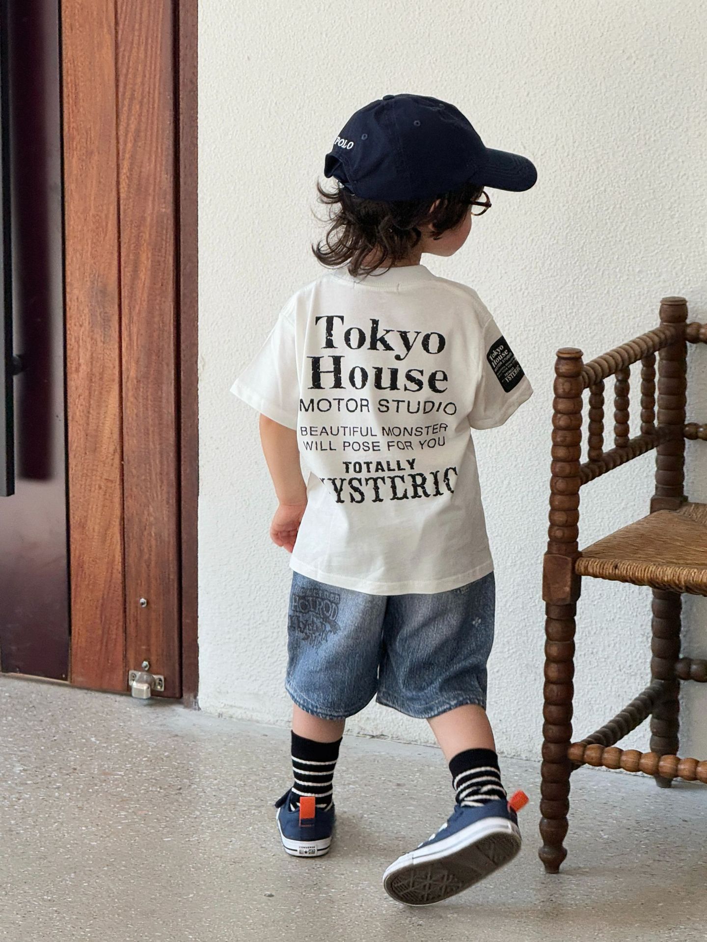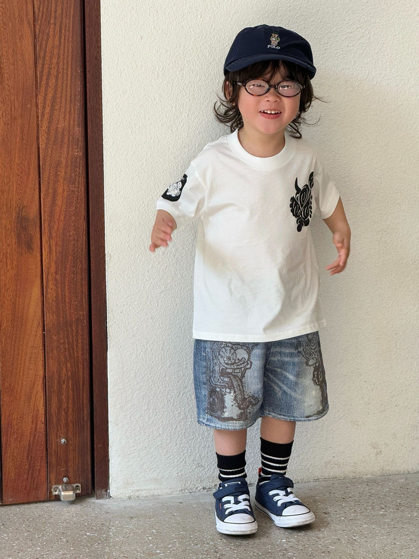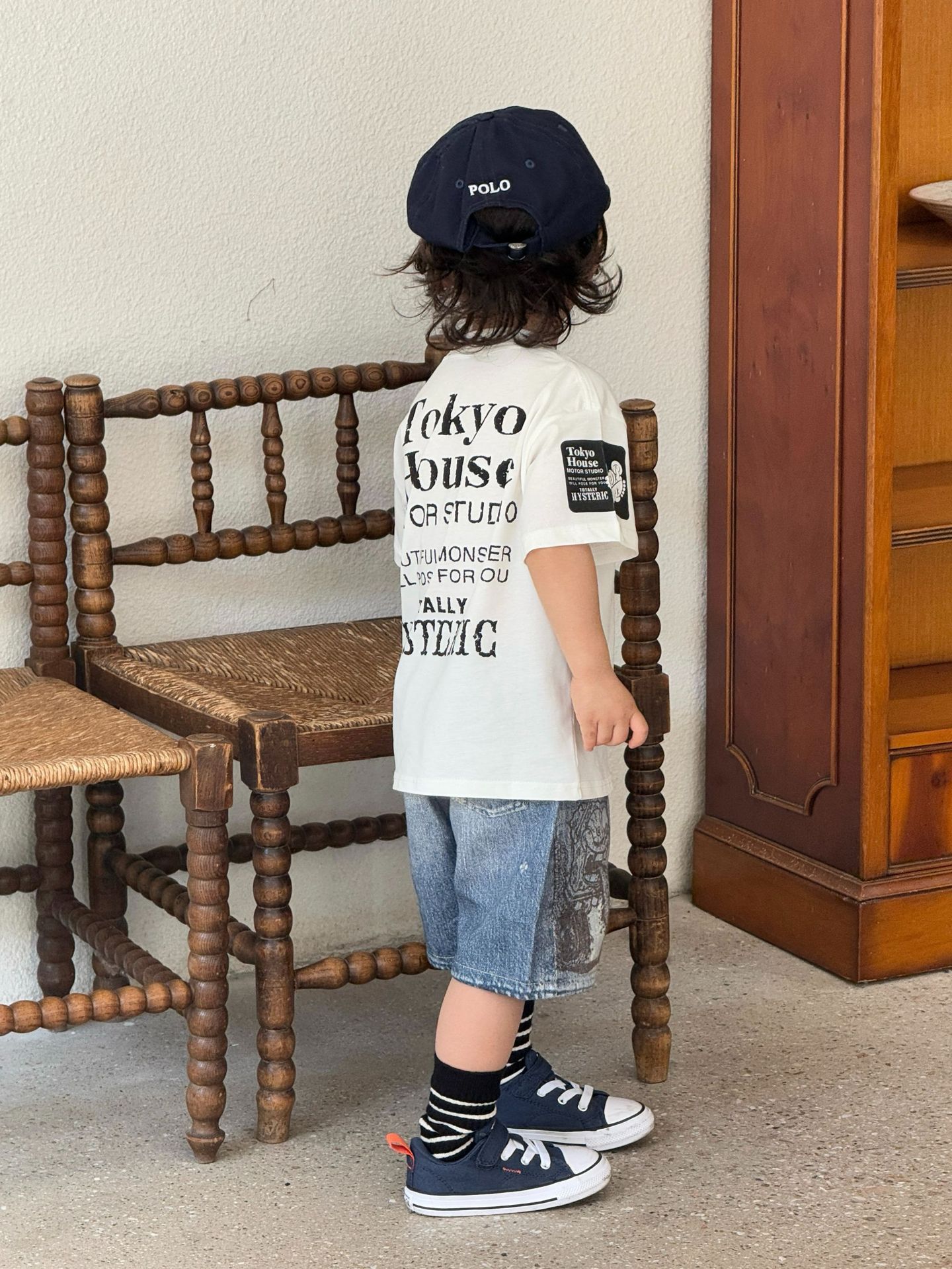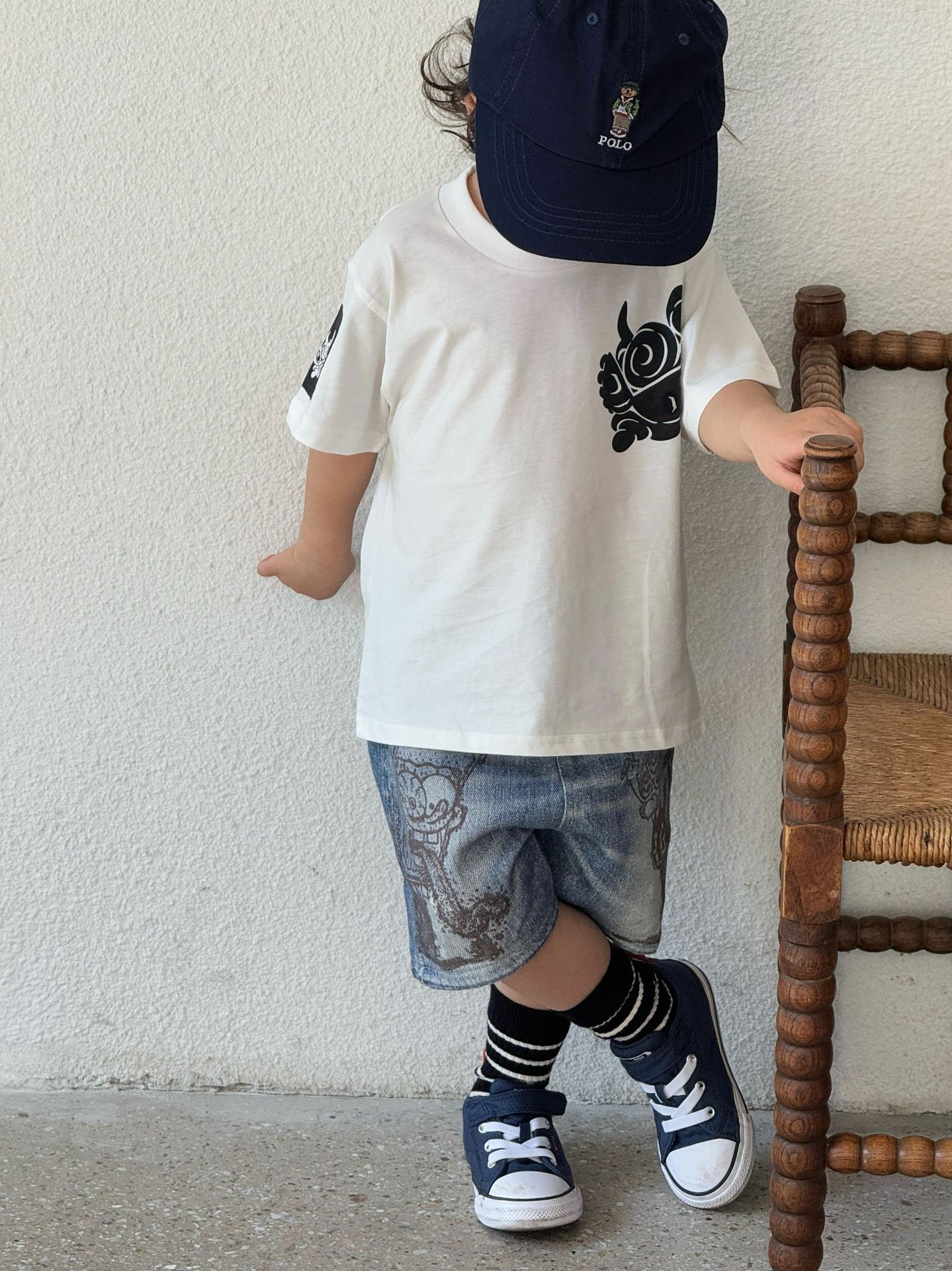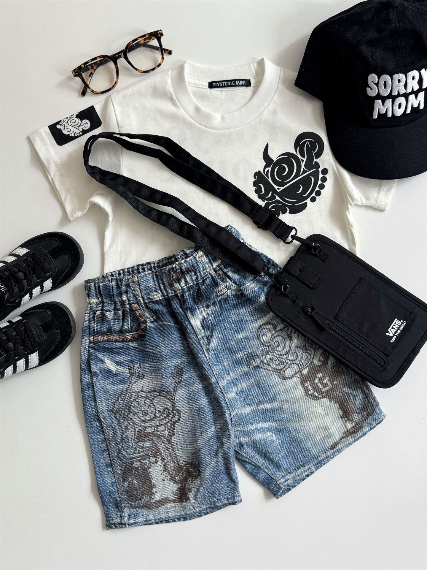 2025 새로운 블랙 슈퍼 조수 브랜드 젖꼭지 악마 다시 영어 반팔 티셔츠 젖꼭지 어린이 재킷 재고스토어 가기