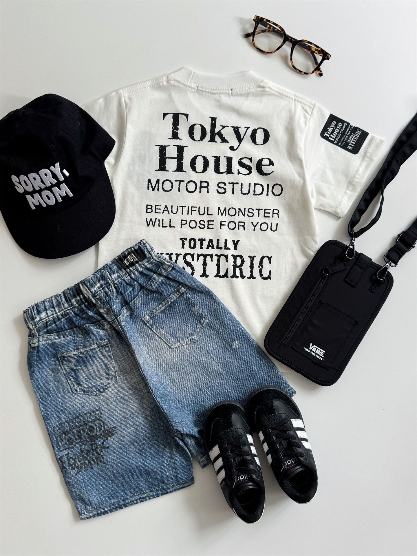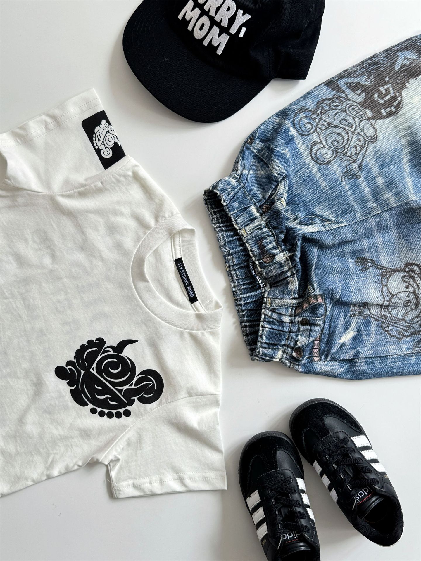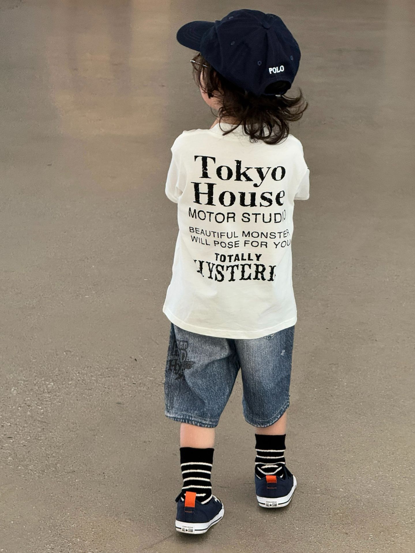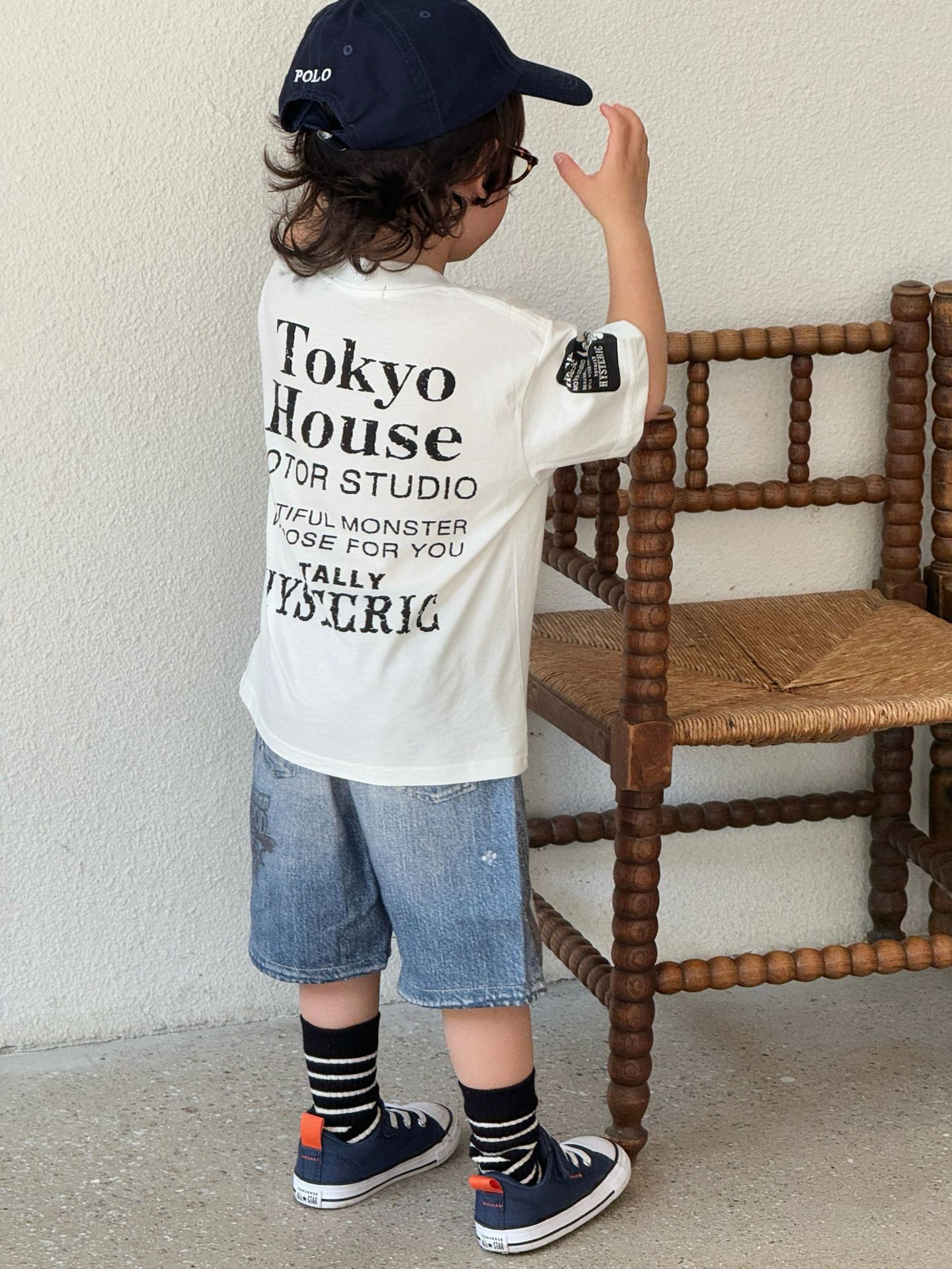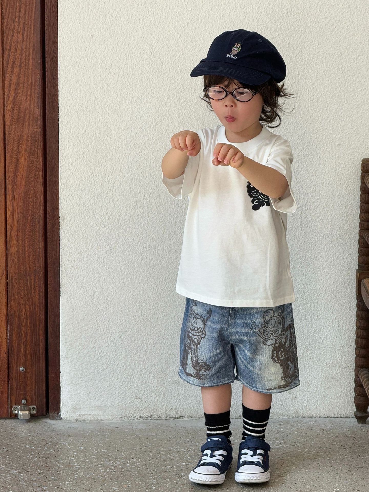 2025 새로운 블랙 슈퍼 조수 브랜드 젖꼭지 악마 다시 영어 반팔 티셔츠 젖꼭지 어린이 재킷 재고스토어 가기