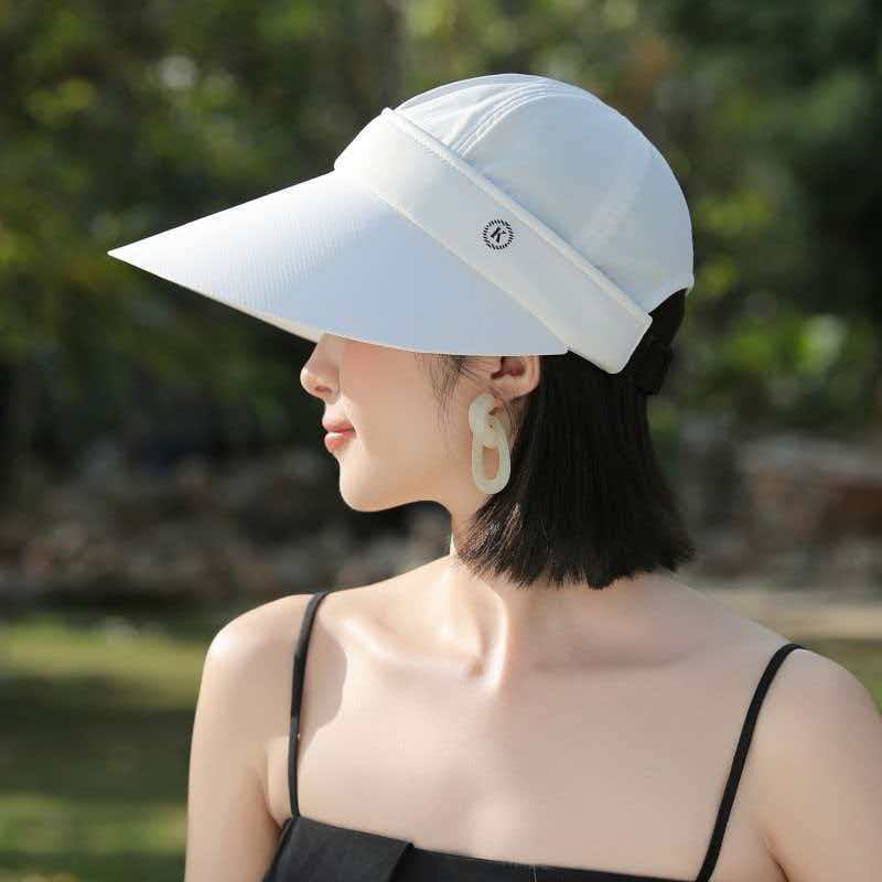 여성용 자외선 차단 모자, 여름 야외 자전거 타기용, 큰 챙, 얼굴 가리개, 접이식, 아이스 실크, 통기성, 오픈탑, 낚시 모자