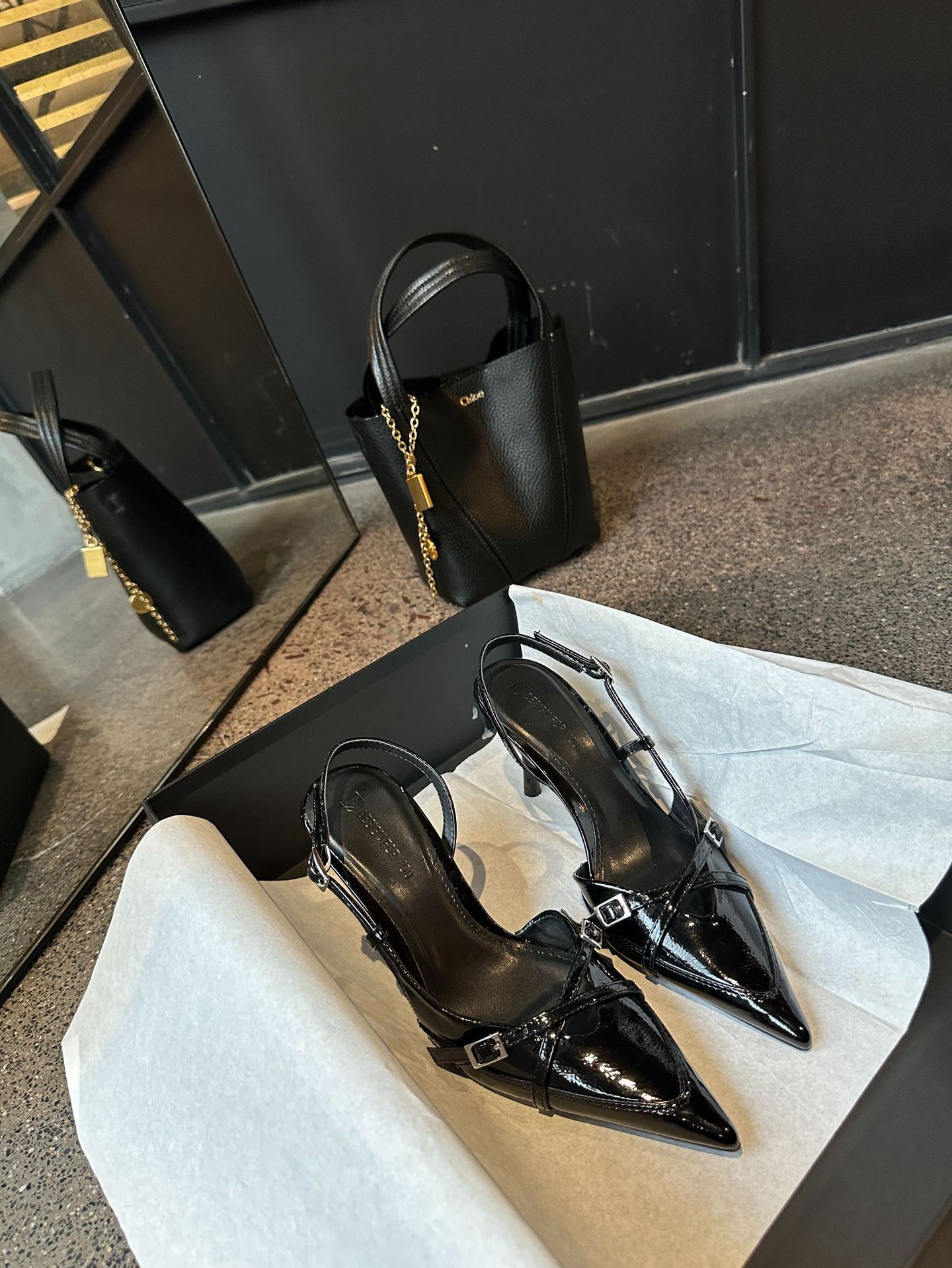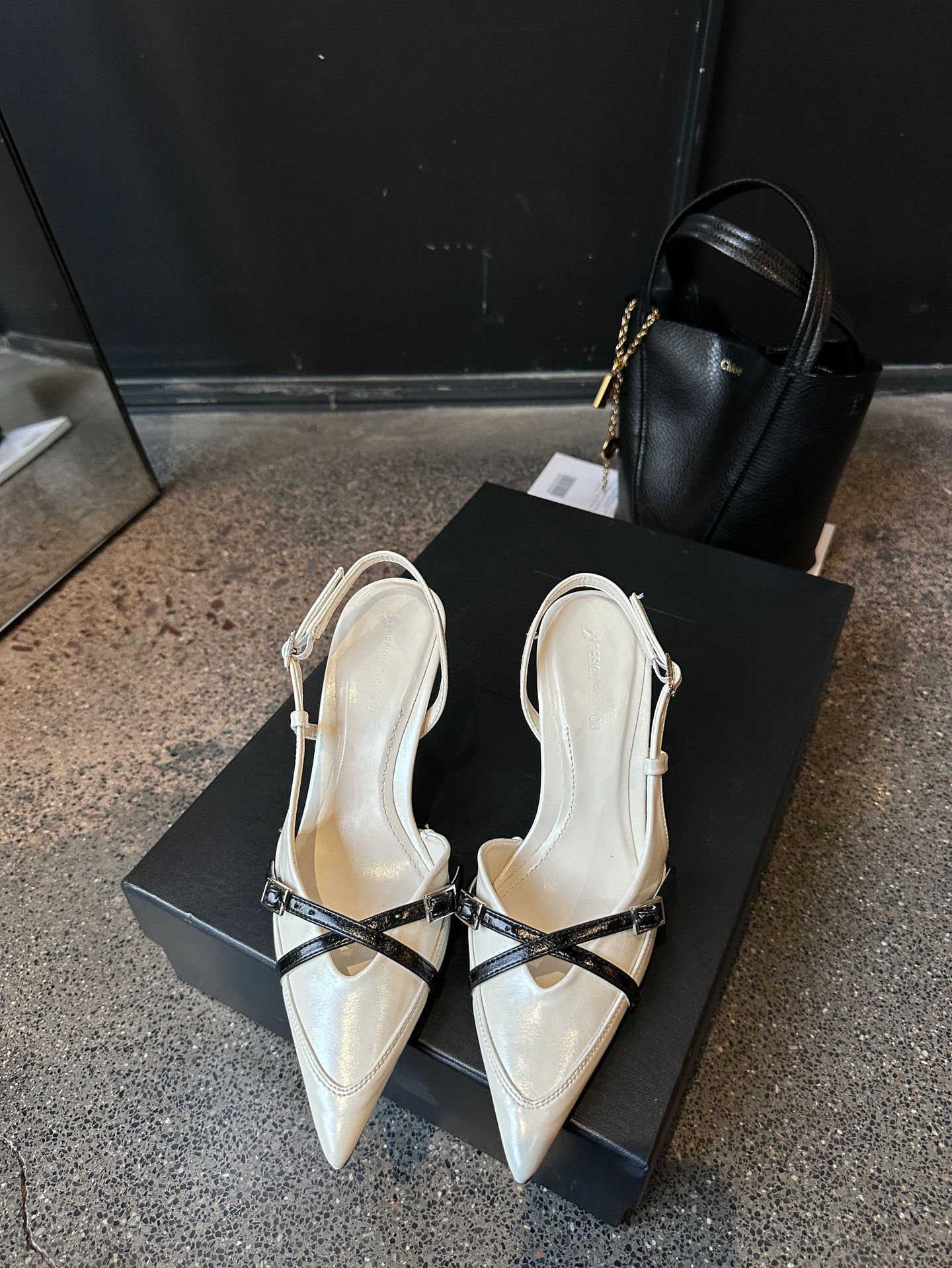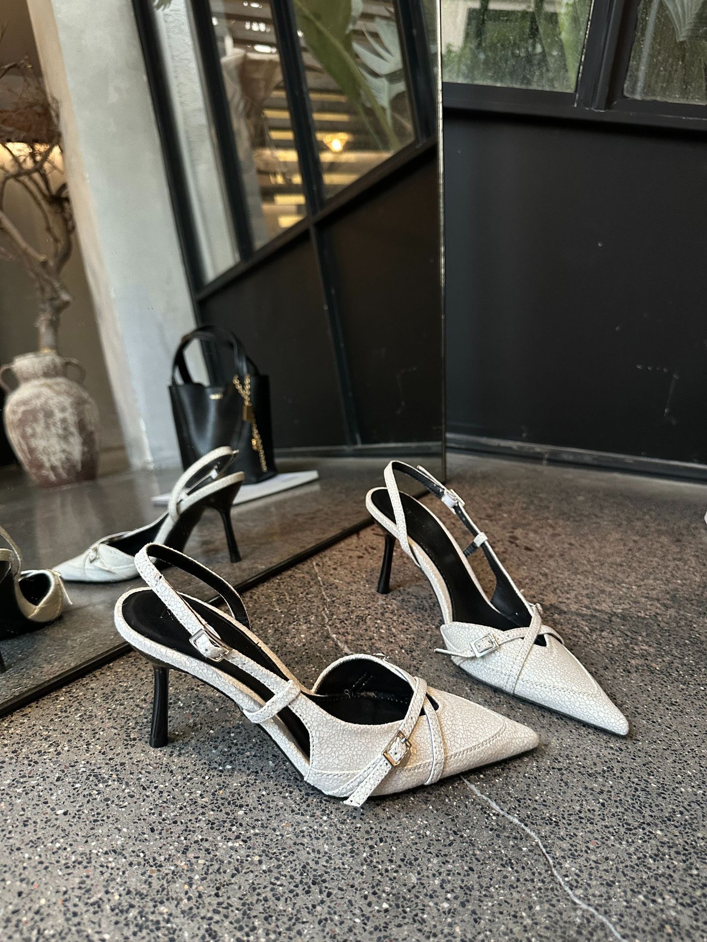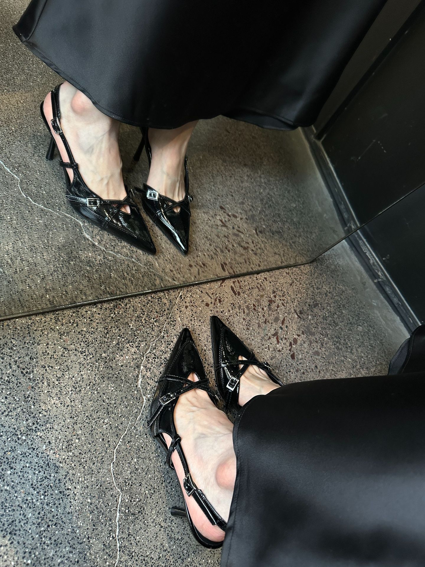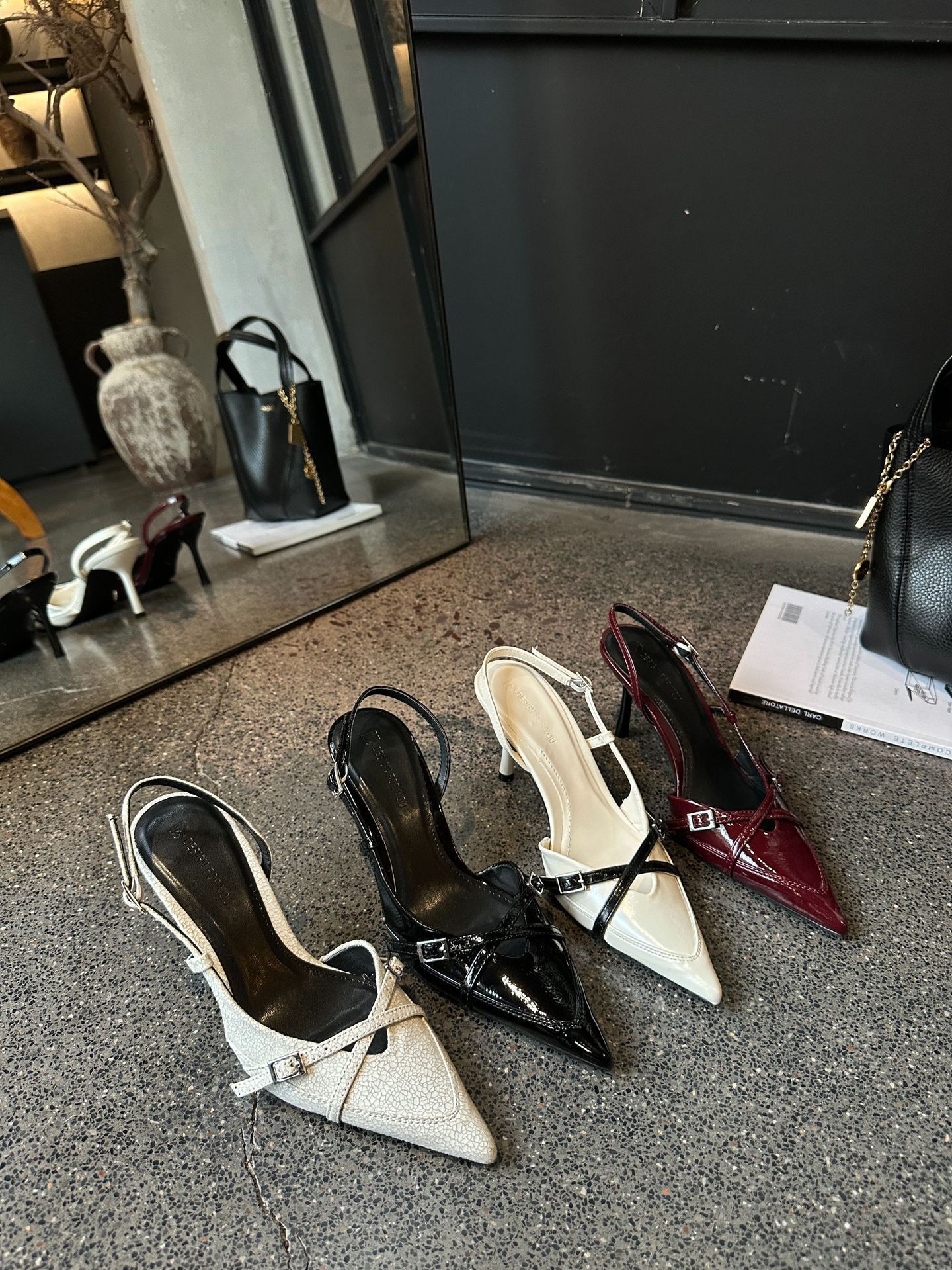 【세금 미포함】2025년 봄/여름 신상 여성용 신발 크로스 버클 장식 뾰족코 하이힐 샌들 캐주얼스토어 가기