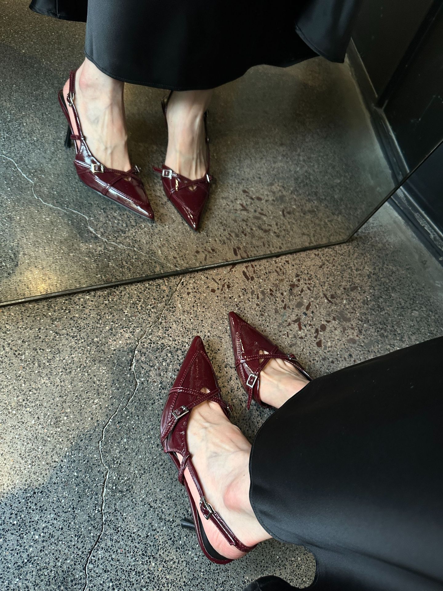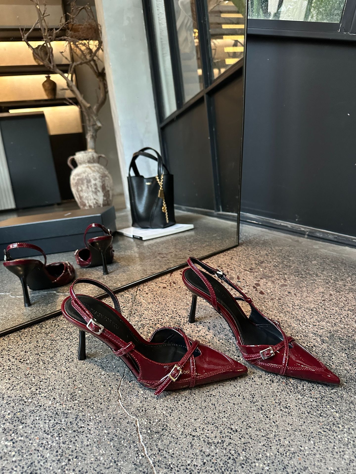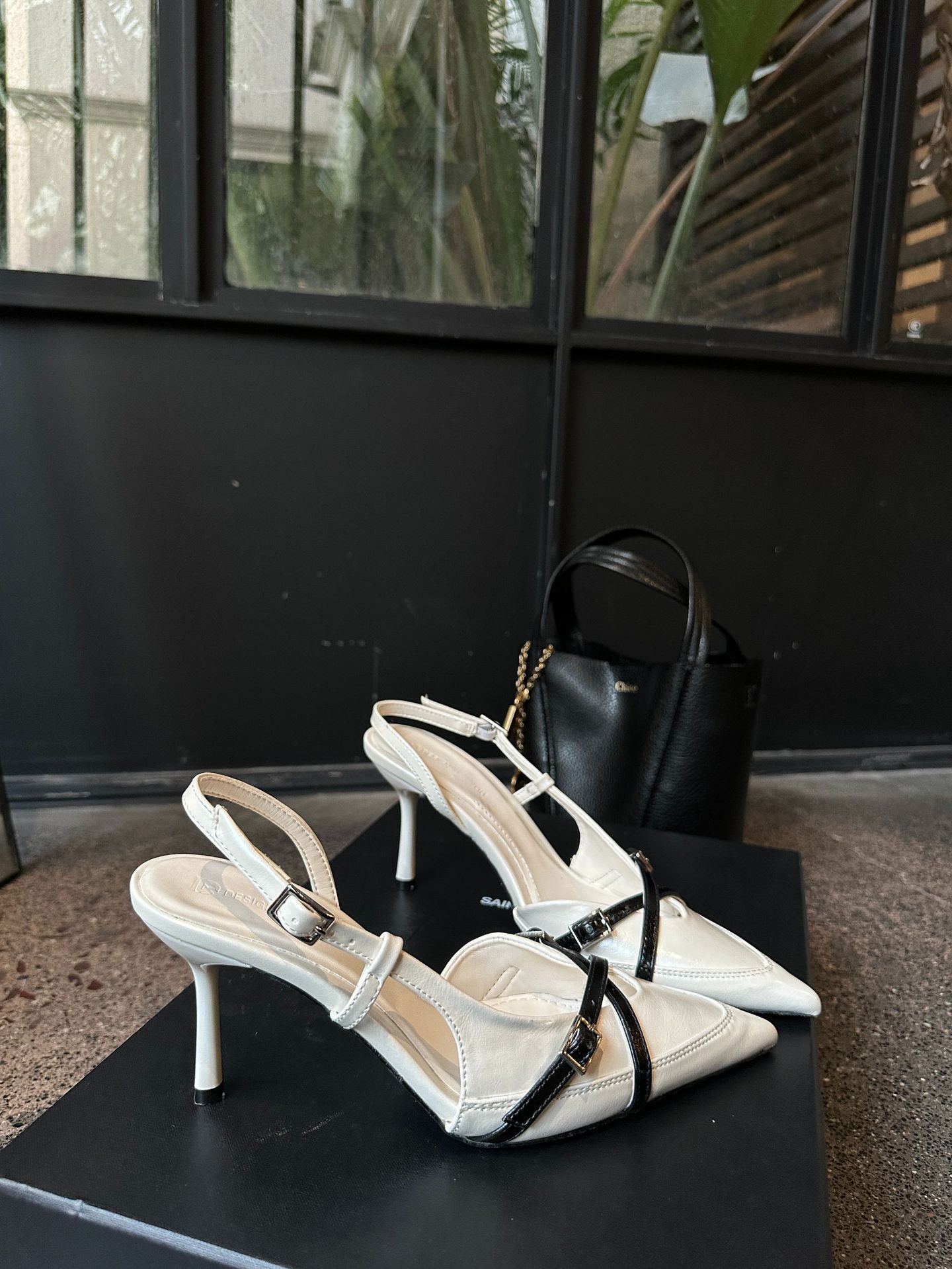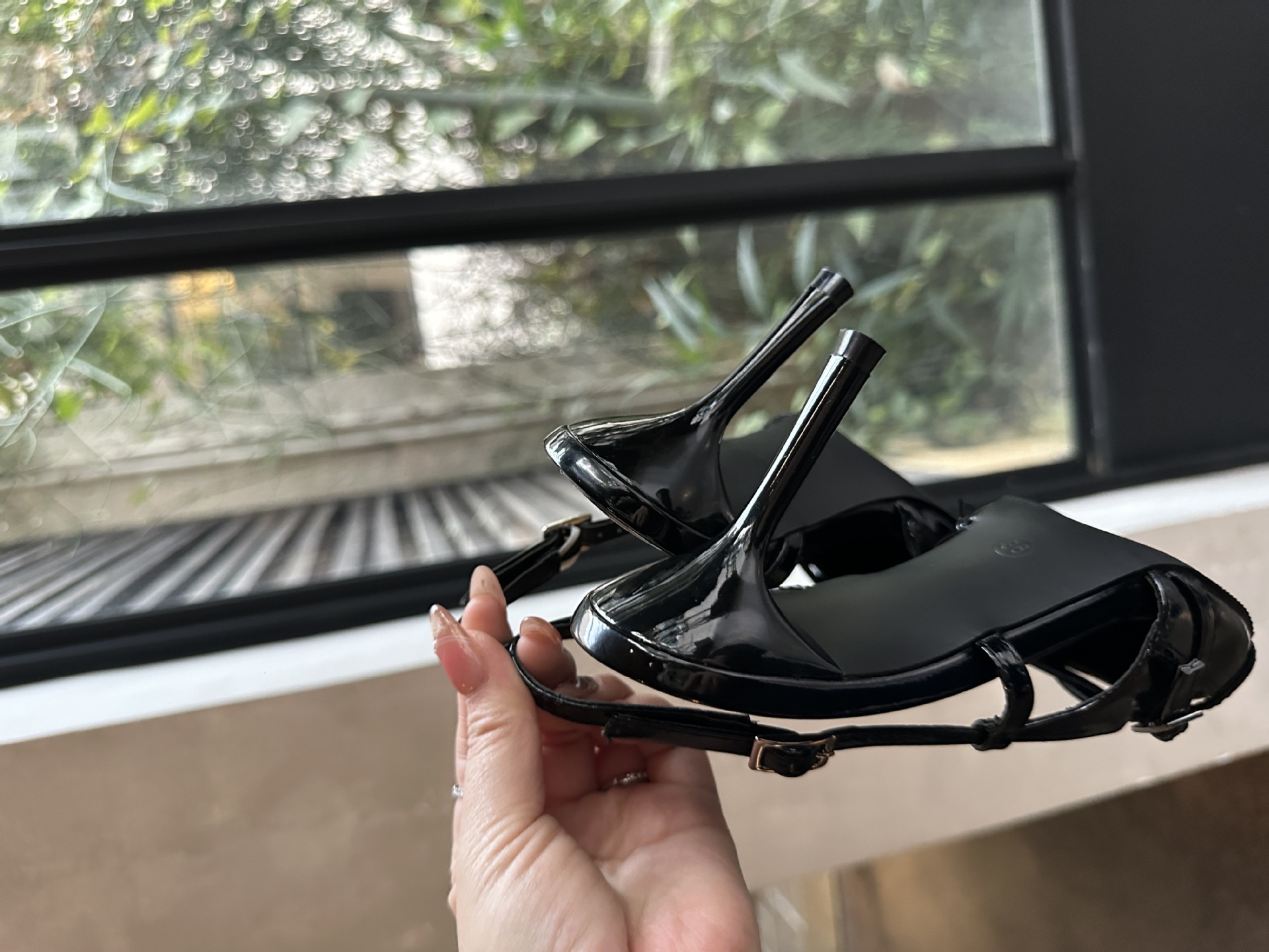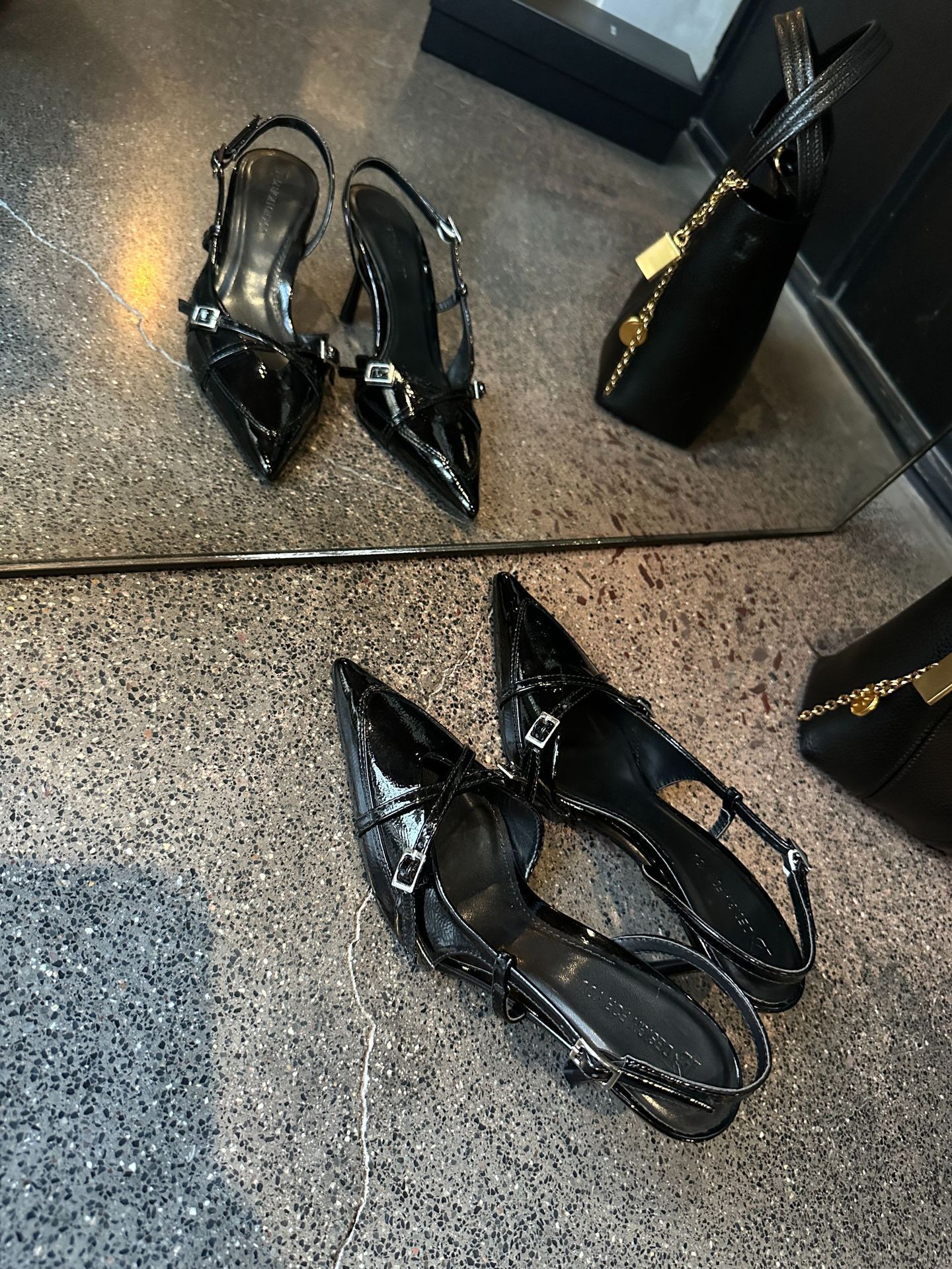 【세금 미포함】2025년 봄/여름 신상 여성용 신발 크로스 버클 장식 뾰족코 하이힐 샌들 캐주얼스토어 가기