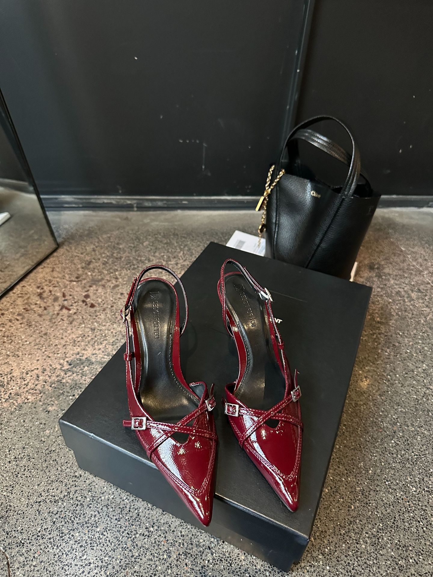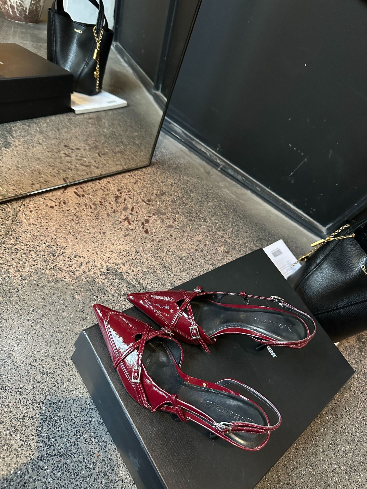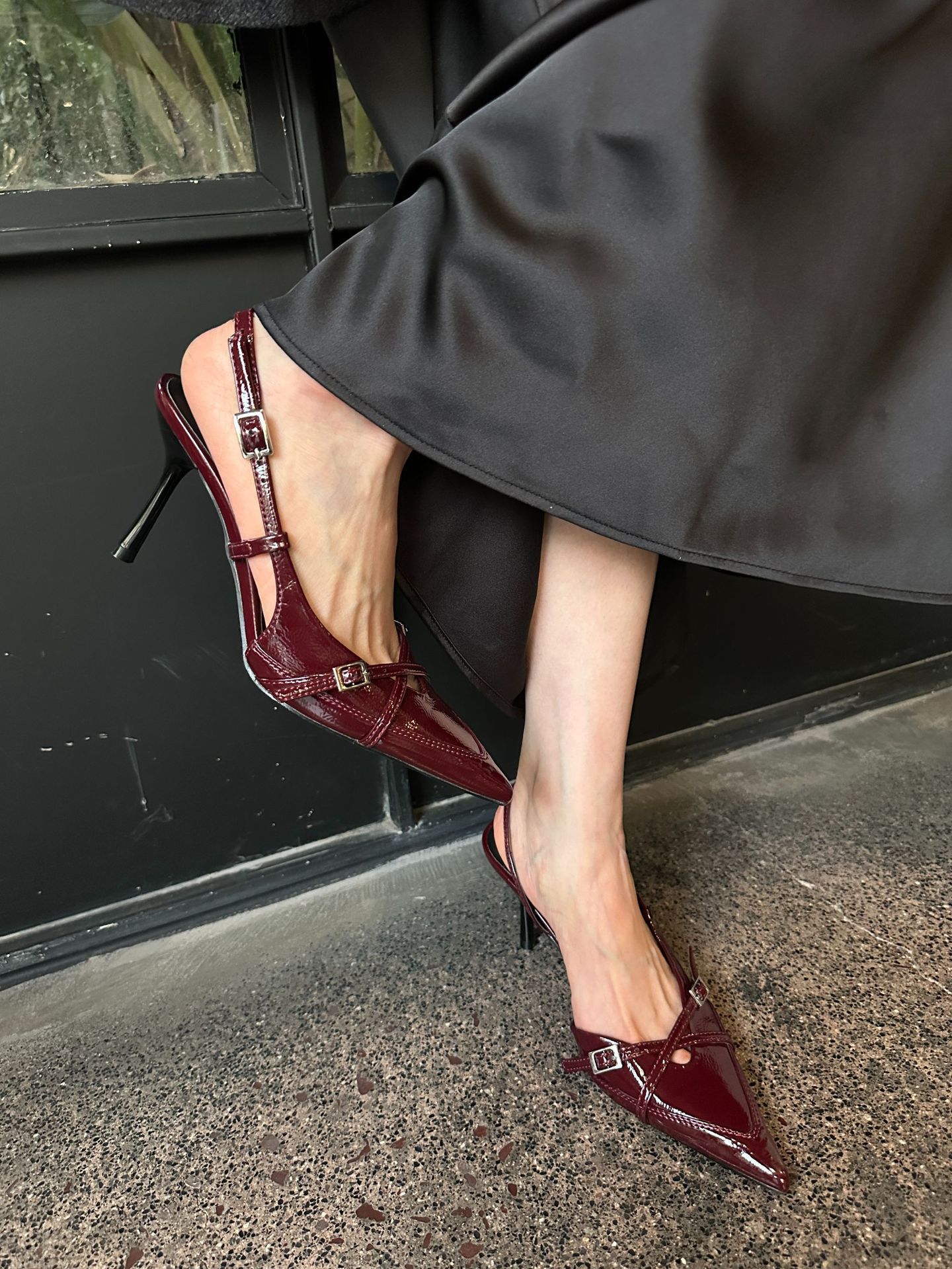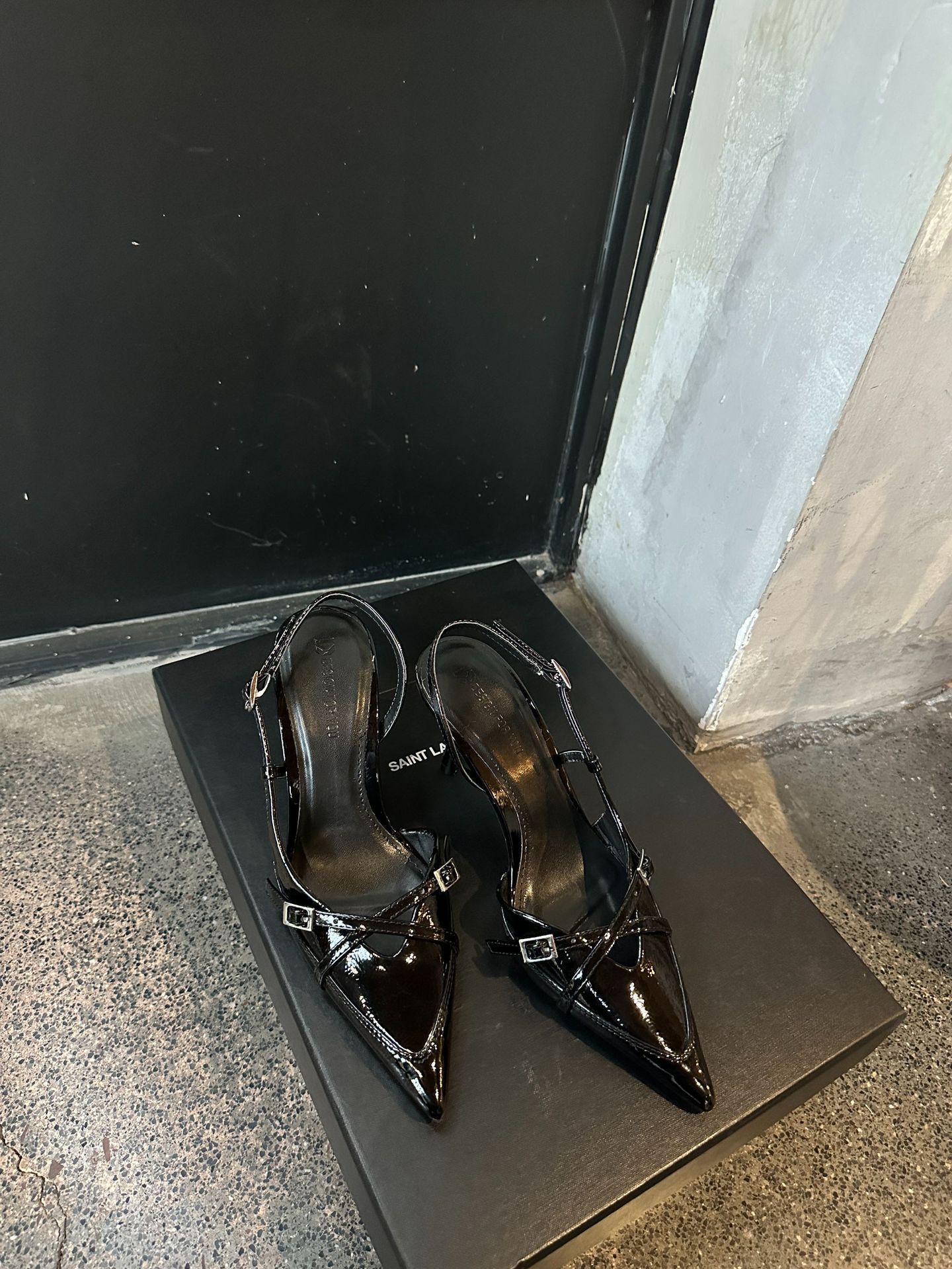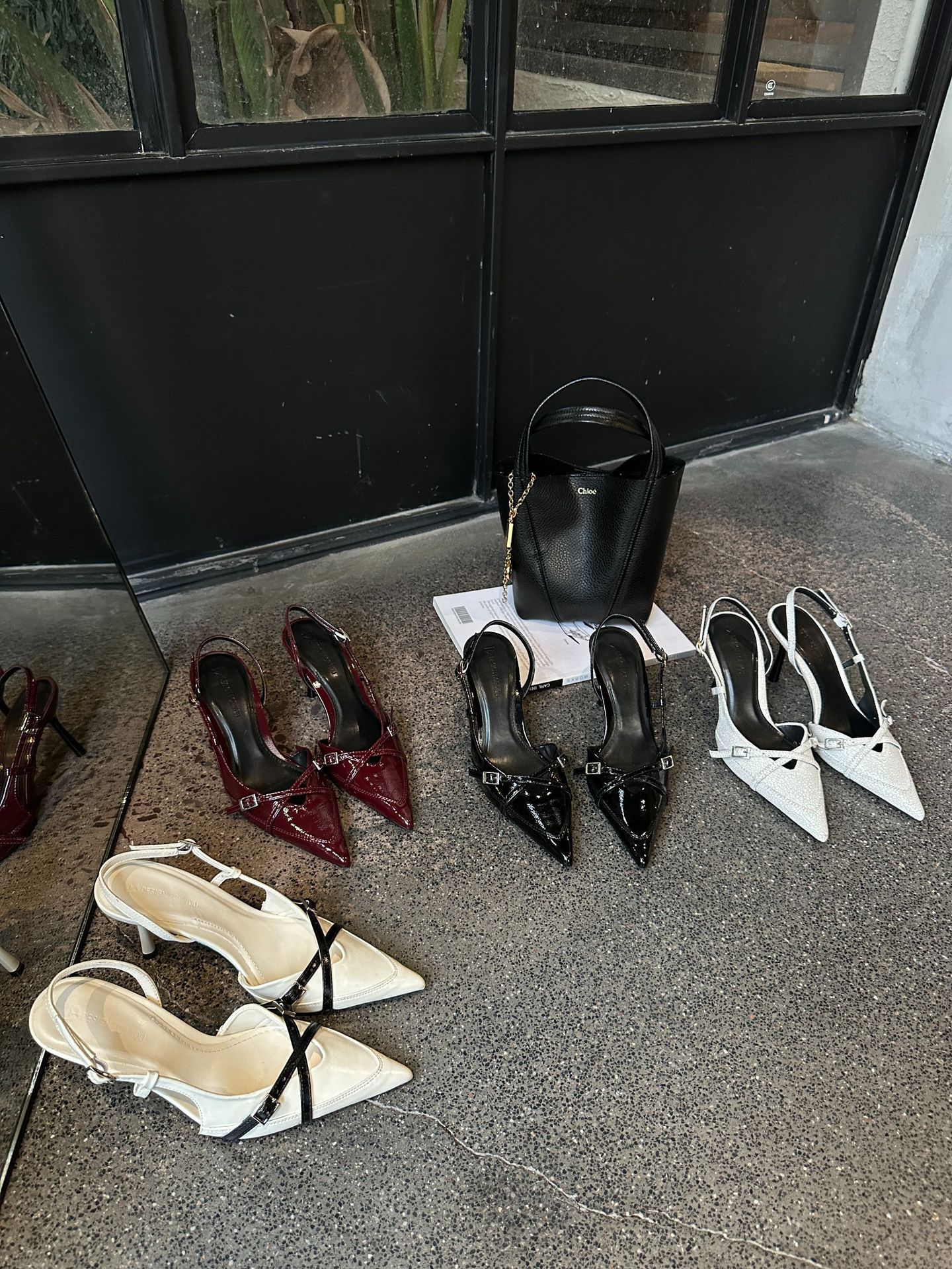 【세금 미포함】2025년 봄/여름 신상 여성용 신발 크로스 버클 장식 뾰족코 하이힐 샌들 캐주얼스토어 가기
