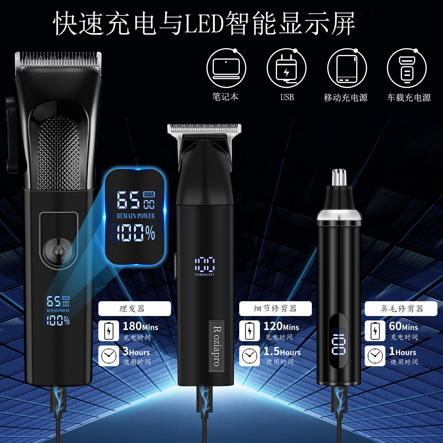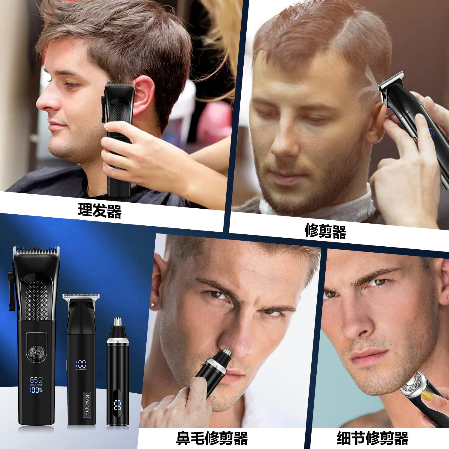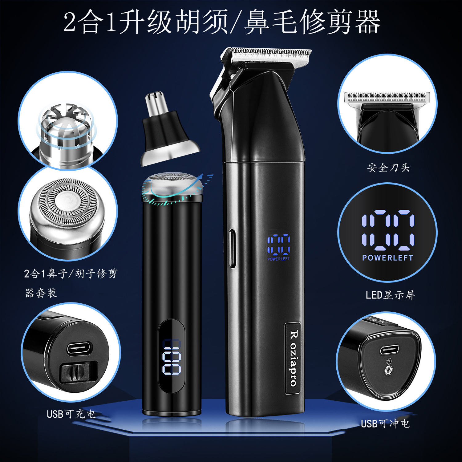 남성 전문 이발사 전단 세트 정밀 면도기 충전식 이발사 전단 전기 코 헤어 커터스토어 가기