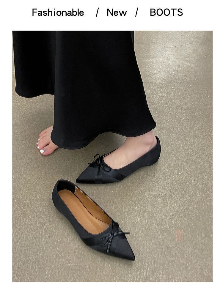 부드러운 싱글 레이어 신발 이브닝 슈즈 2024 가을 및 겨울 새로운 올 매치 패셔너블 내높이 올리기 뾰족한 새틴 원피스 여성용 신발