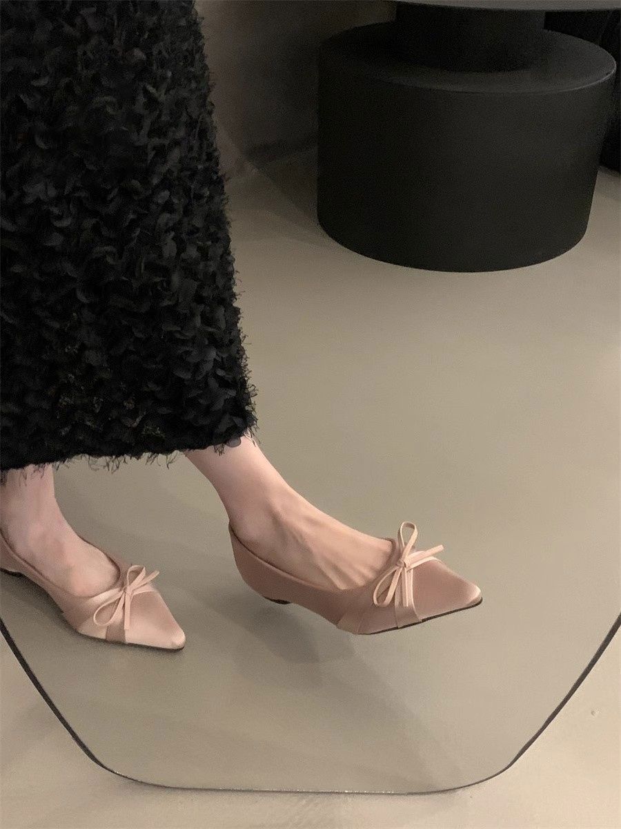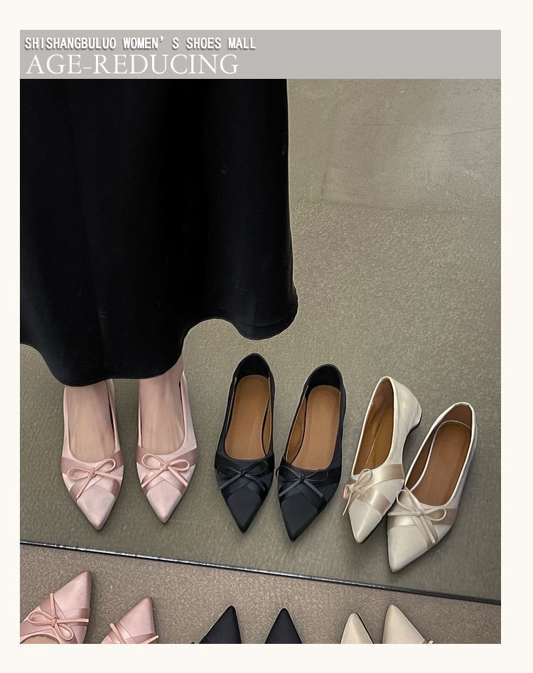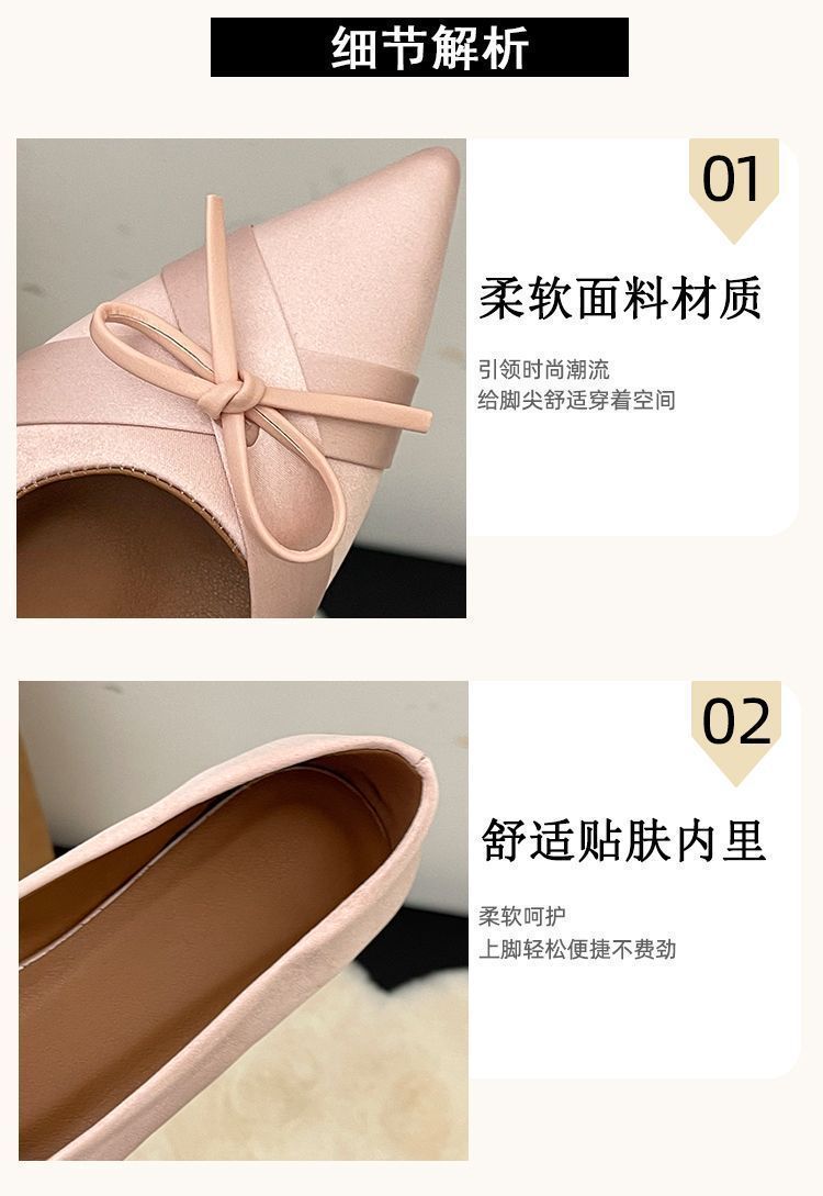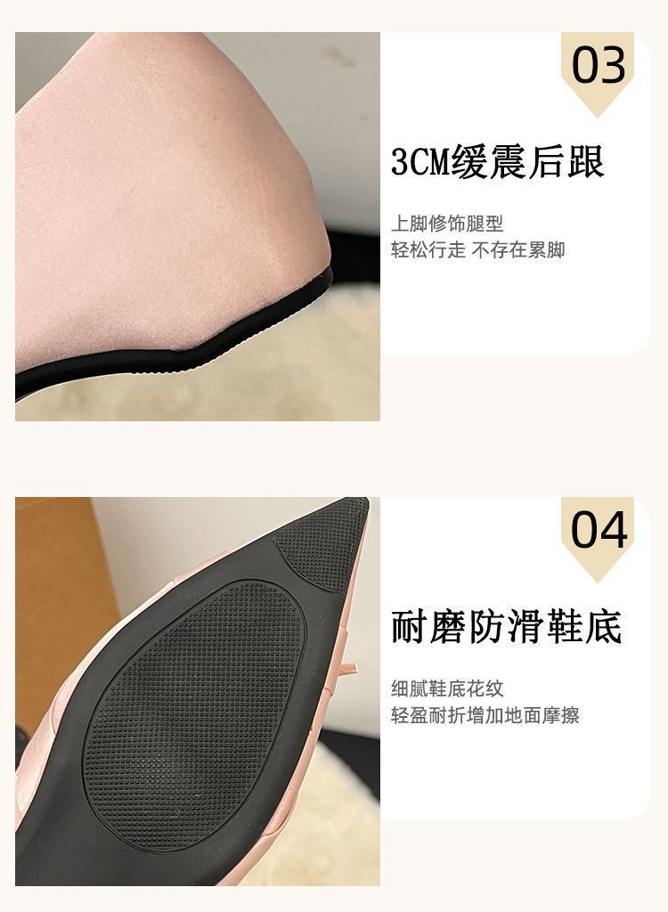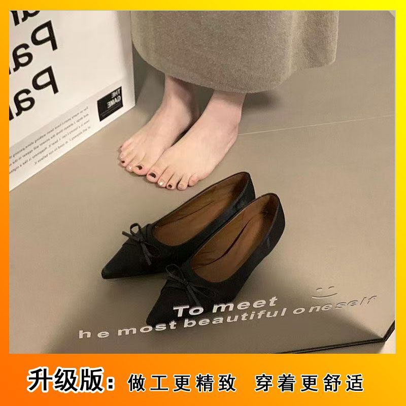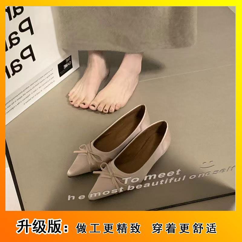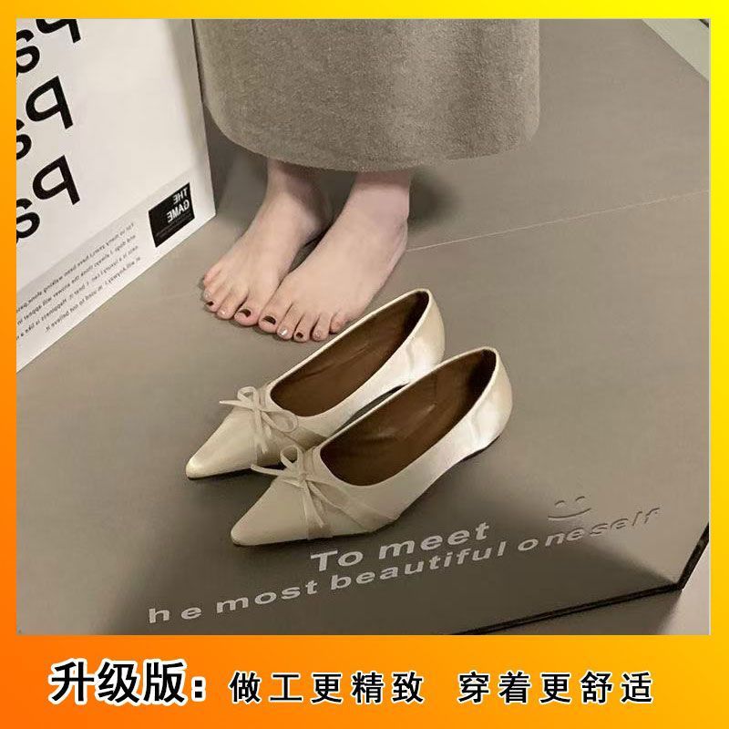 부드러운 싱글 레이어 신발 이브닝 슈즈 2024 가을 및 겨울 새로운 올 매치 패셔너블 내높이 올리기 뾰족한 새틴 원피스 여성용 신발스토어 가기