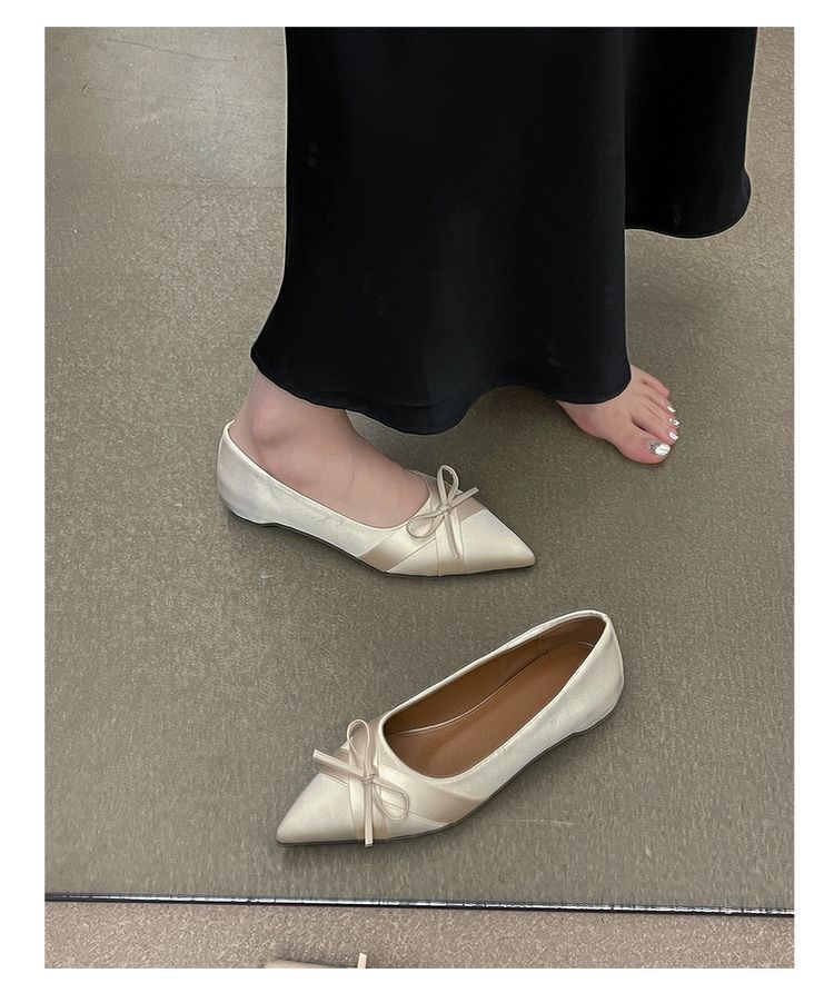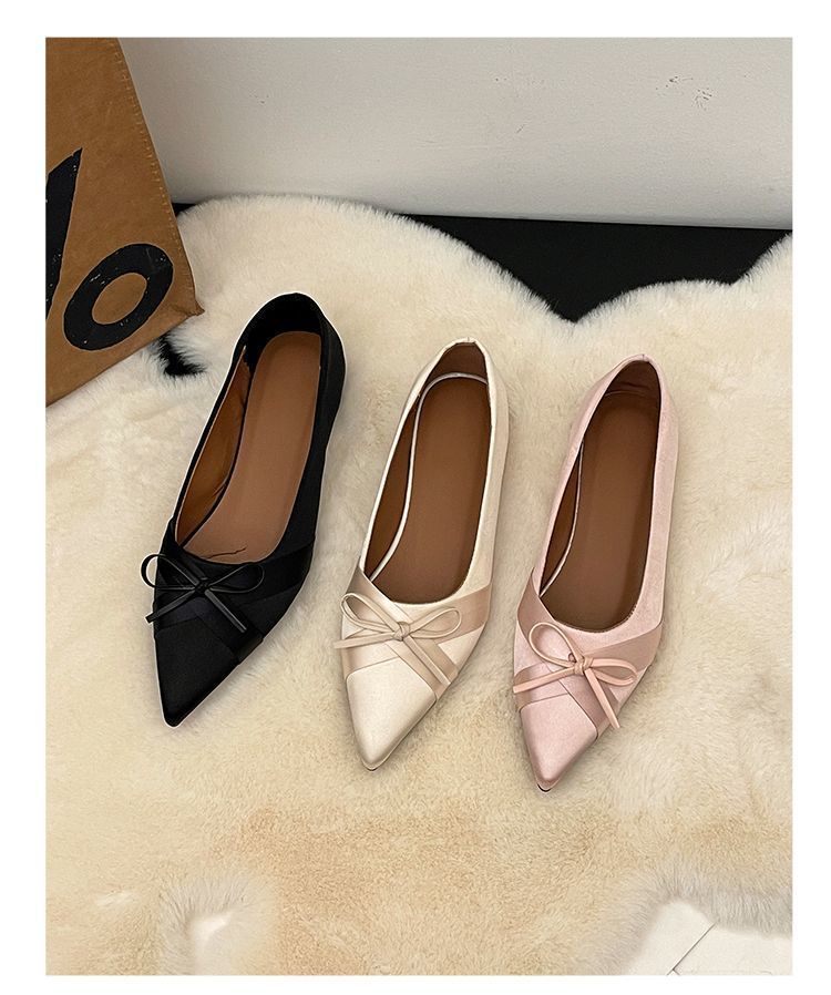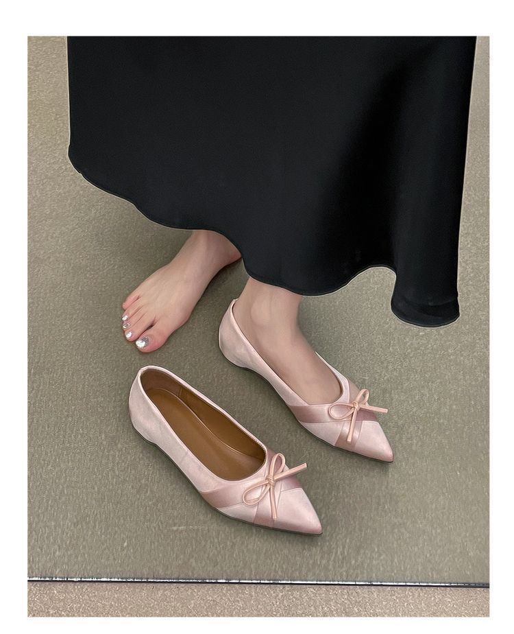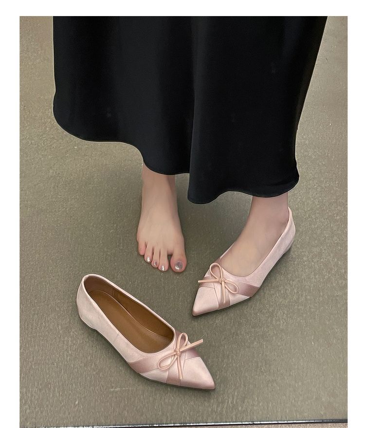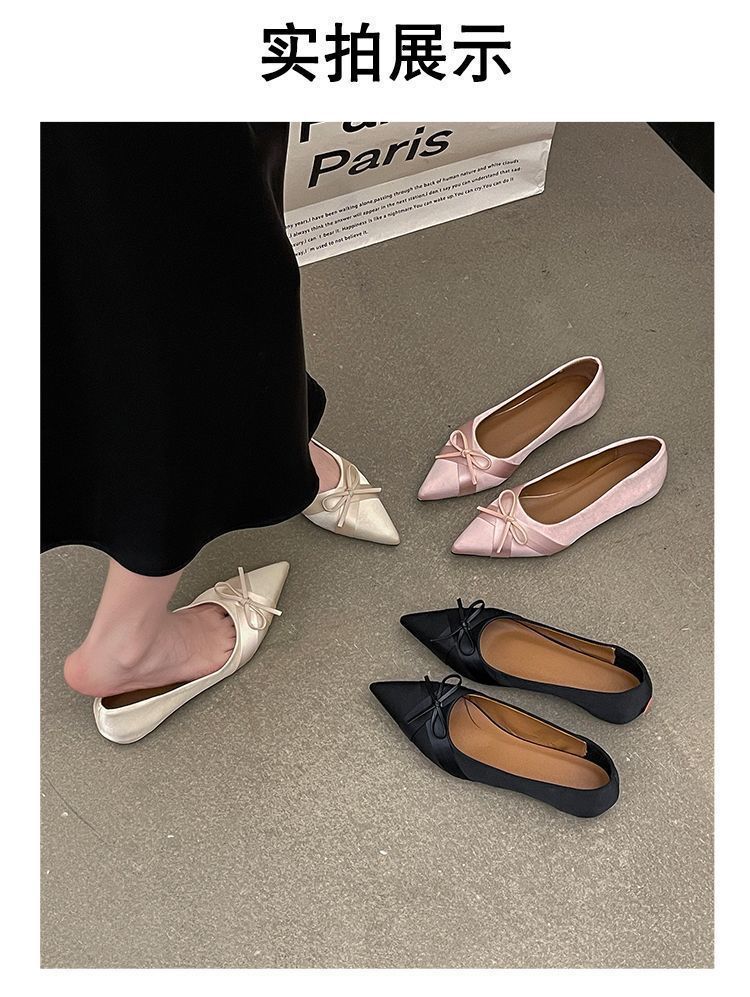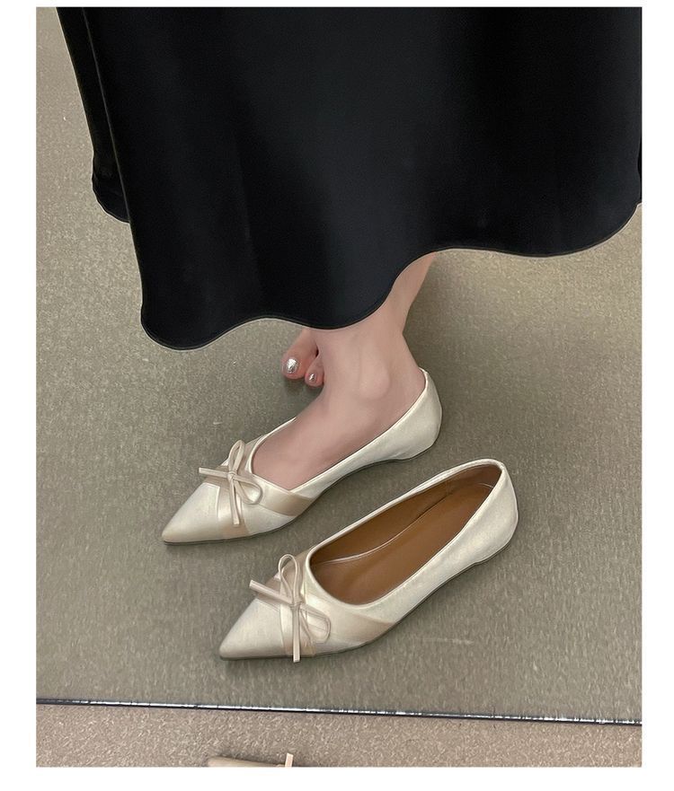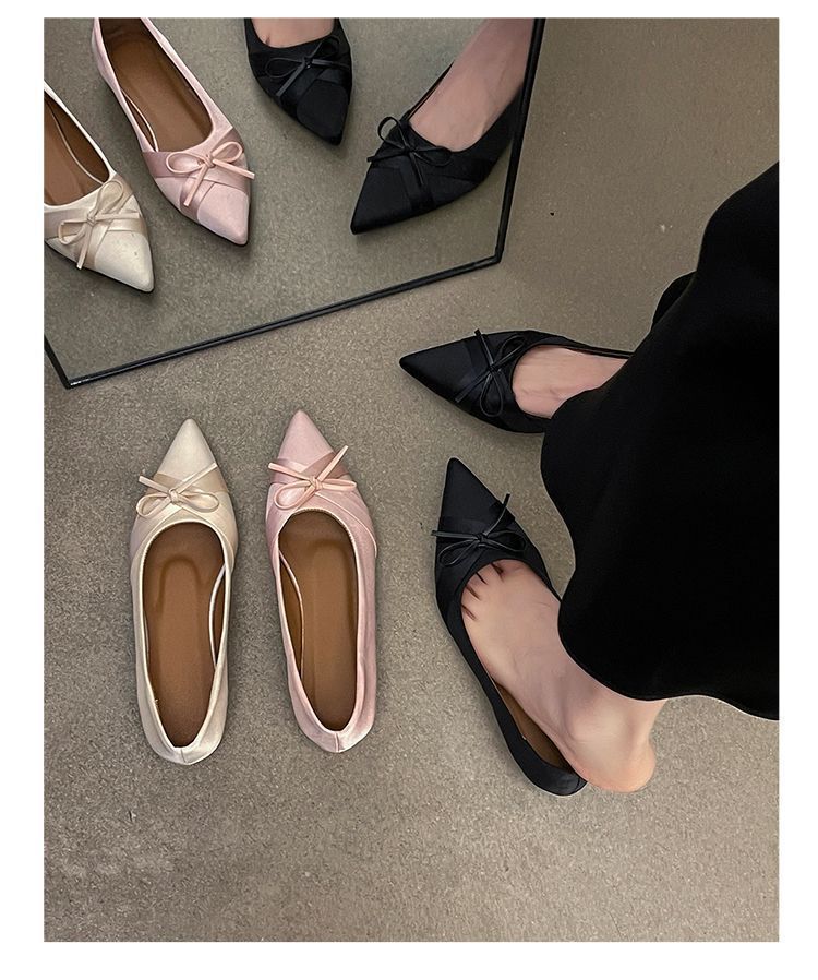 부드러운 싱글 레이어 신발 이브닝 슈즈 2024 가을 및 겨울 새로운 올 매치 패셔너블 내높이 올리기 뾰족한 새틴 원피스 여성용 신발스토어 가기