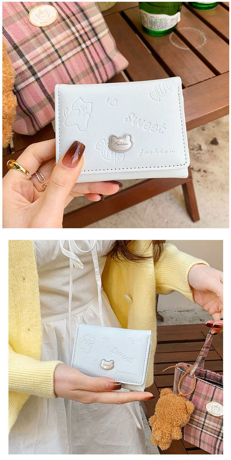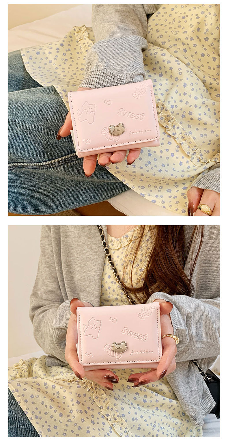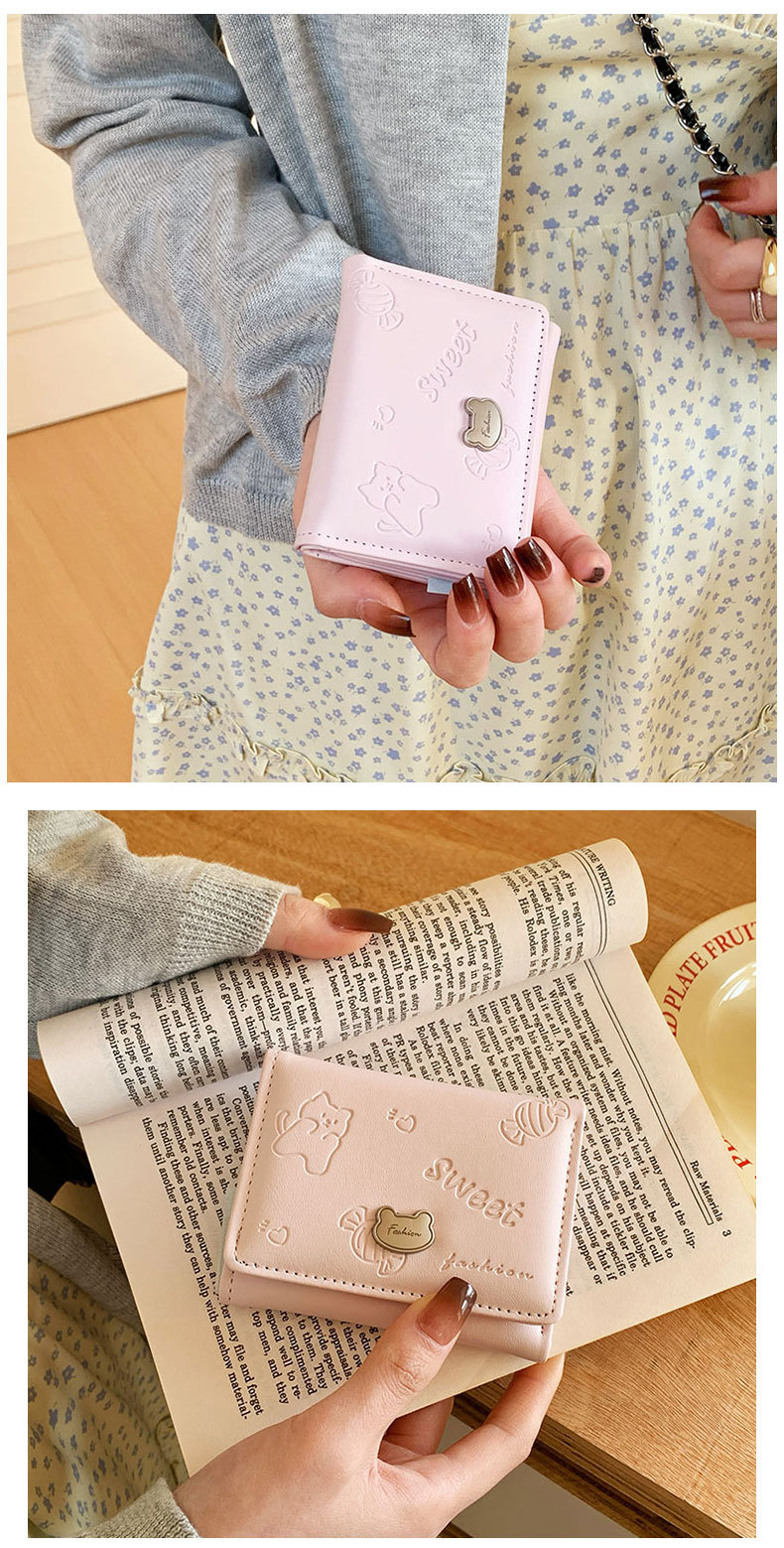 높은 가치 만화 짧은 지갑 여성 지갑 한국 곰 미니 PU 작은 신선한 귀여운 30% 할인 지갑스토어 가기